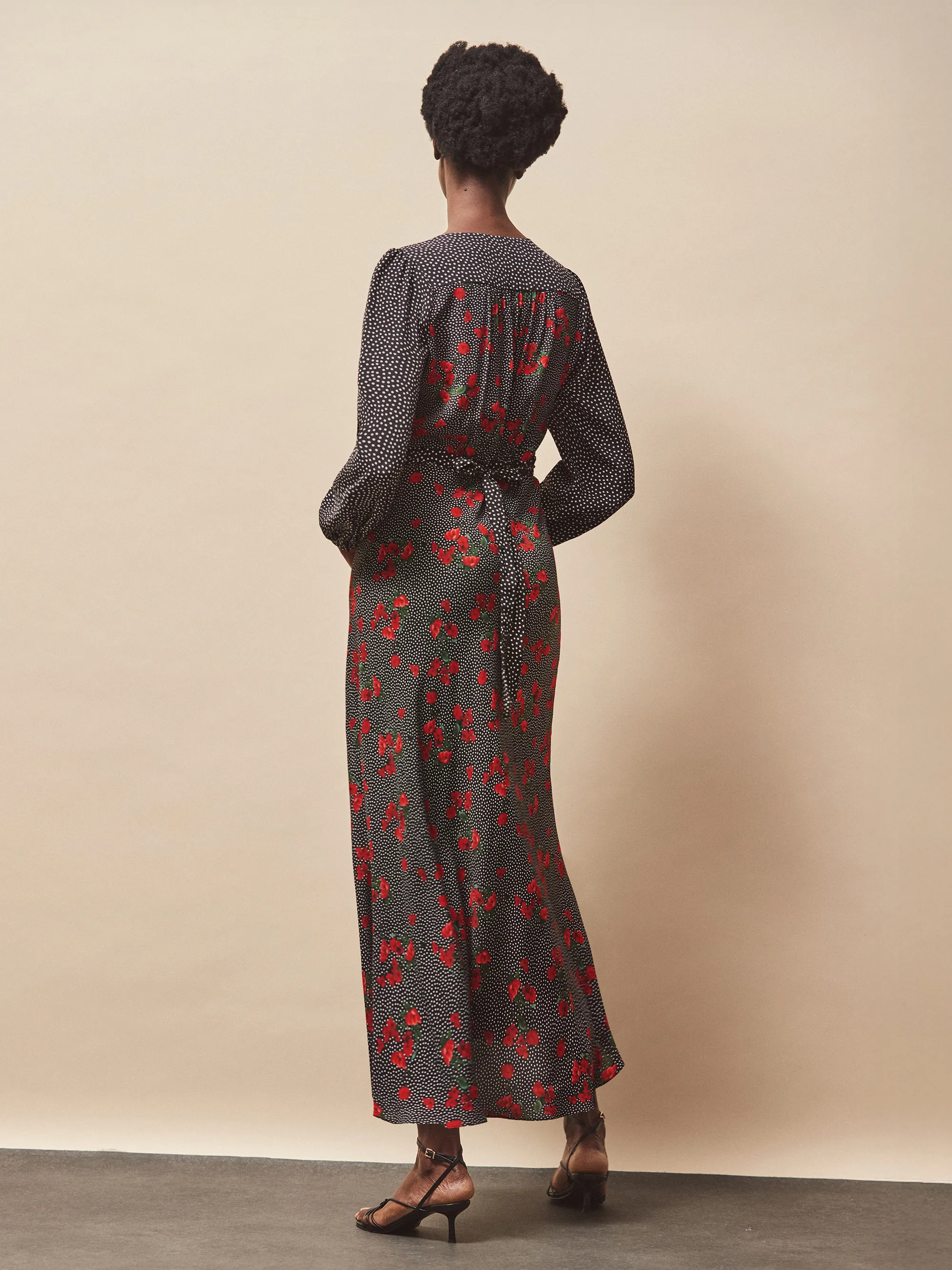 Petite Red Blurred Floral Print Bias Cut Maxi Skirt