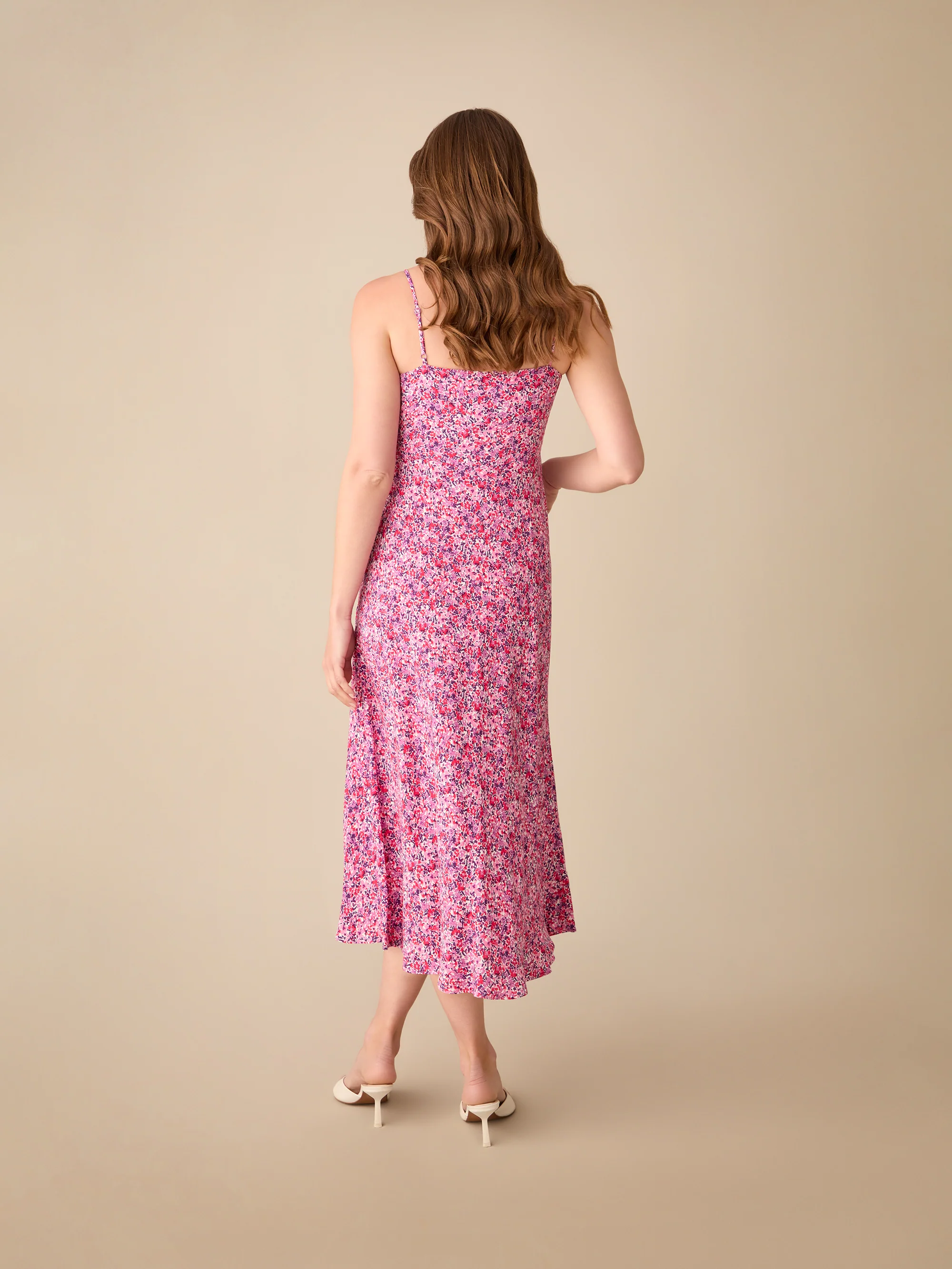 Petite Pink Ditsy Print Keyhole Front Midi Dress