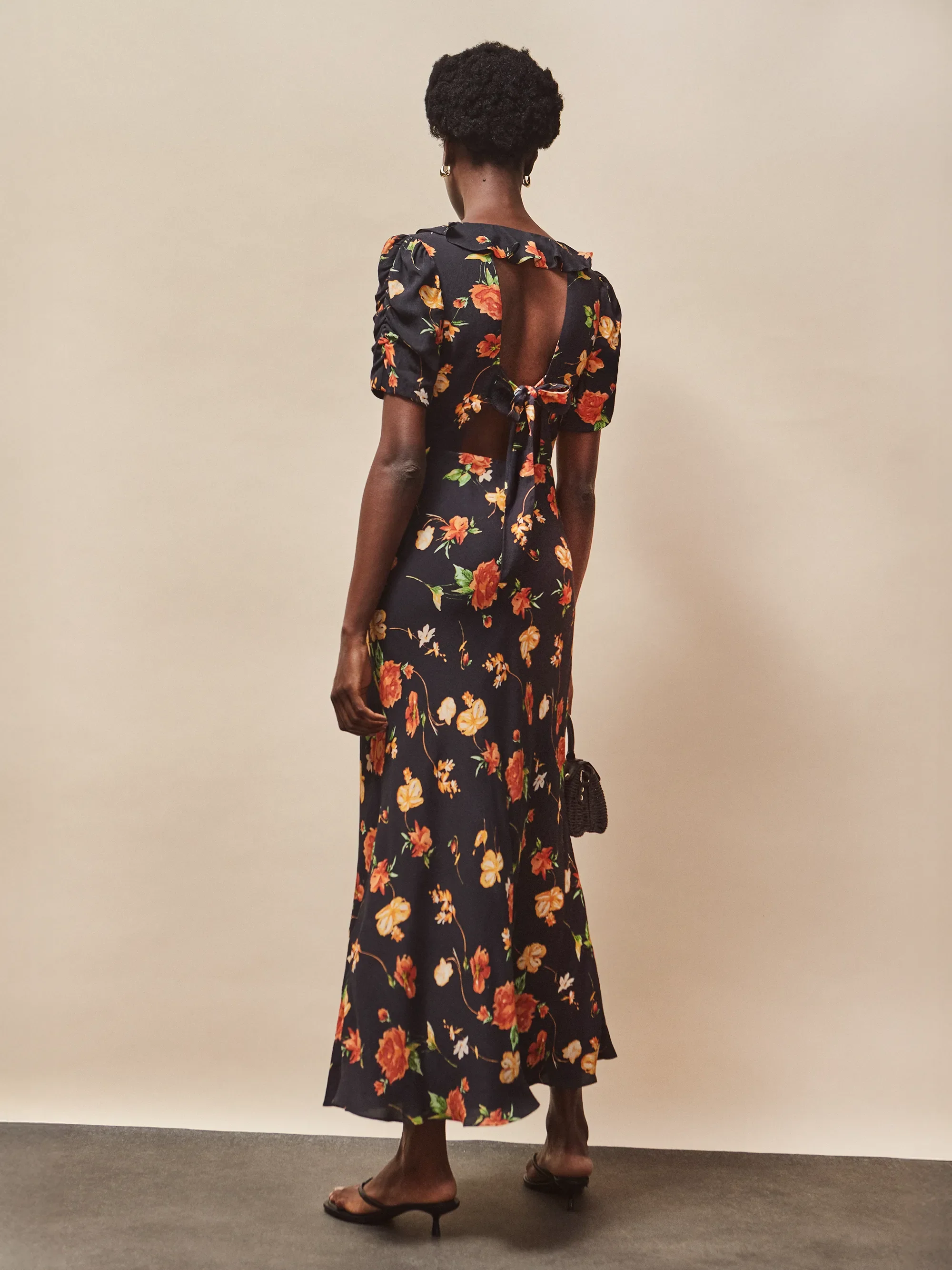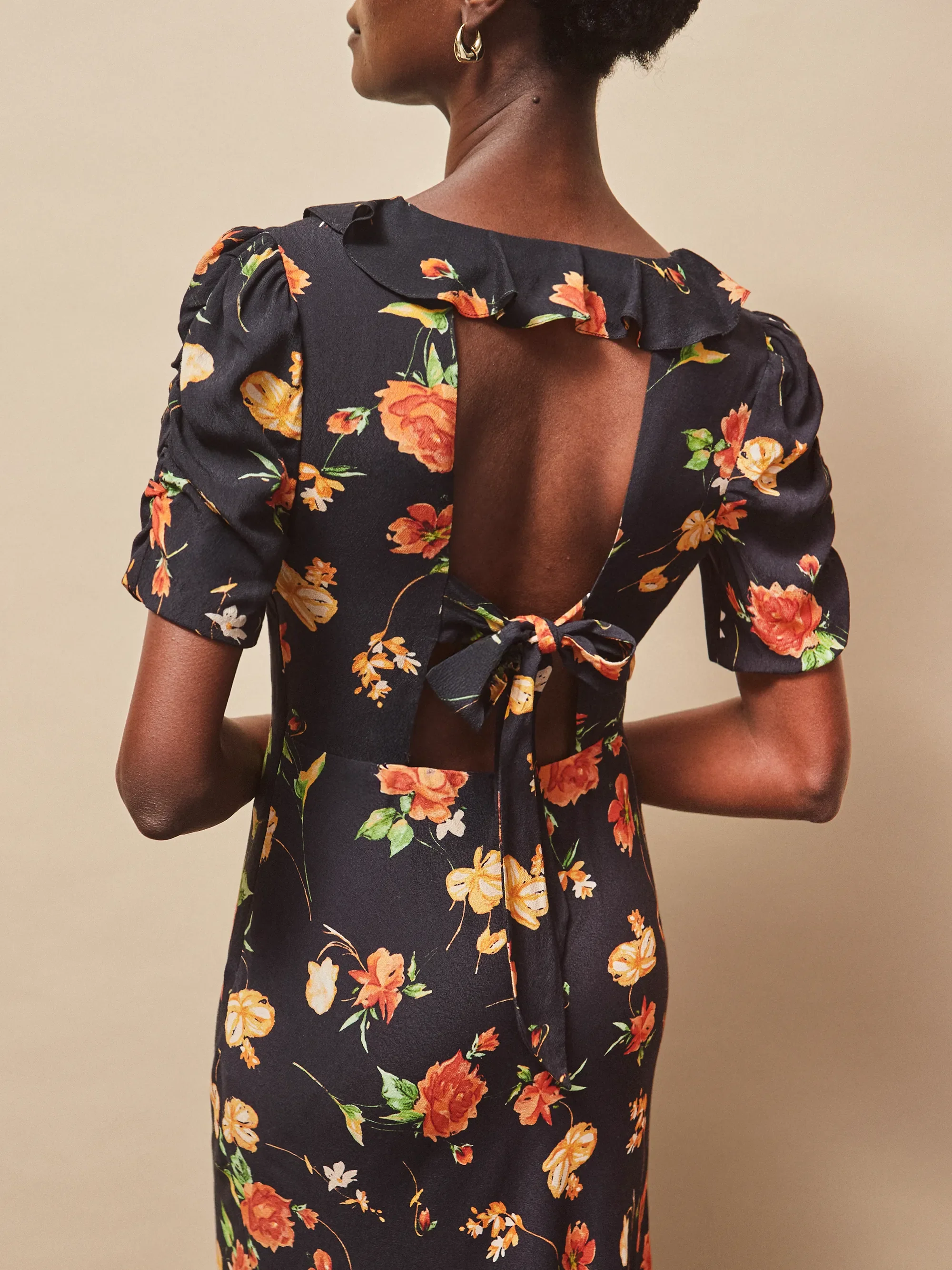 Petite Raya Red Floral-Print Square-Neck Cotton Dress
