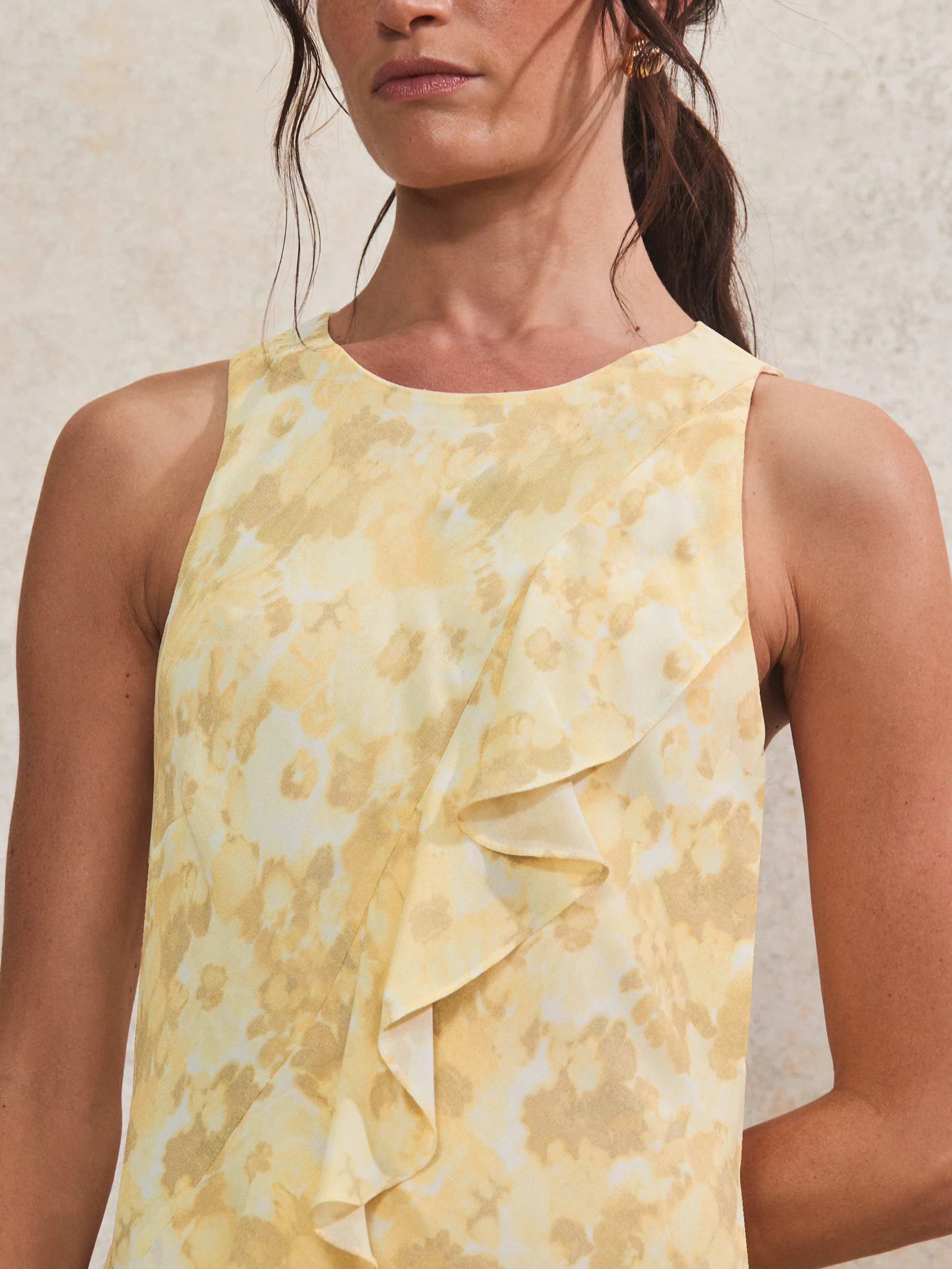 Petite Aurora Yellow Floral Scarf Detail Bandeau Dress