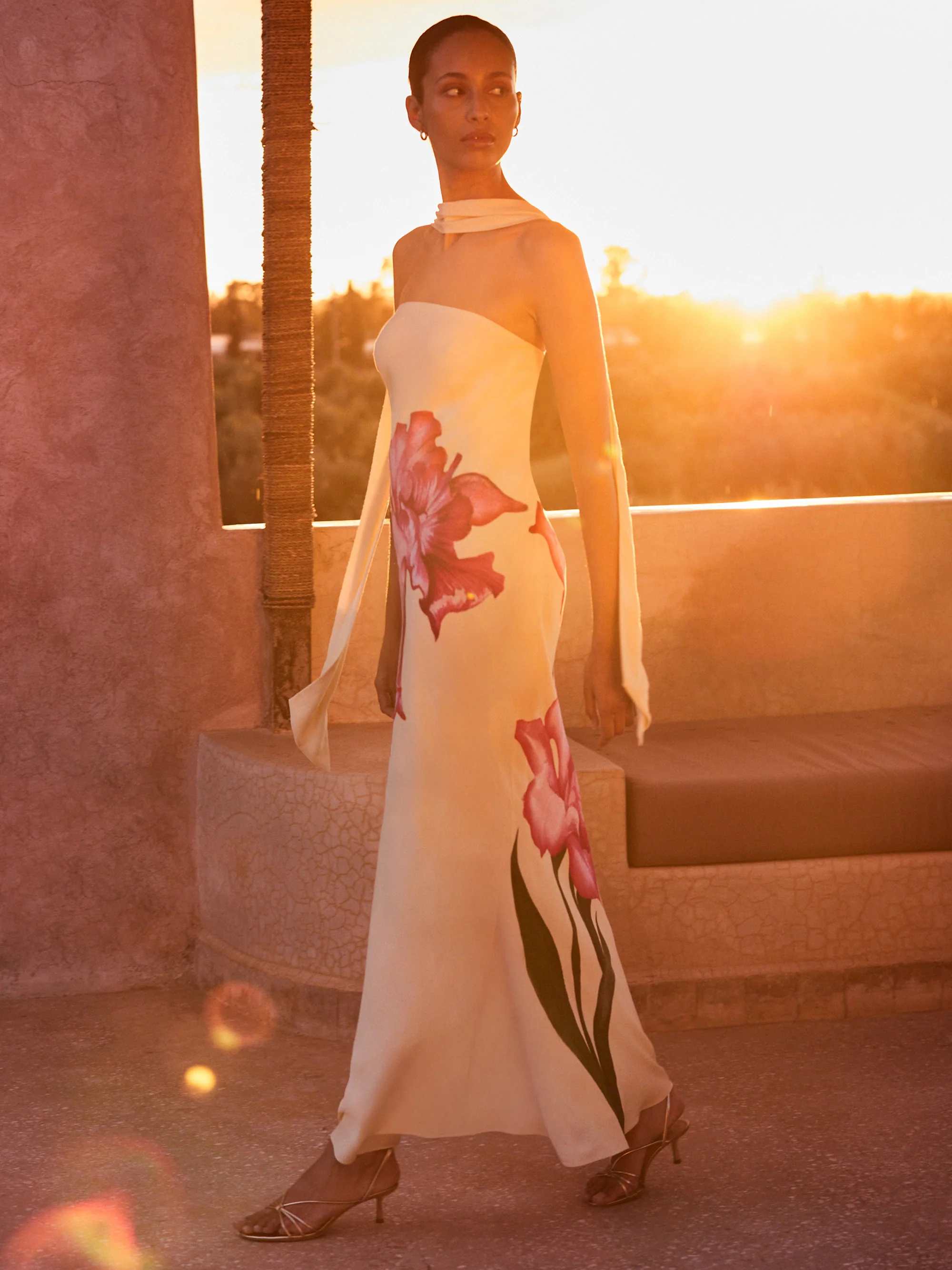 Aurora Yellow Floral Scarf Detail Bandeau Dress