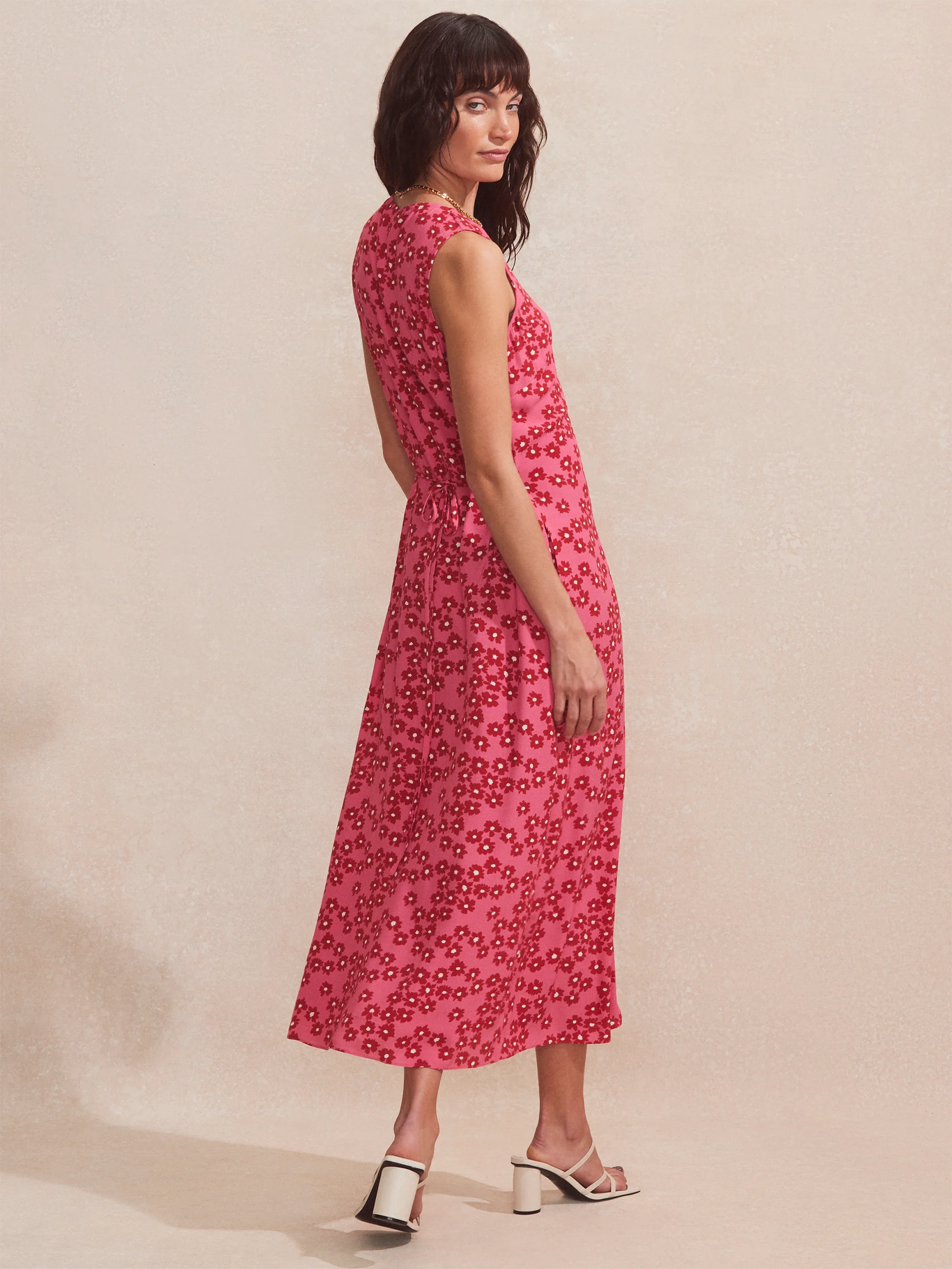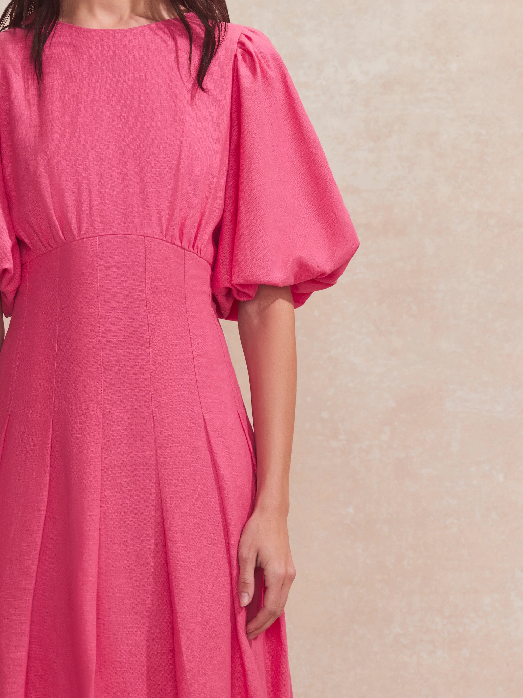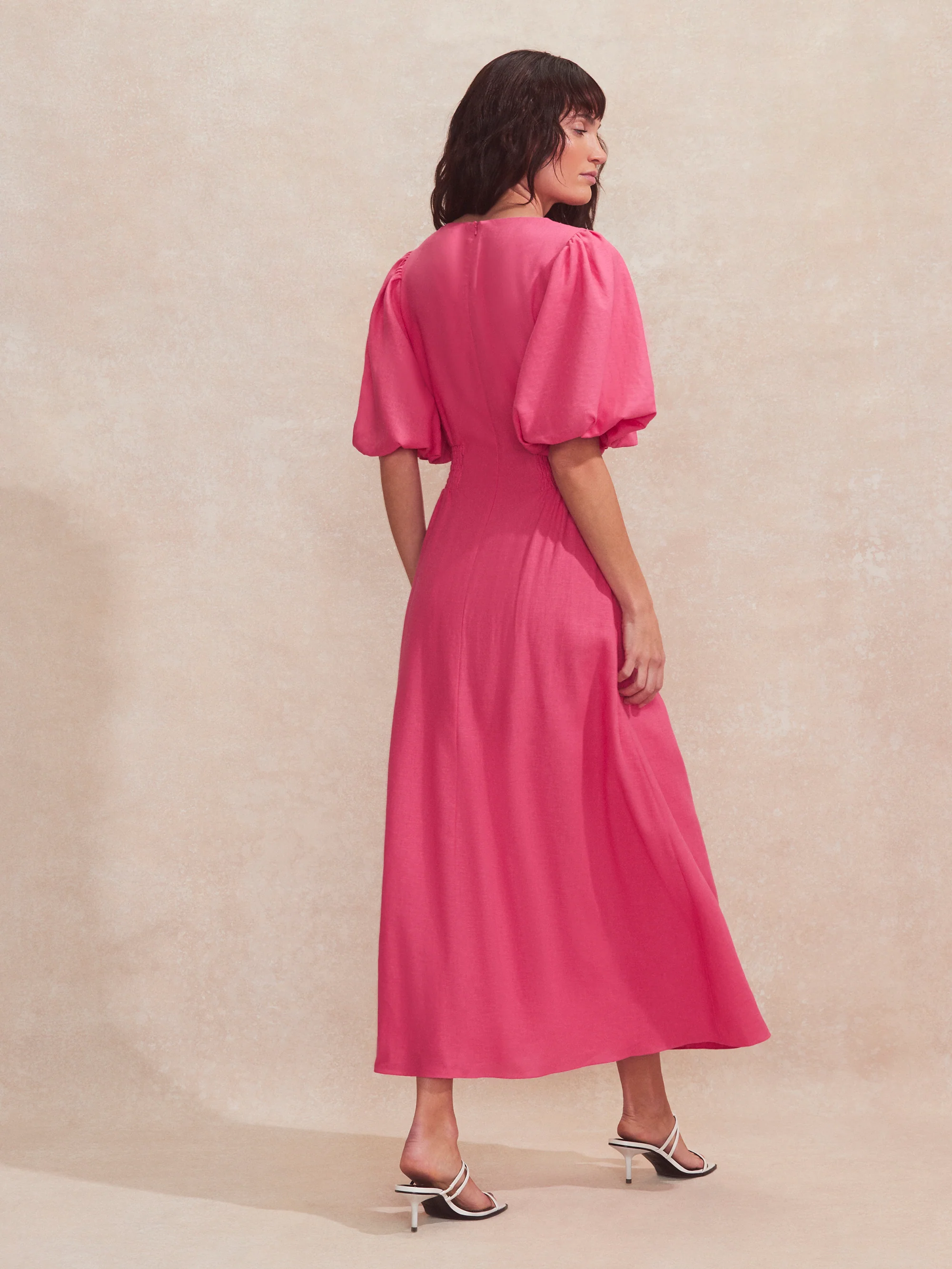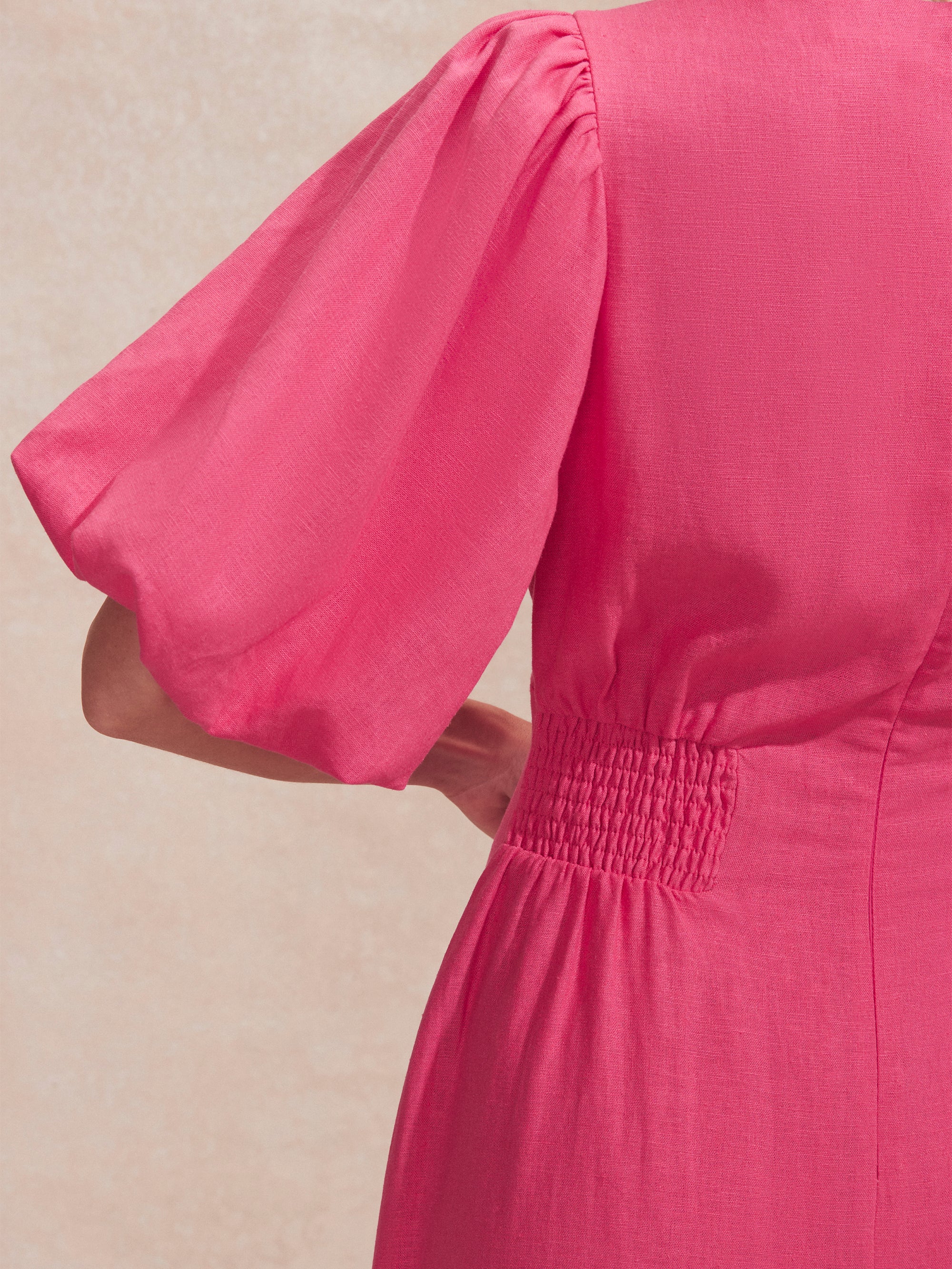 Petite Pink Spot Print Puff Sleeve Midi Dress