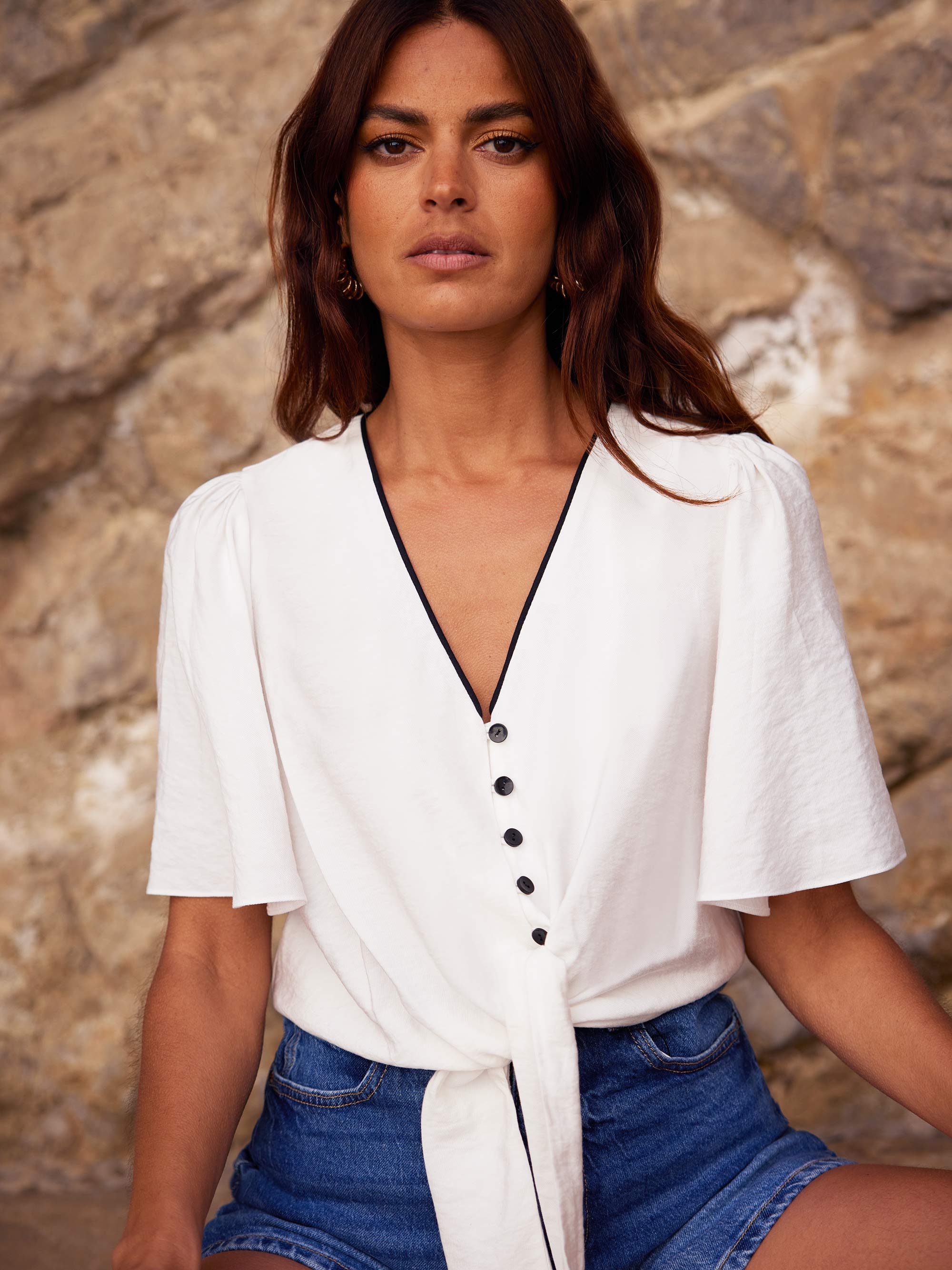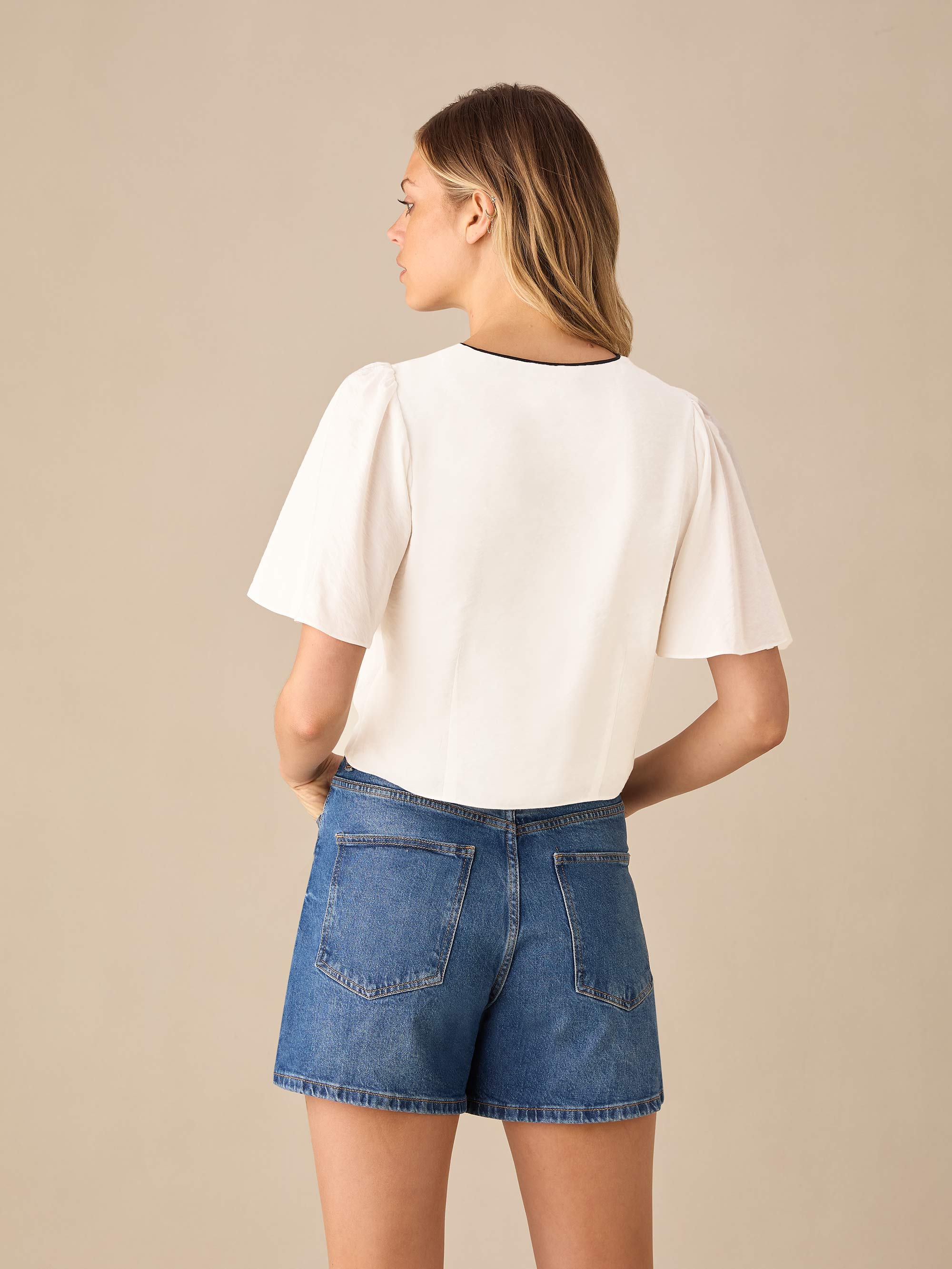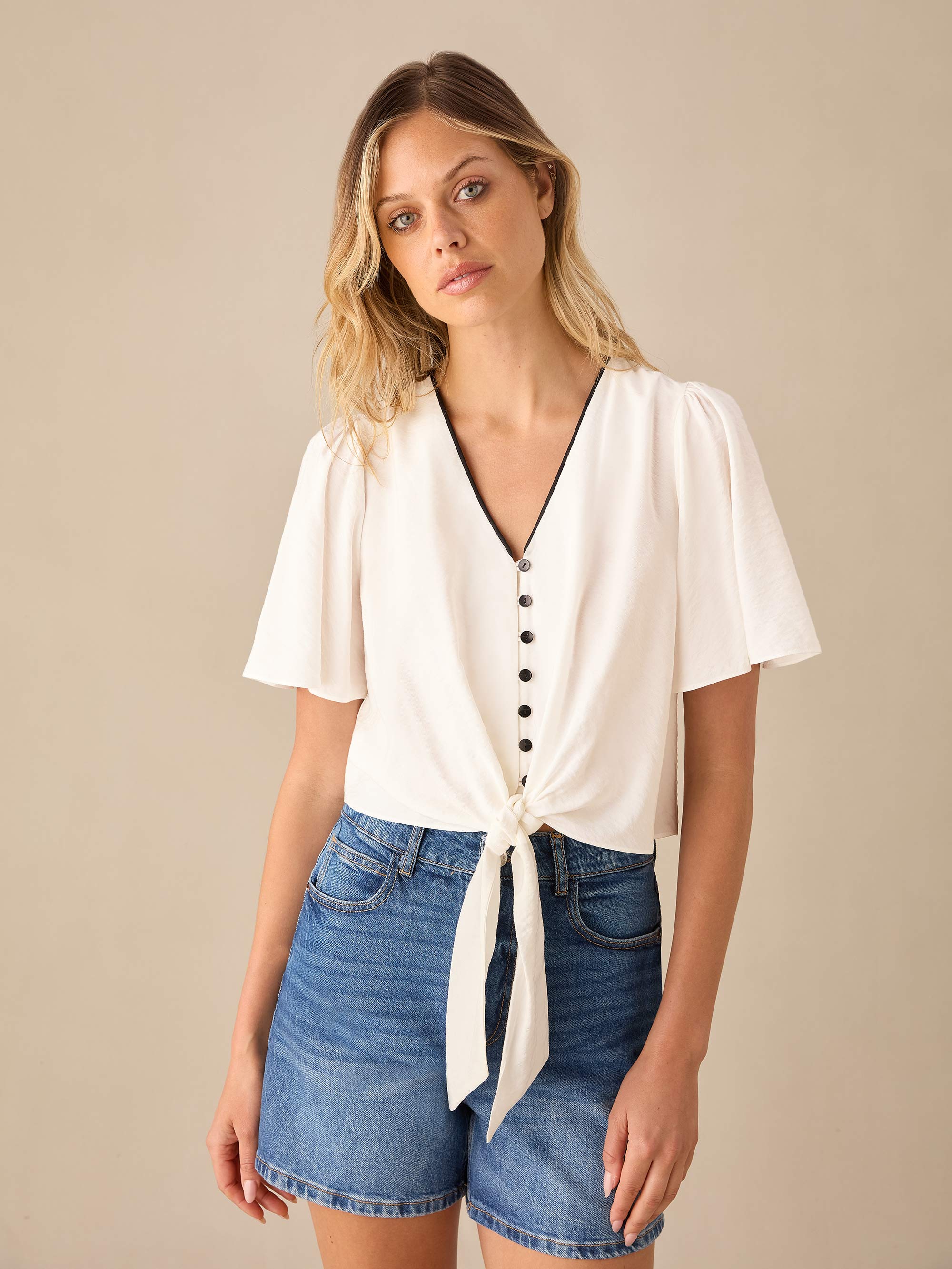 Ivory Flutter Sleeve Tie Front Top