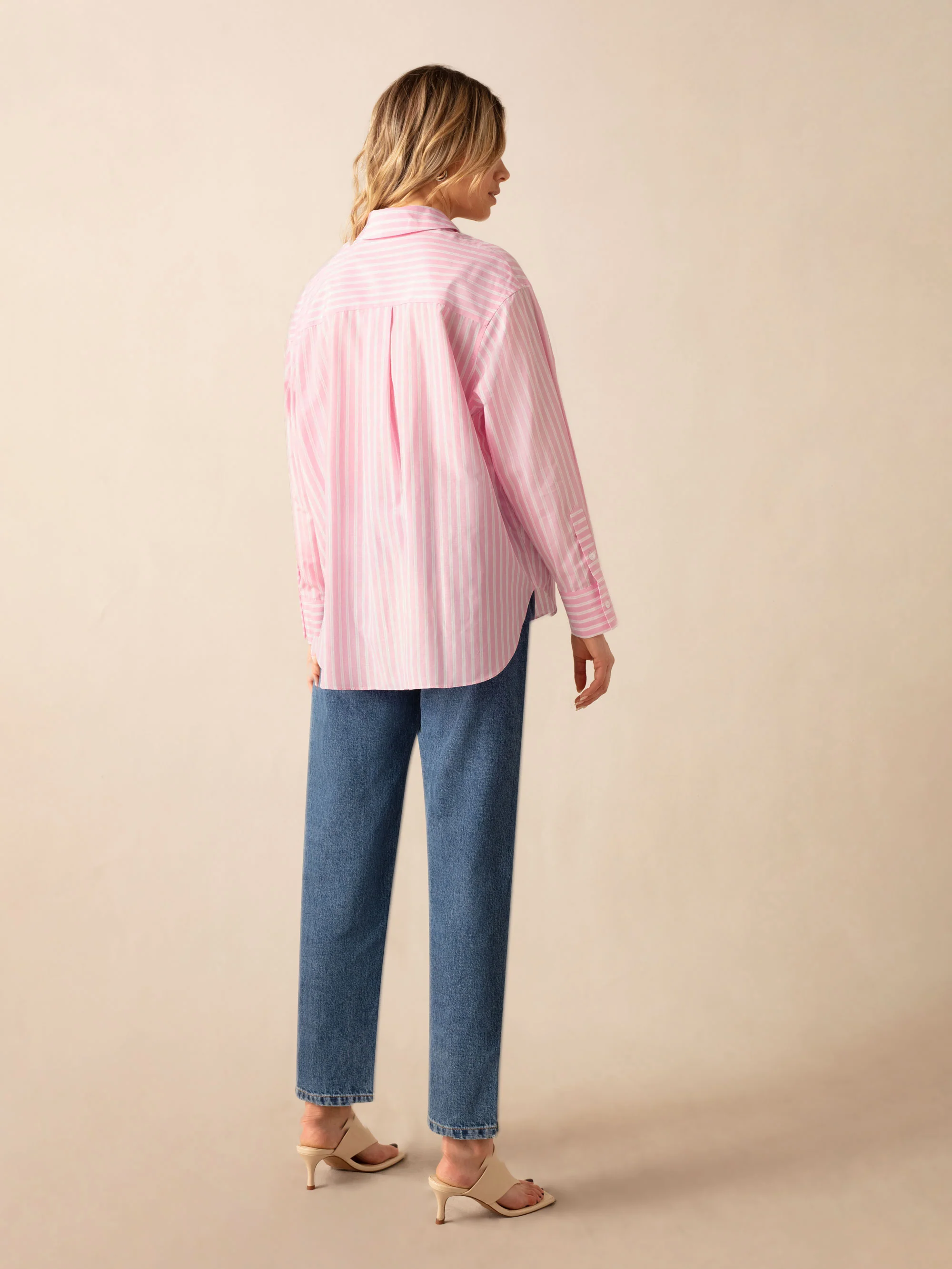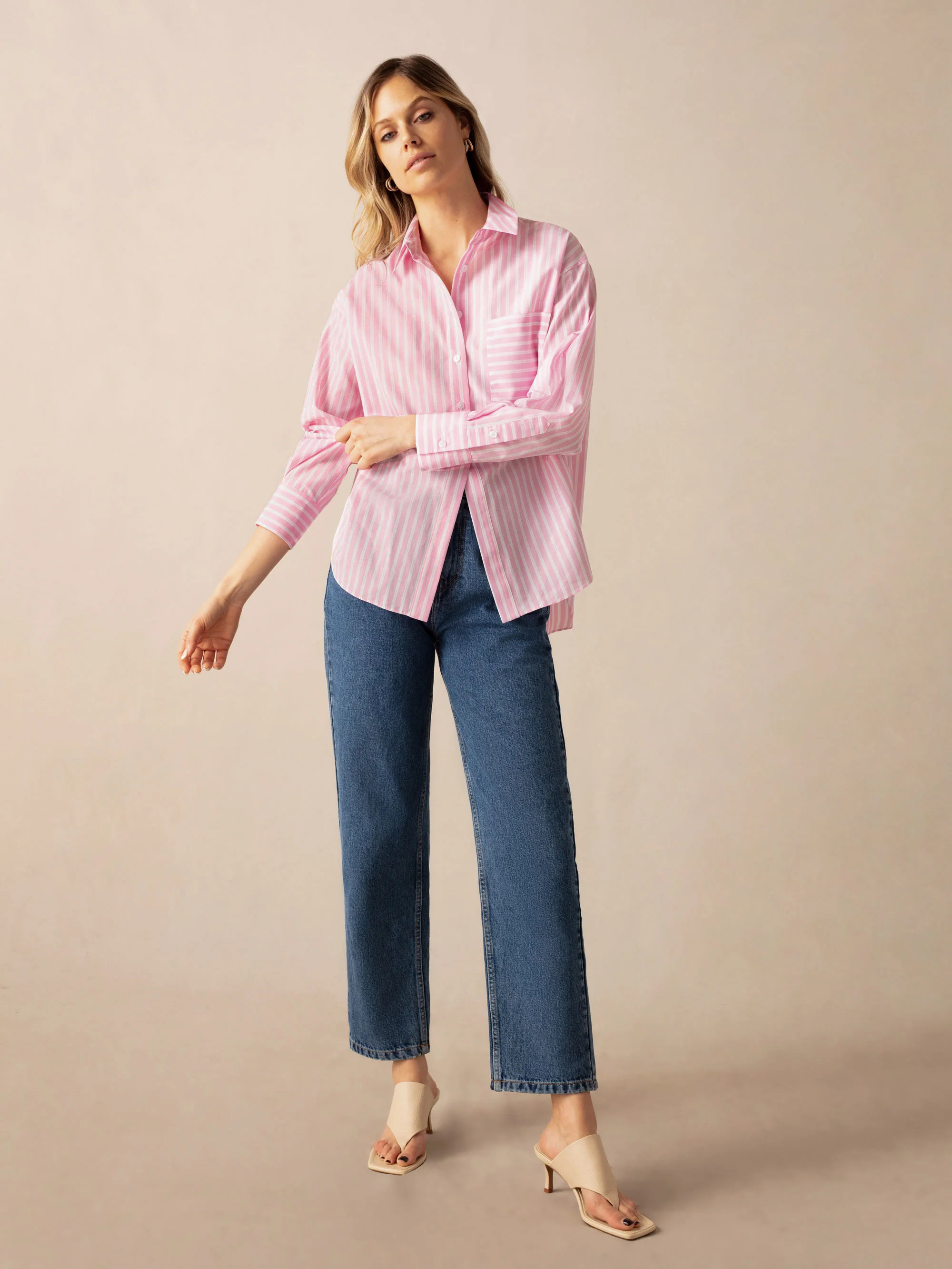 Pink Stripe Cotton Split Front Shirt