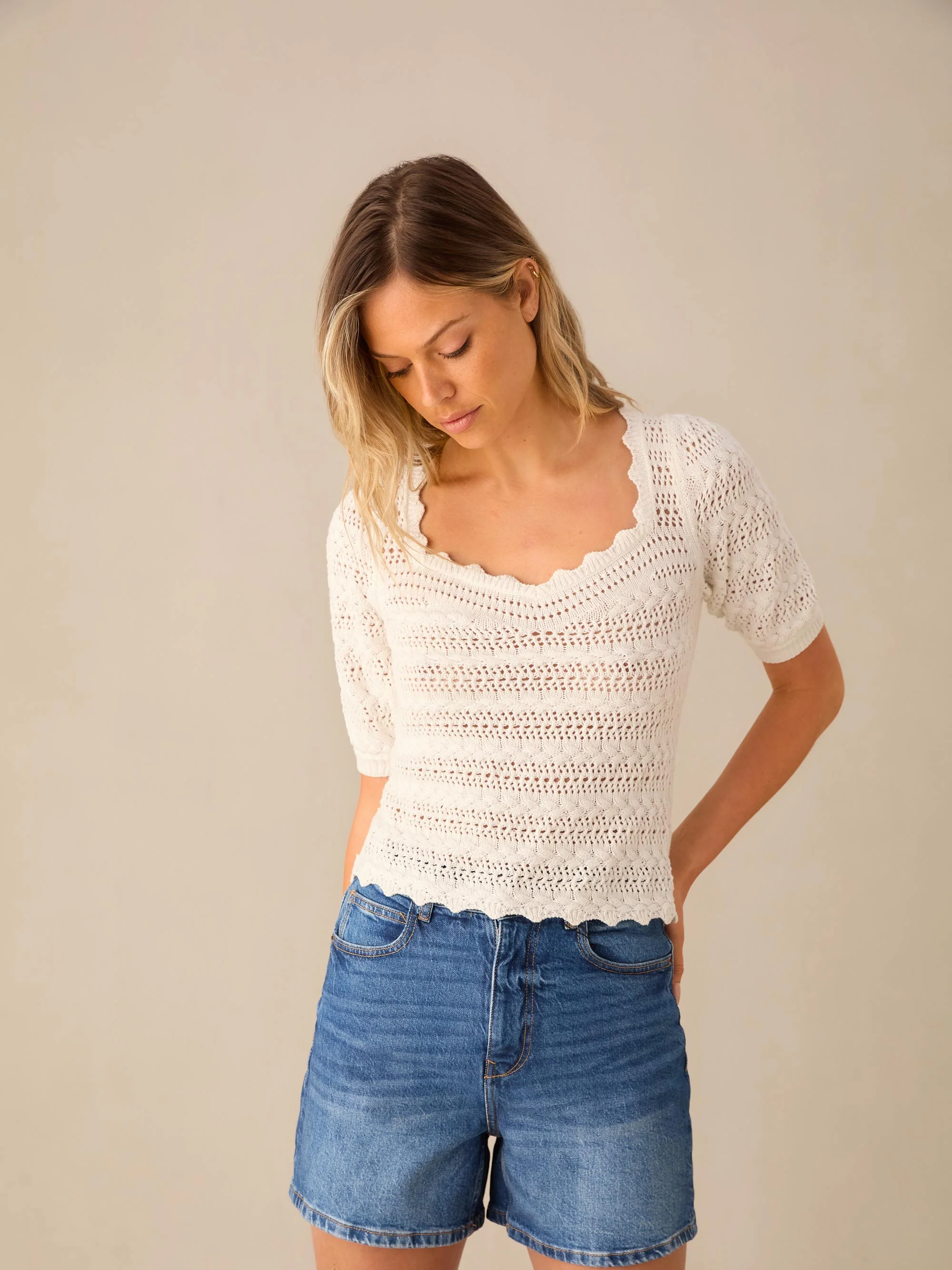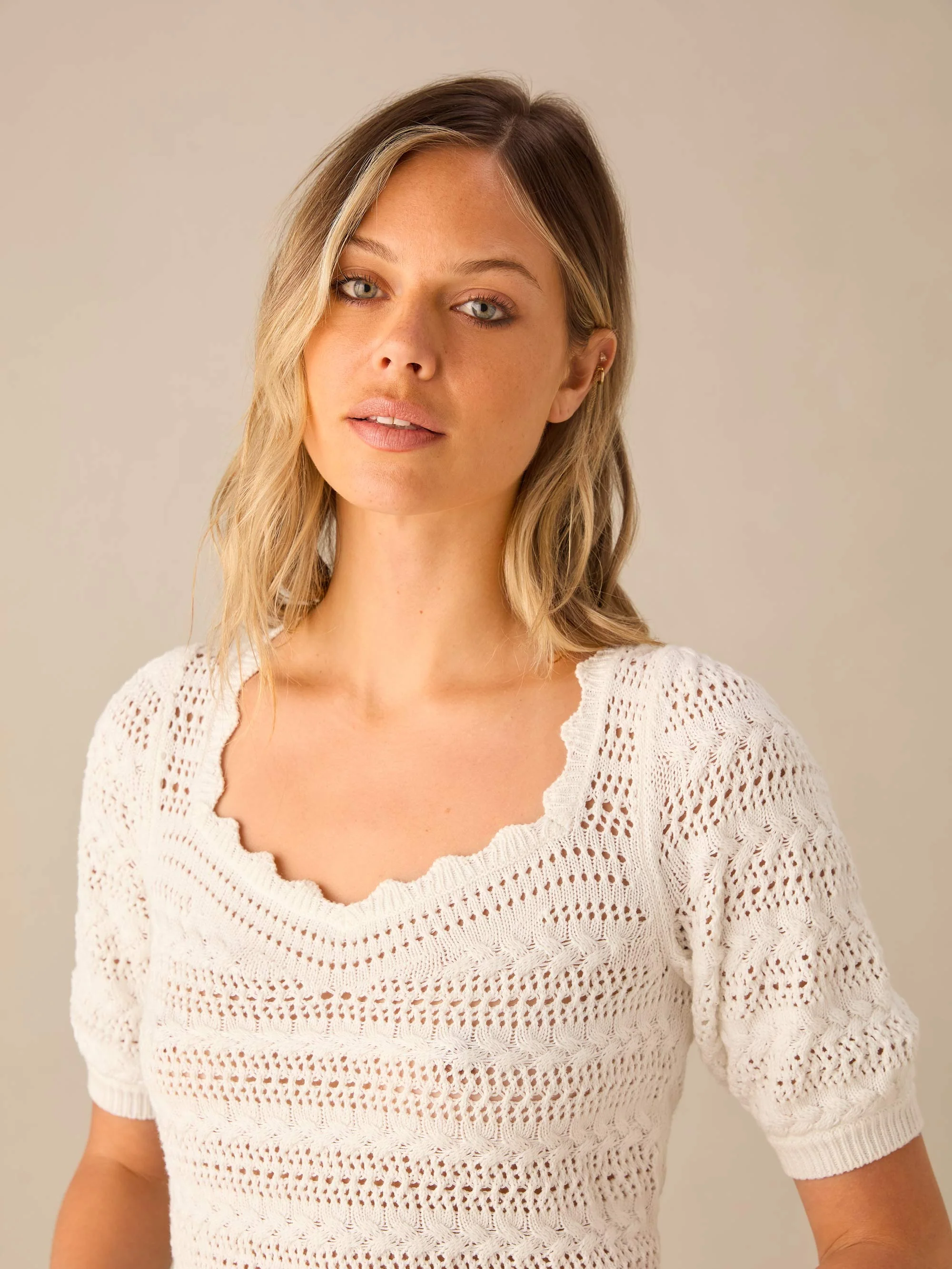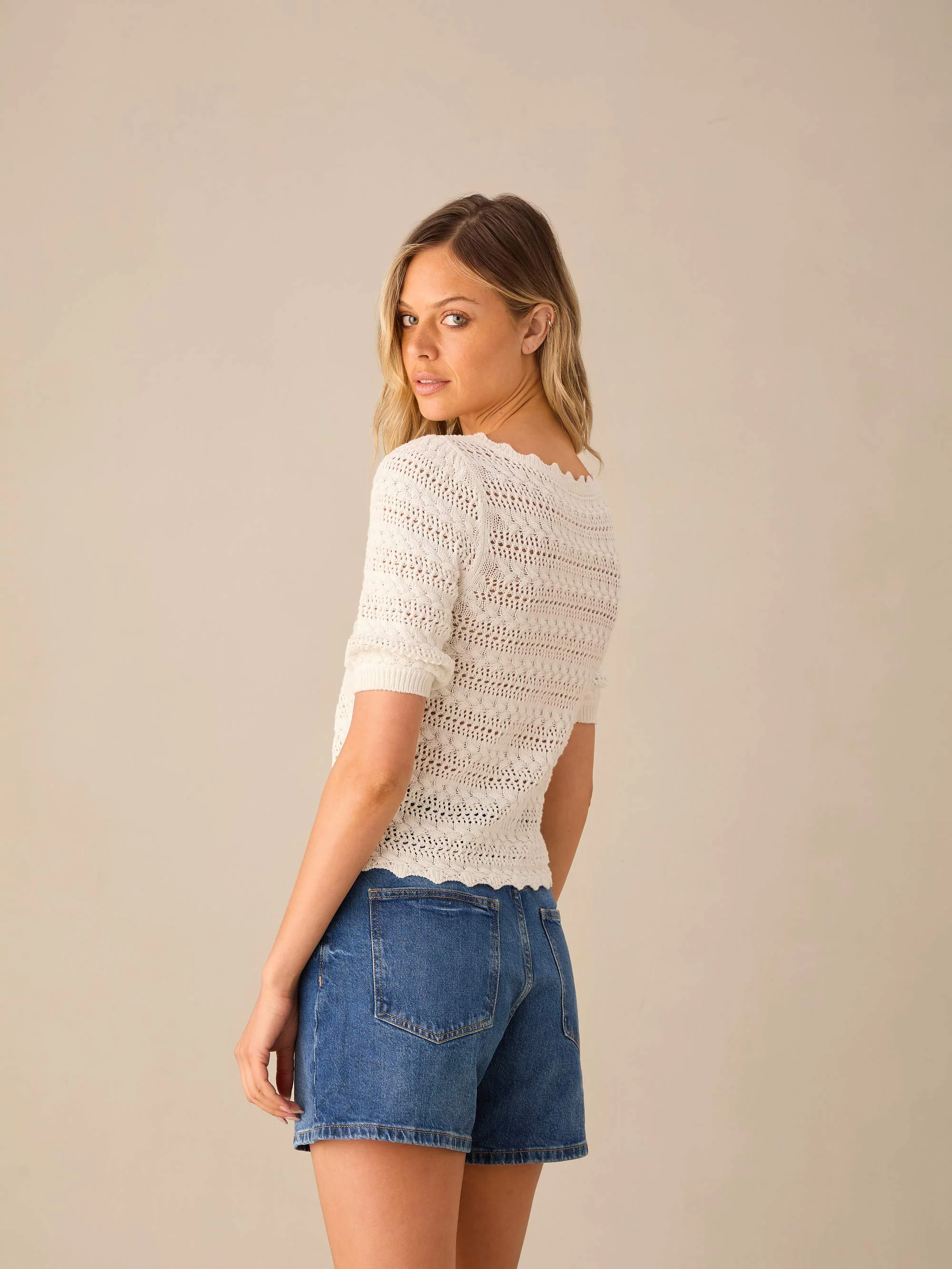 White Open-Knit Top