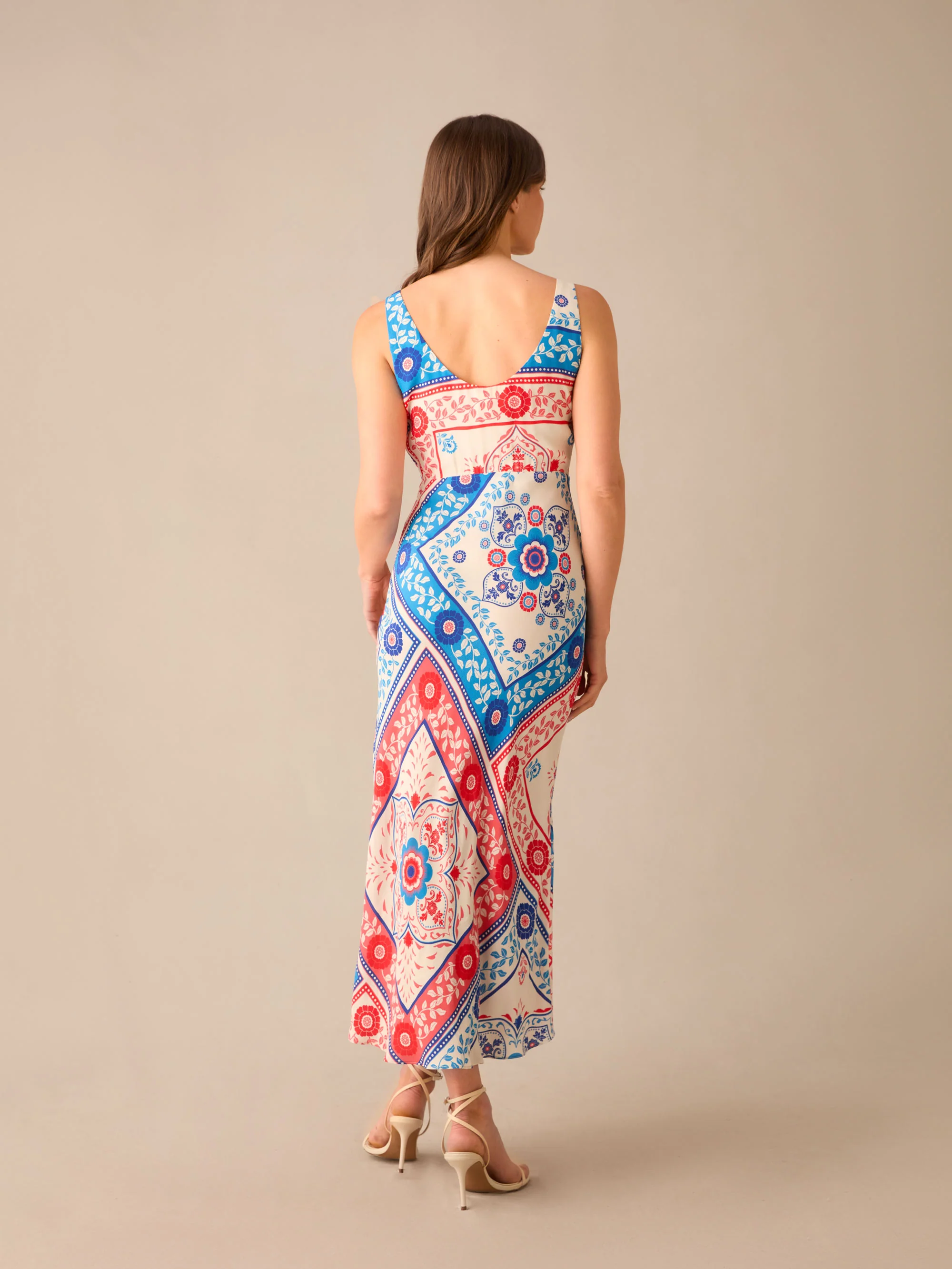 Petite Multi Tile Scoop Neck Cami Midi Dress