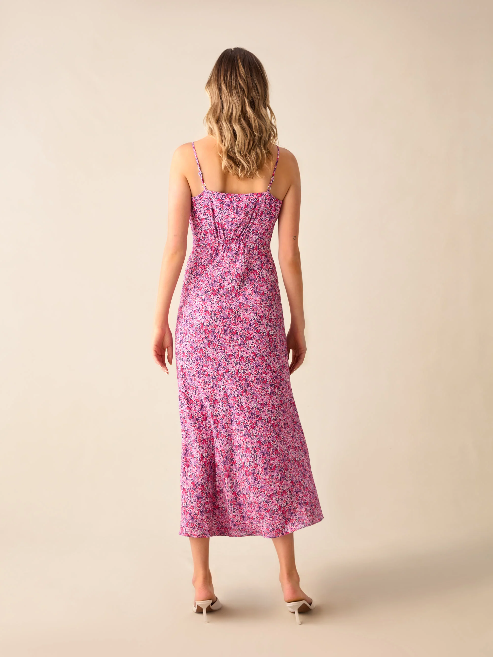 Pink Ditsy Print Keyhole Front Midi Dress