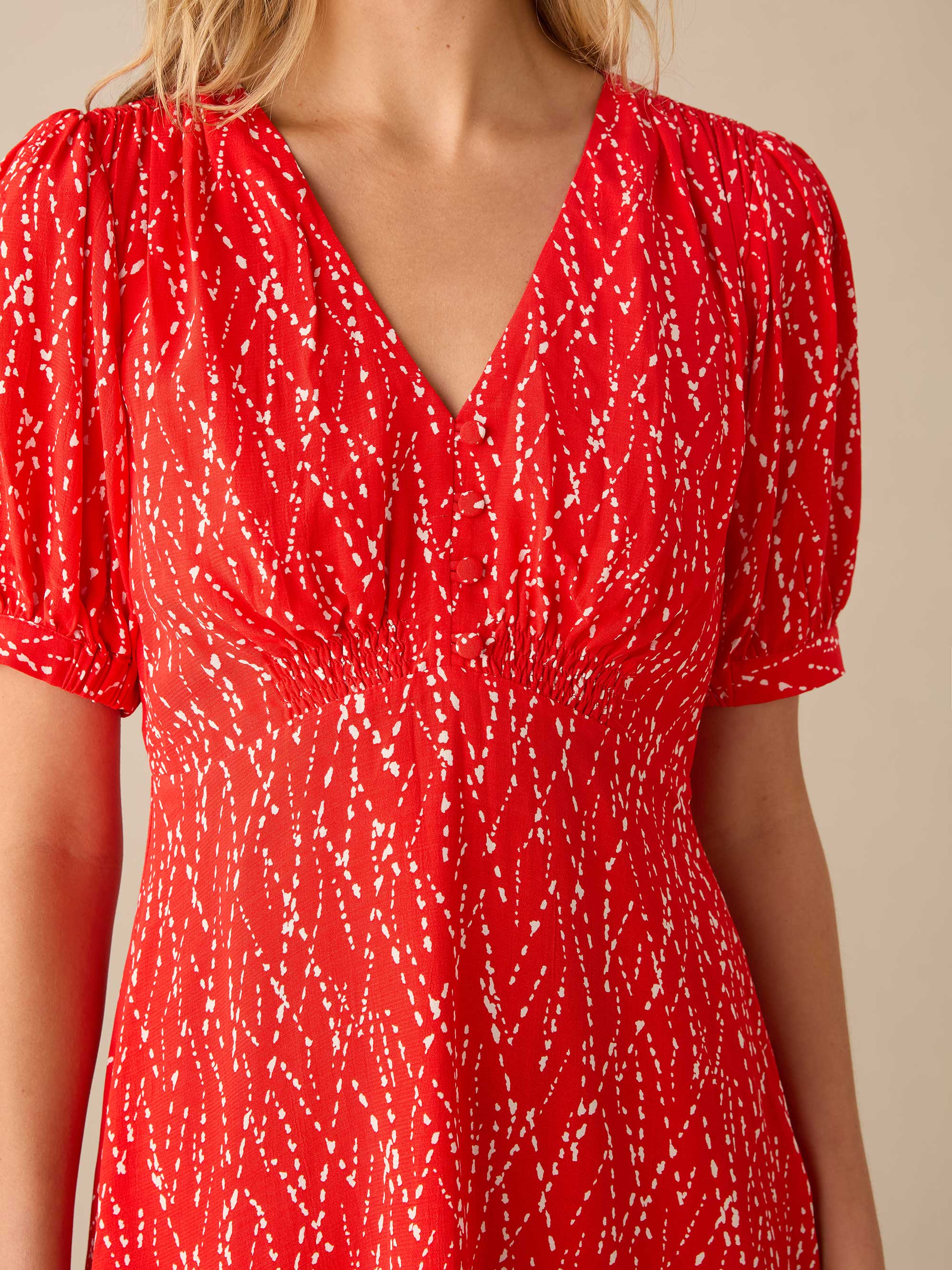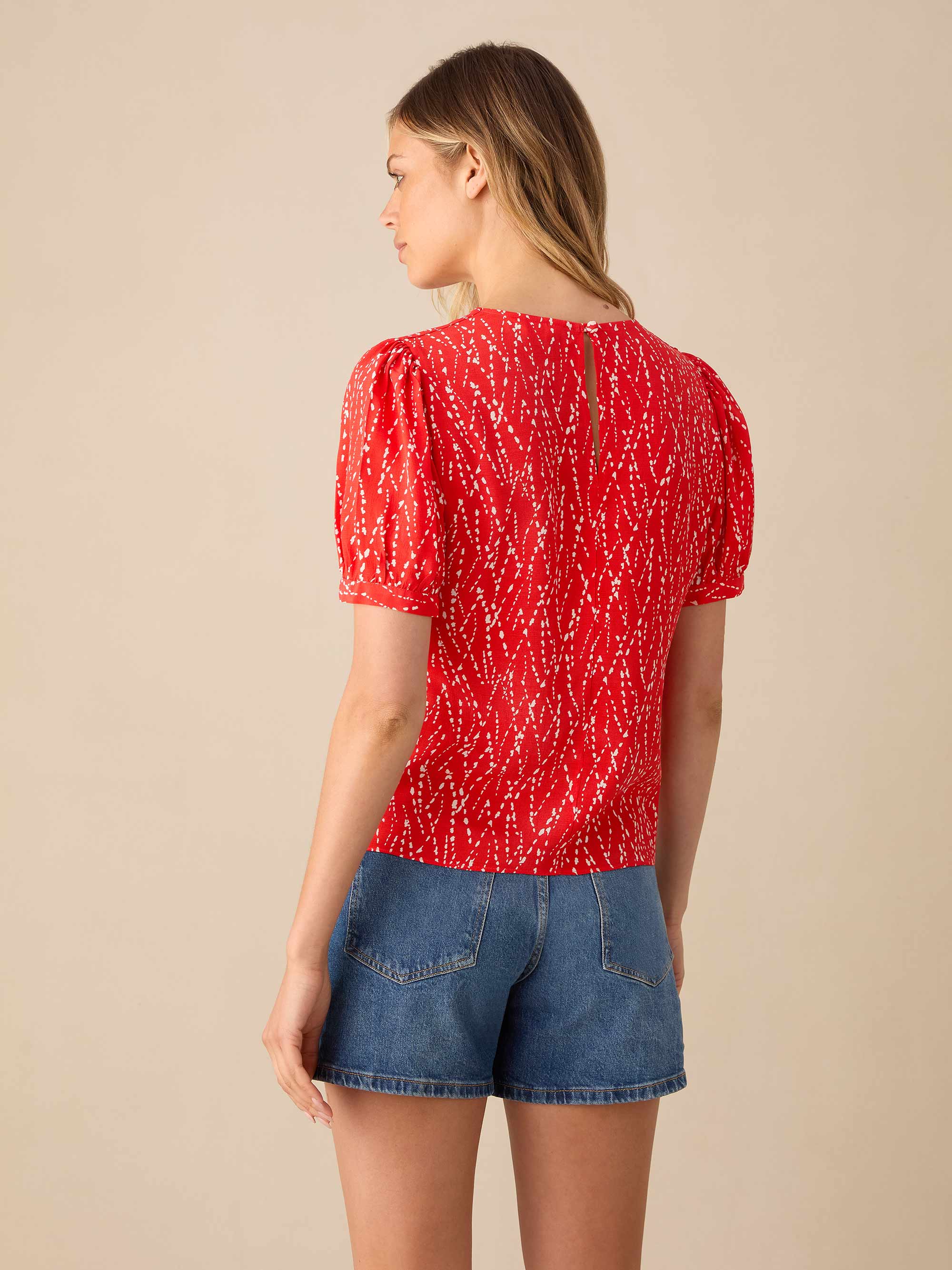 Red Dash Print Ruched Front Top