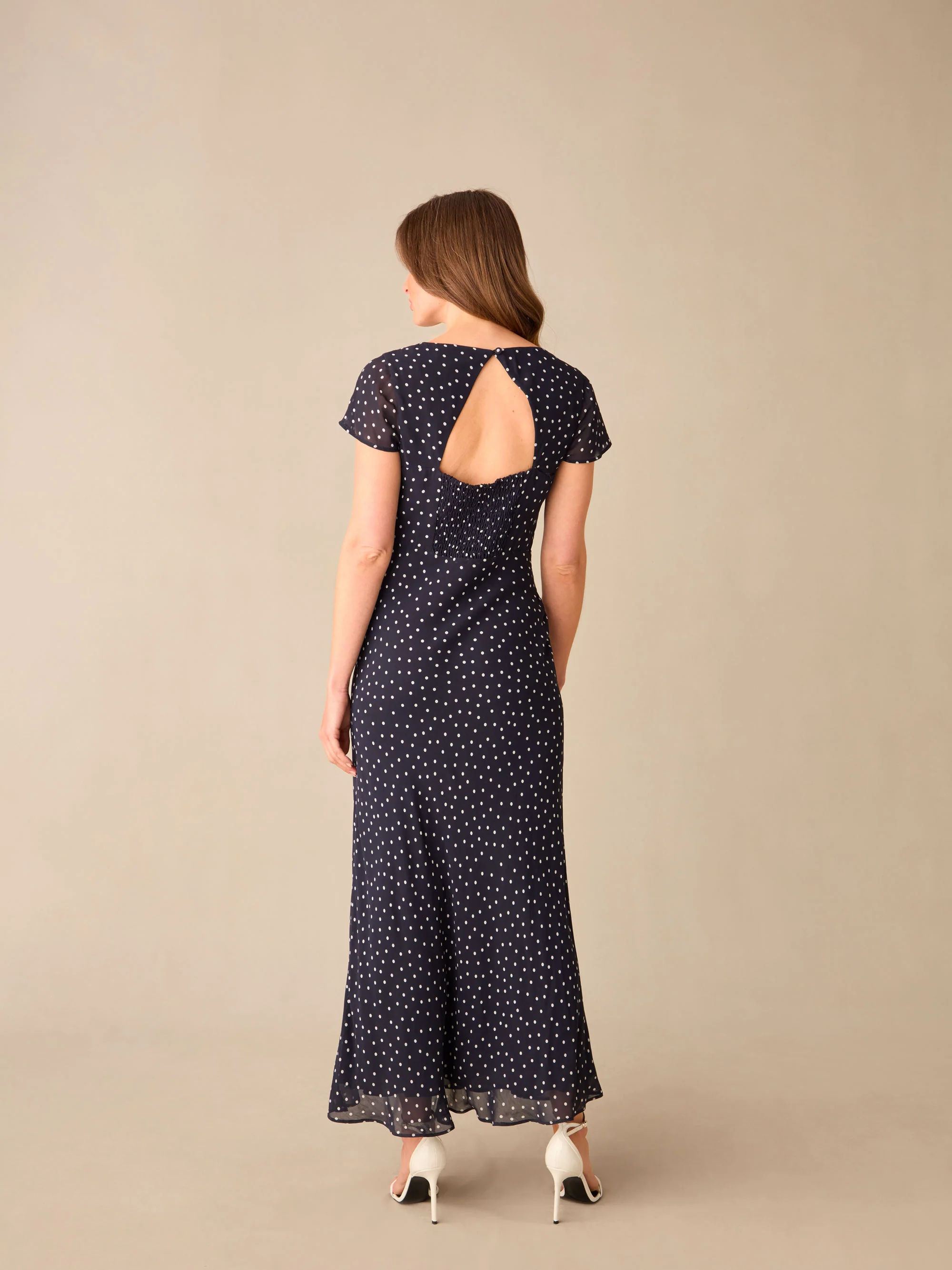 Petite Navy Spot Print Sweetheart Neckline Midi Dress