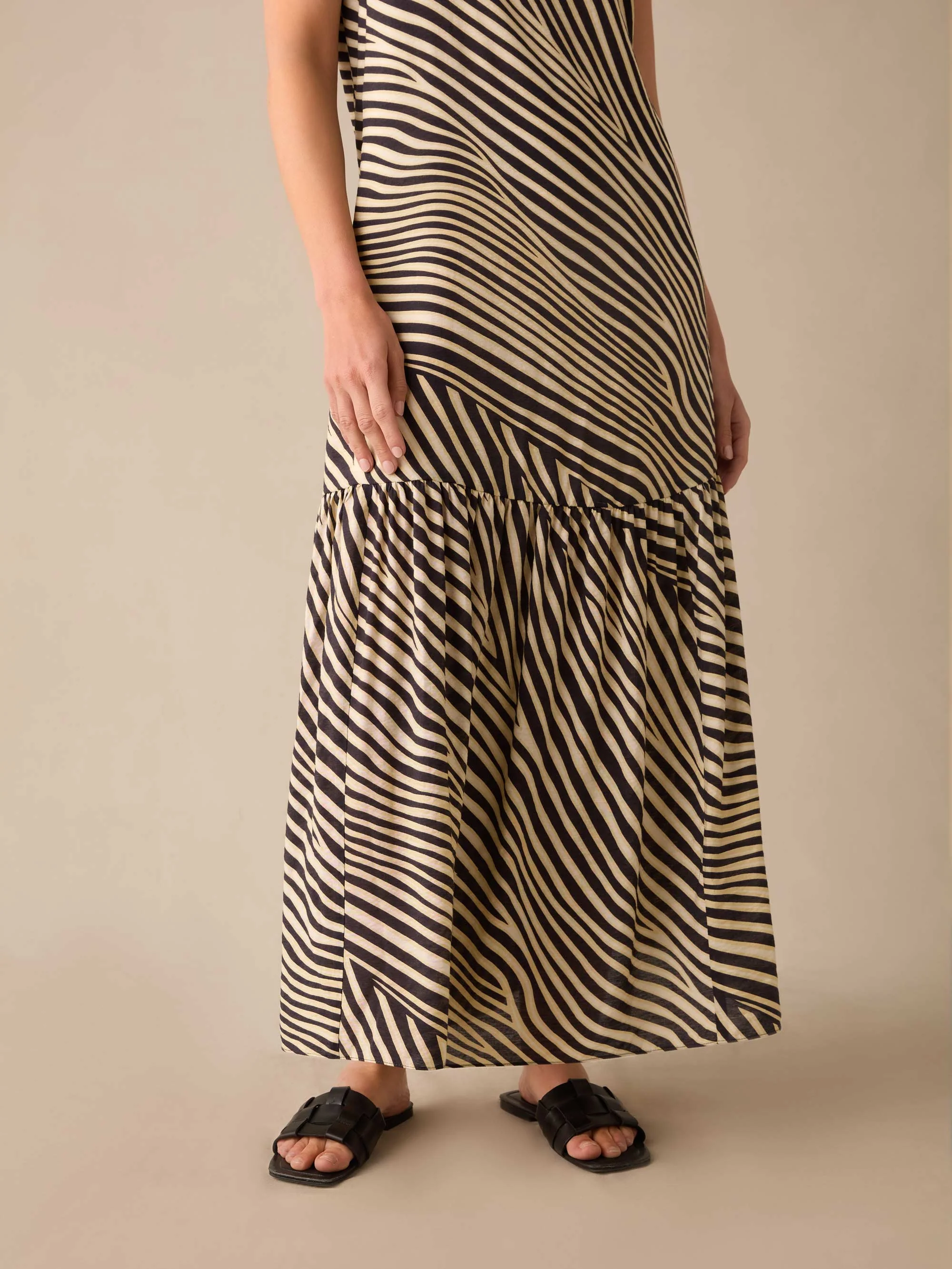 Petite Neutral Animal Print Tiered Maxi Dress