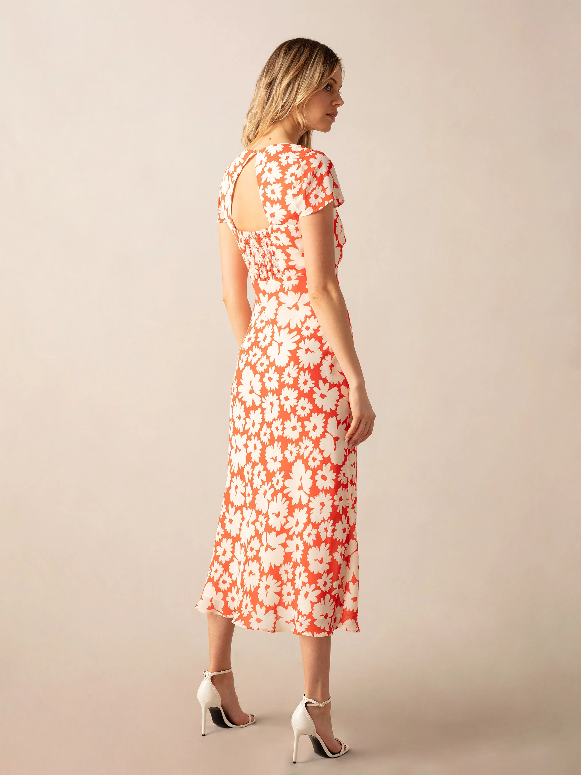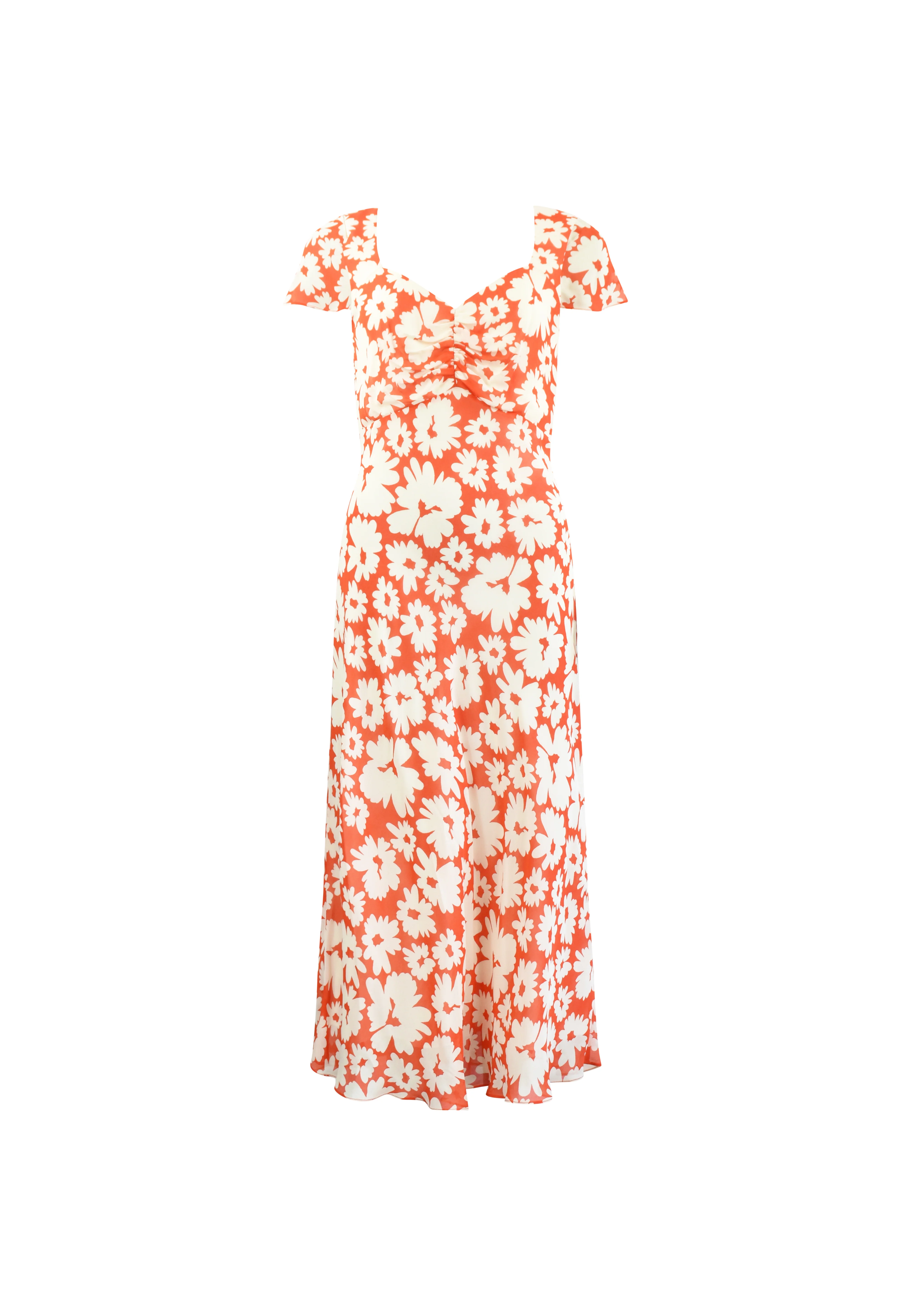 Red Daisy Print Sweetheart Neckline Midi Dress