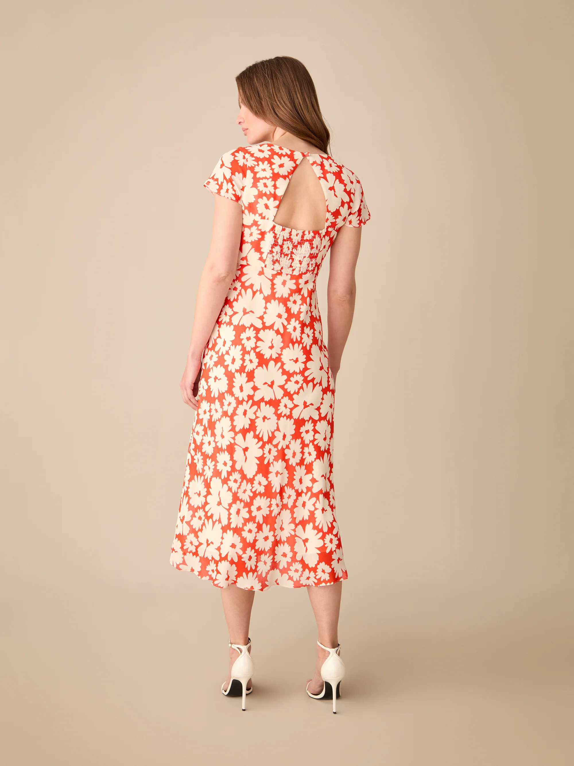 Petite Red Daisy Print Sweetheart Neckline Midi Dress