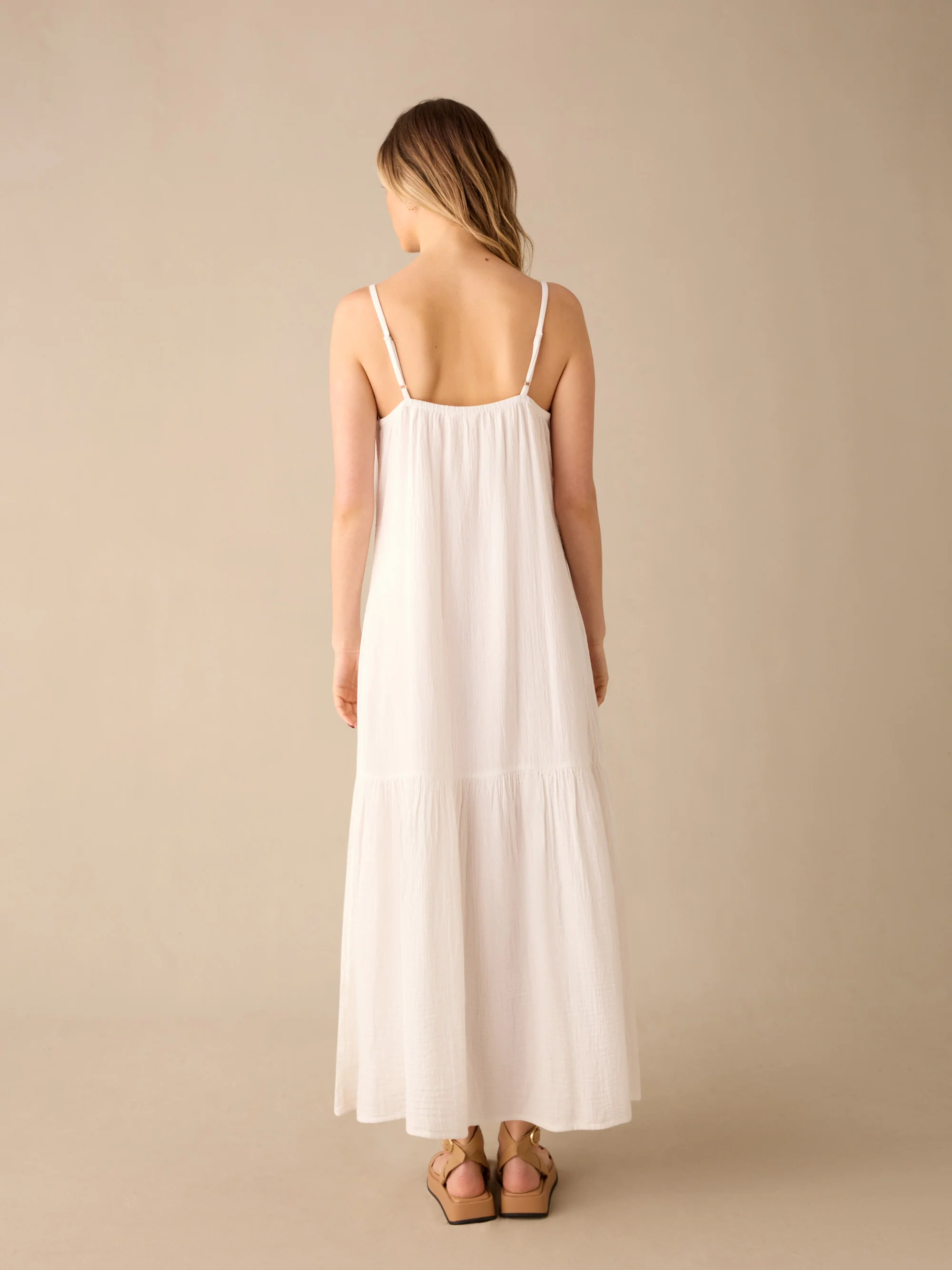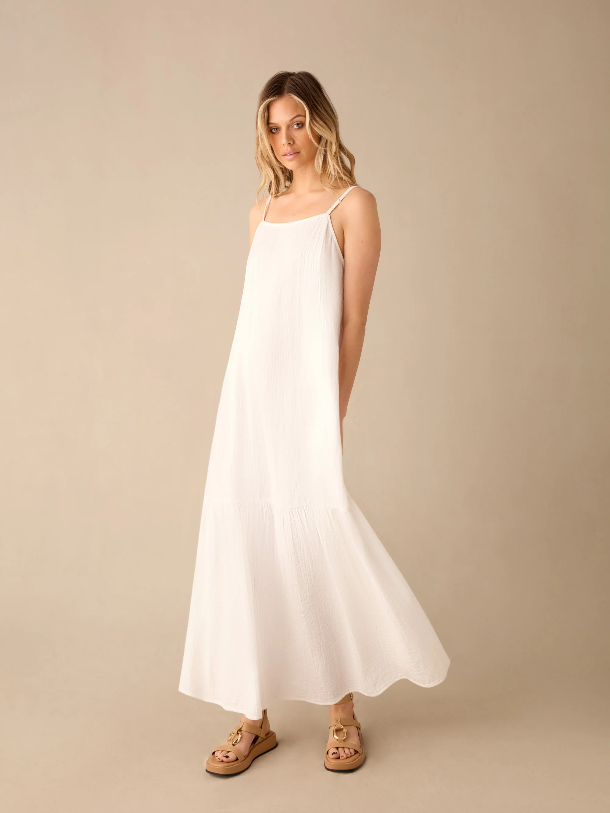 White Tiered Hem Strappy Cheesecloth Dress