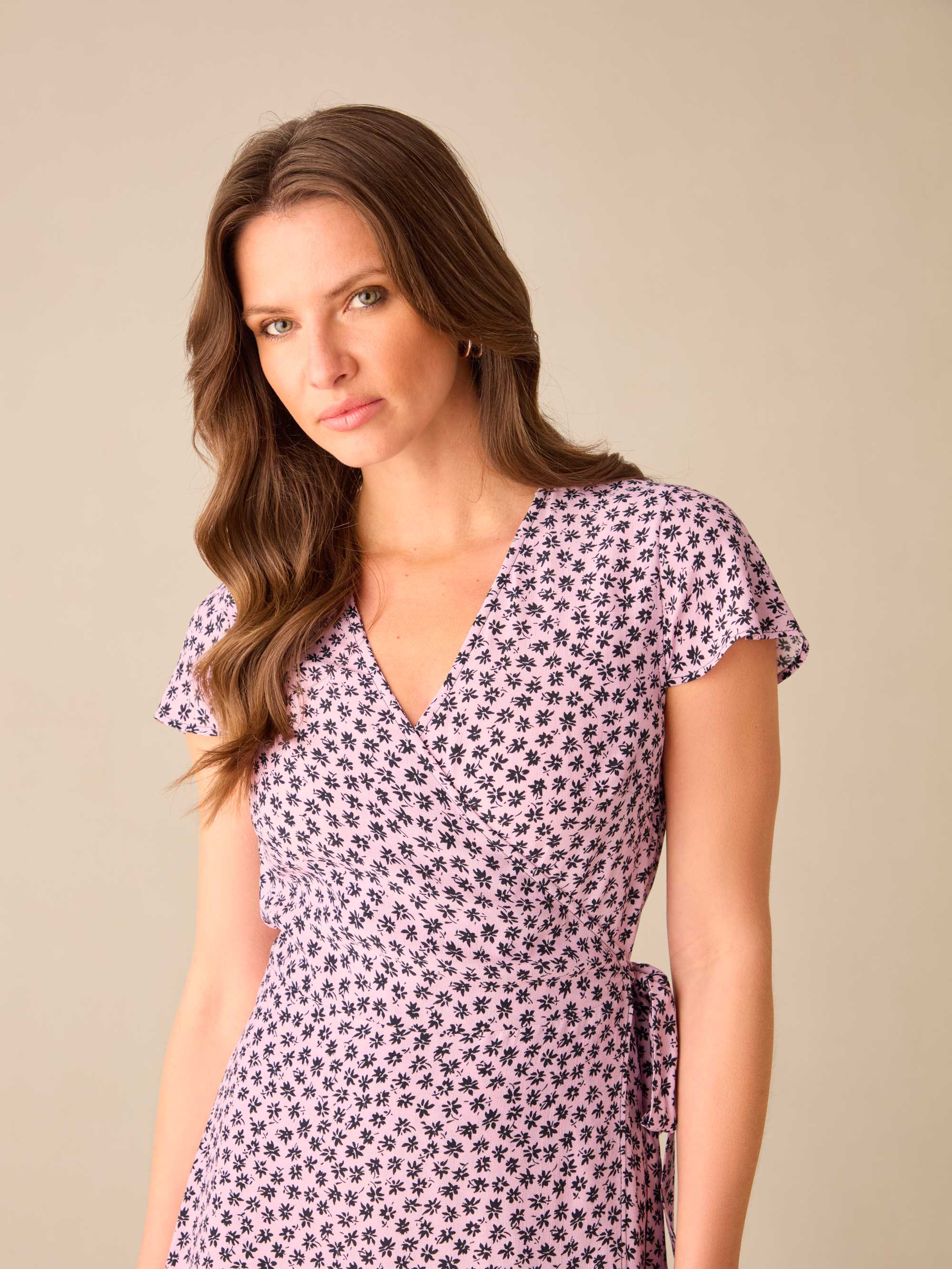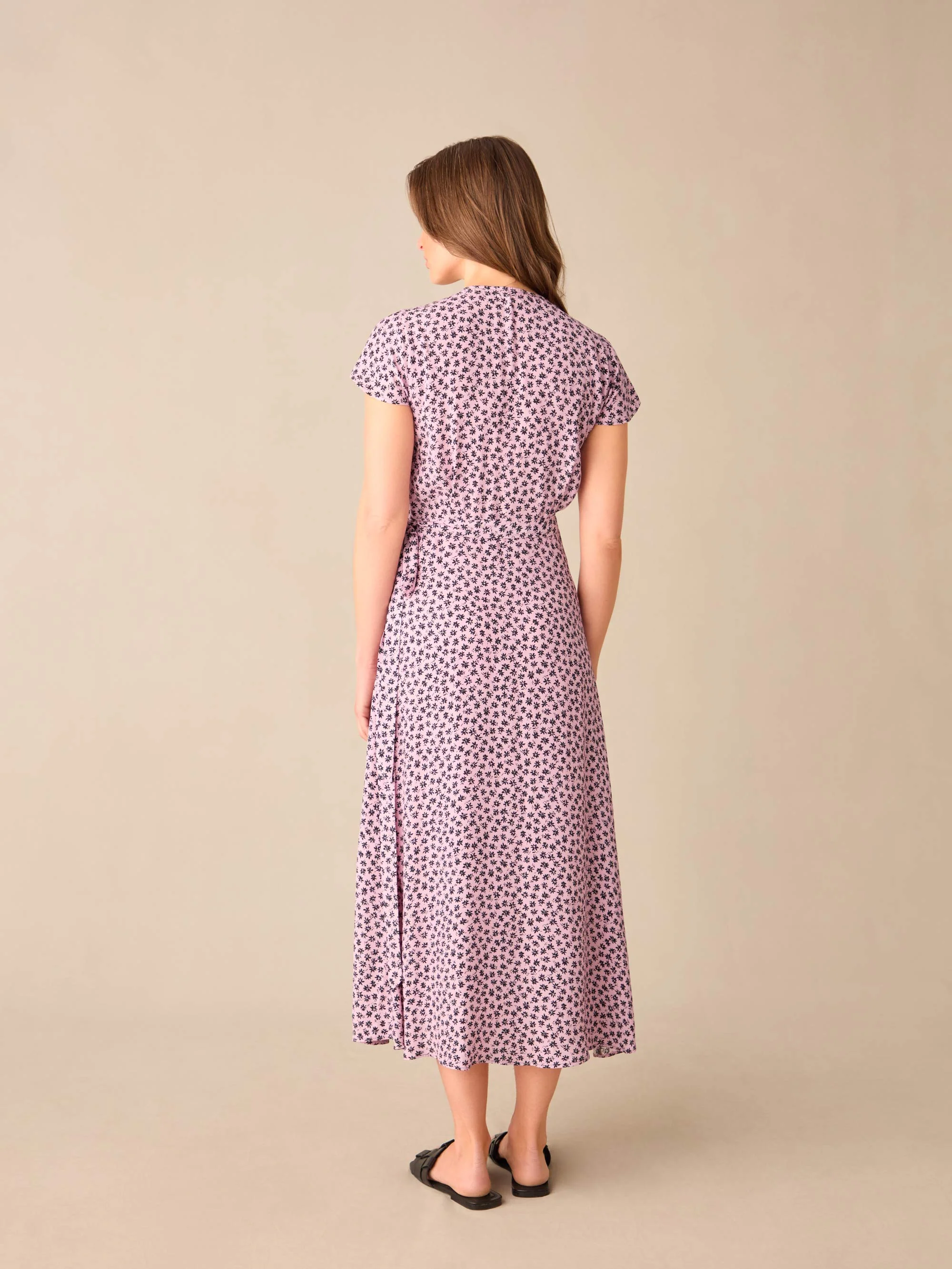 Petite Pink Ditsy Print Wrap Midi Dress
