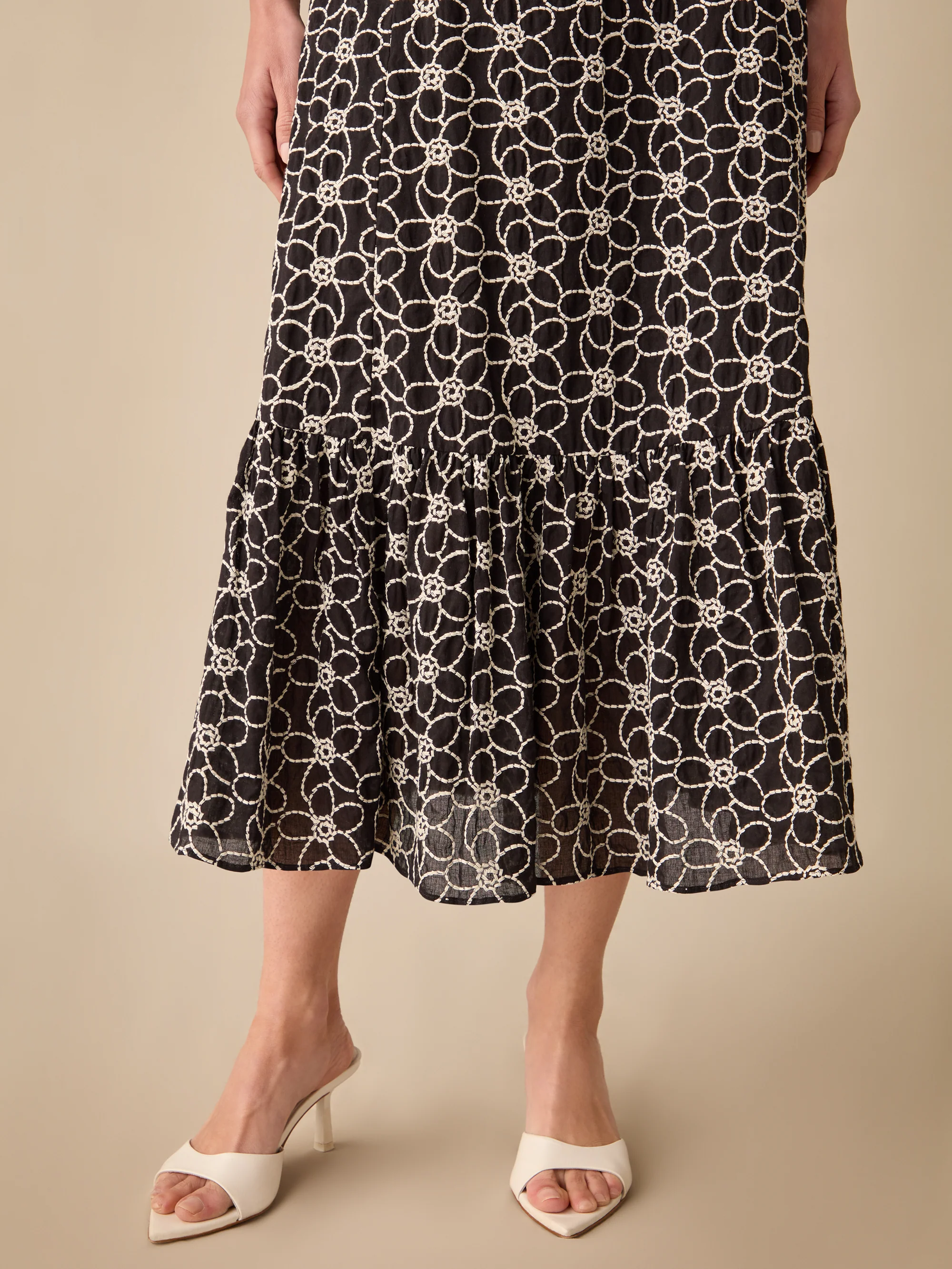 Petite Mono Sweetheart Neck Embroidered Dress