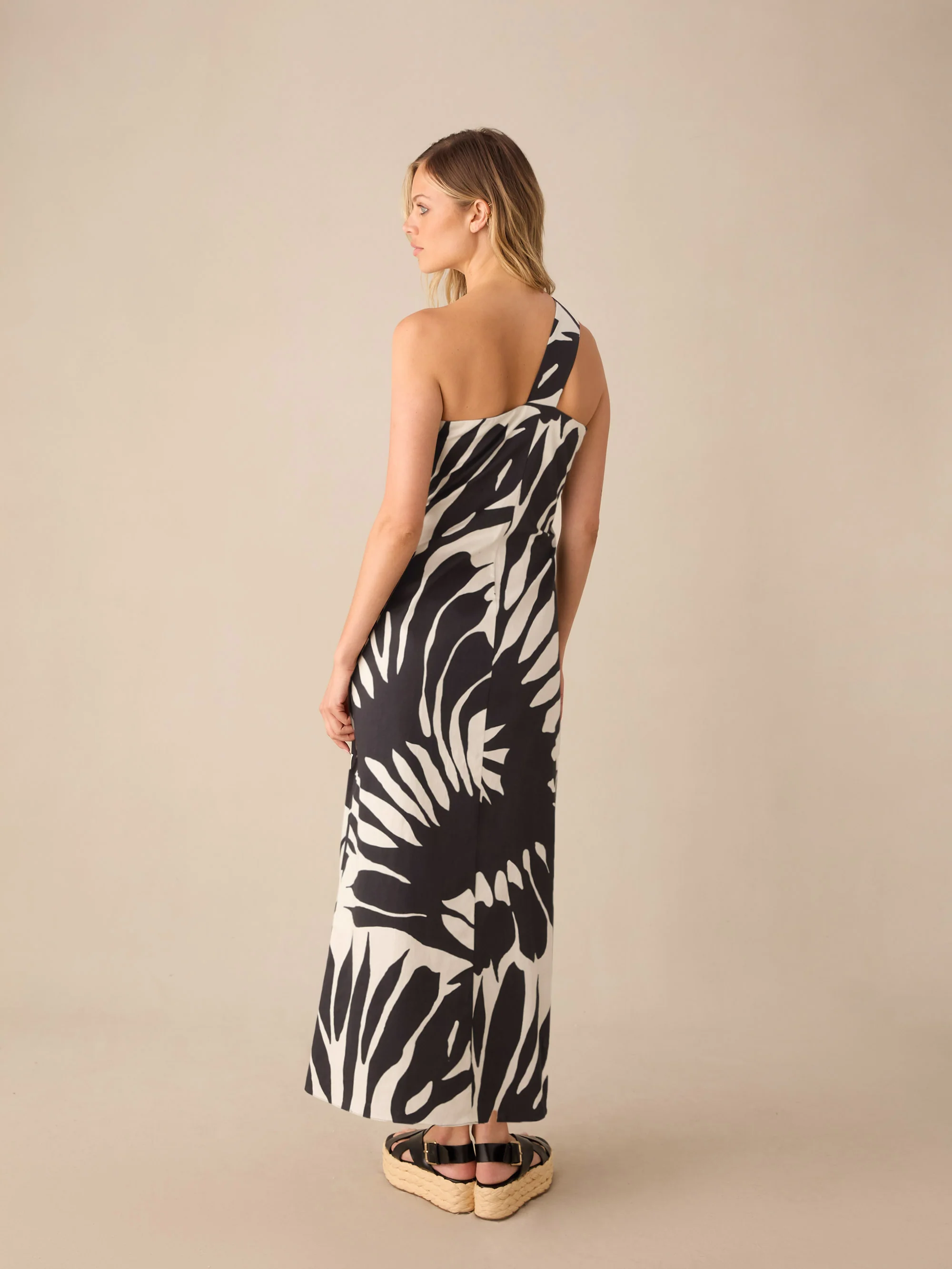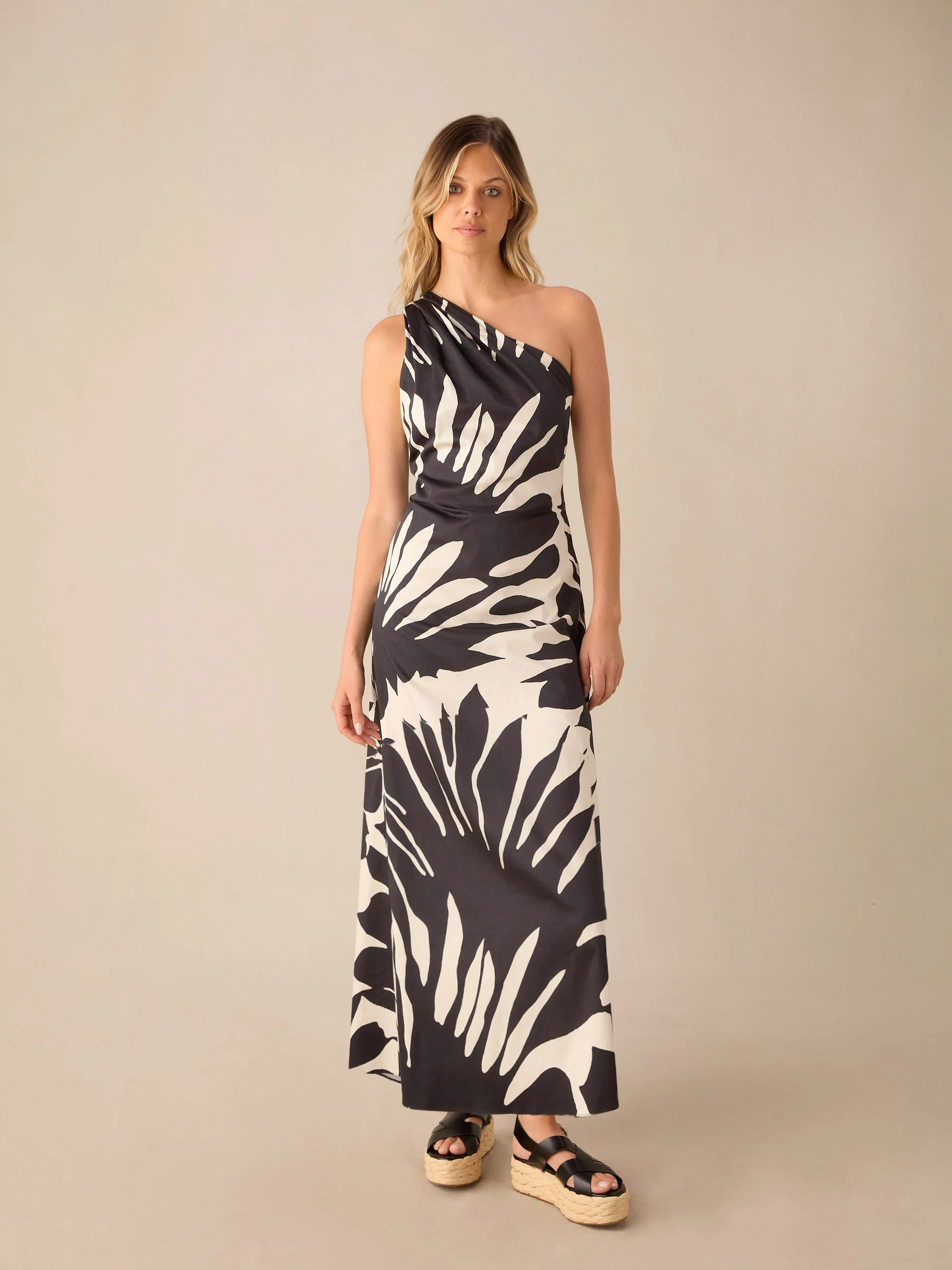 Mono Floral Cotton One Shoulder Maxi Dress