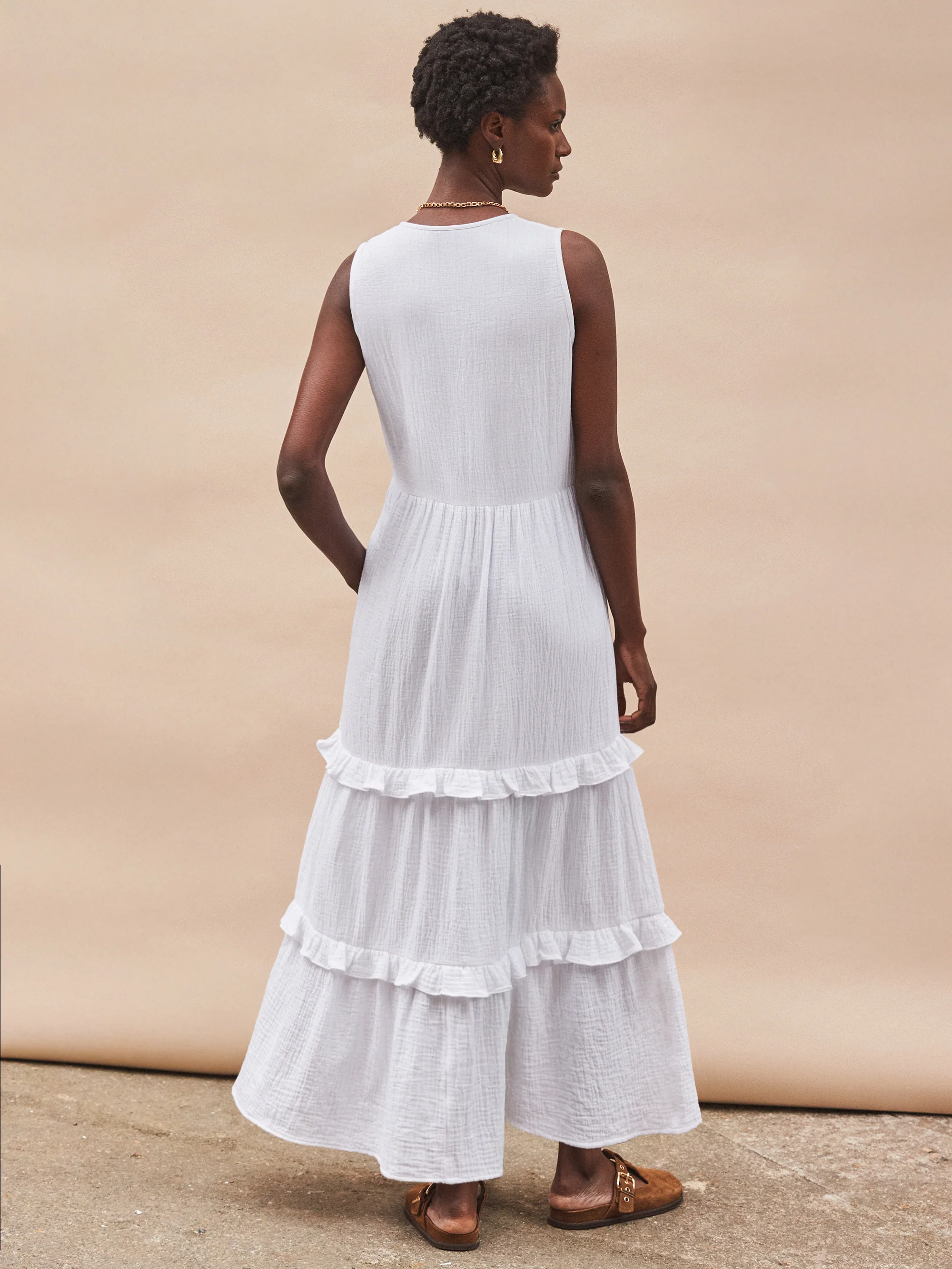 Petite White V-Neck Cheesecloth Midaxi Dress