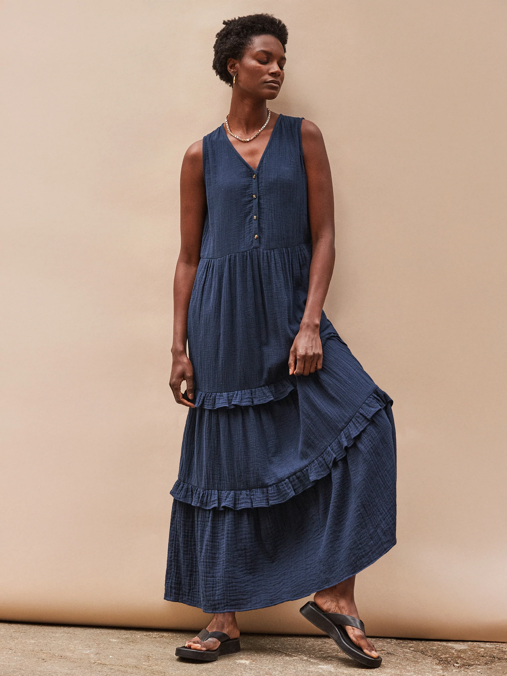 Petite Navy V-Neck Cheesecloth Midaxi Dress