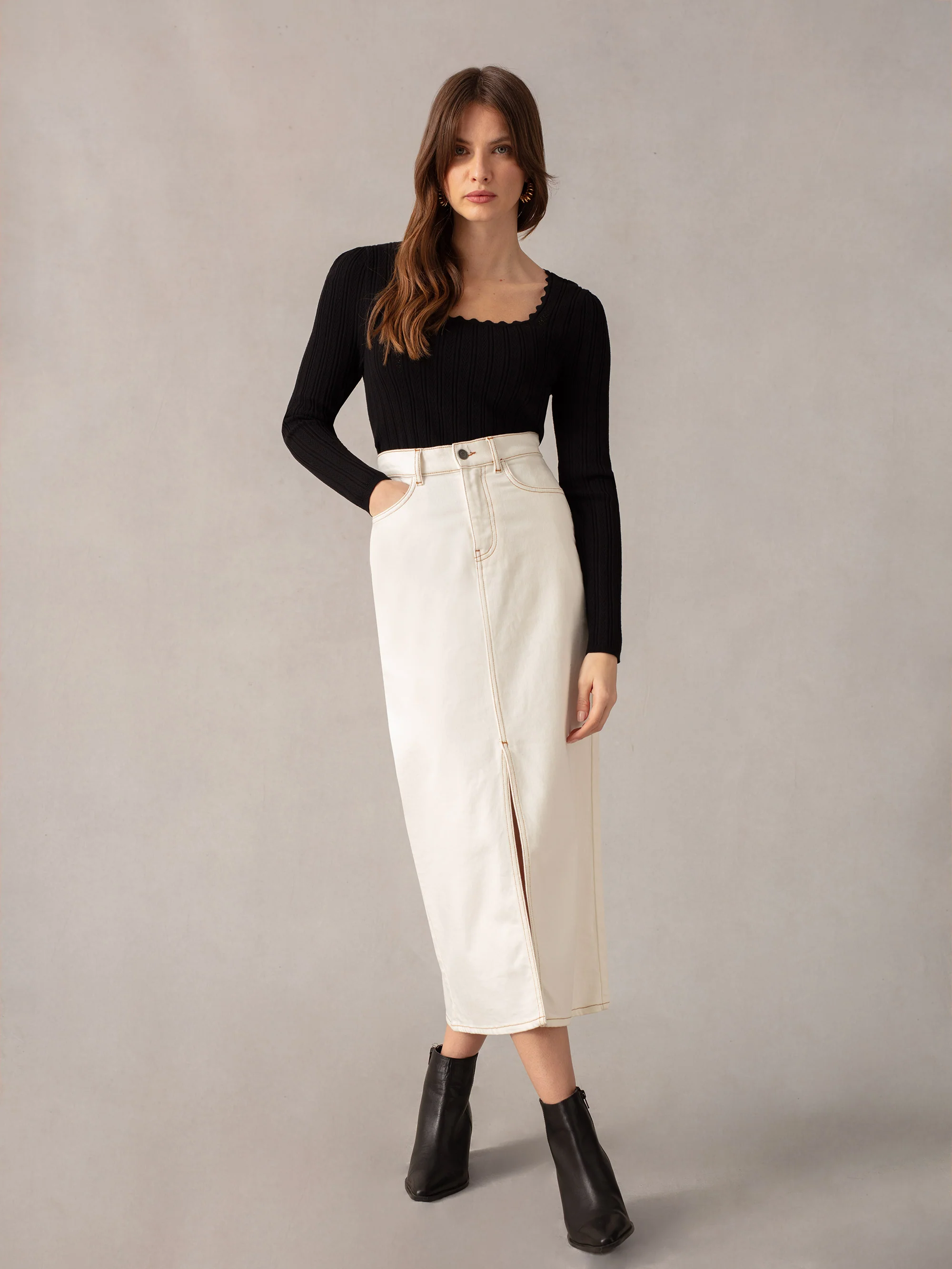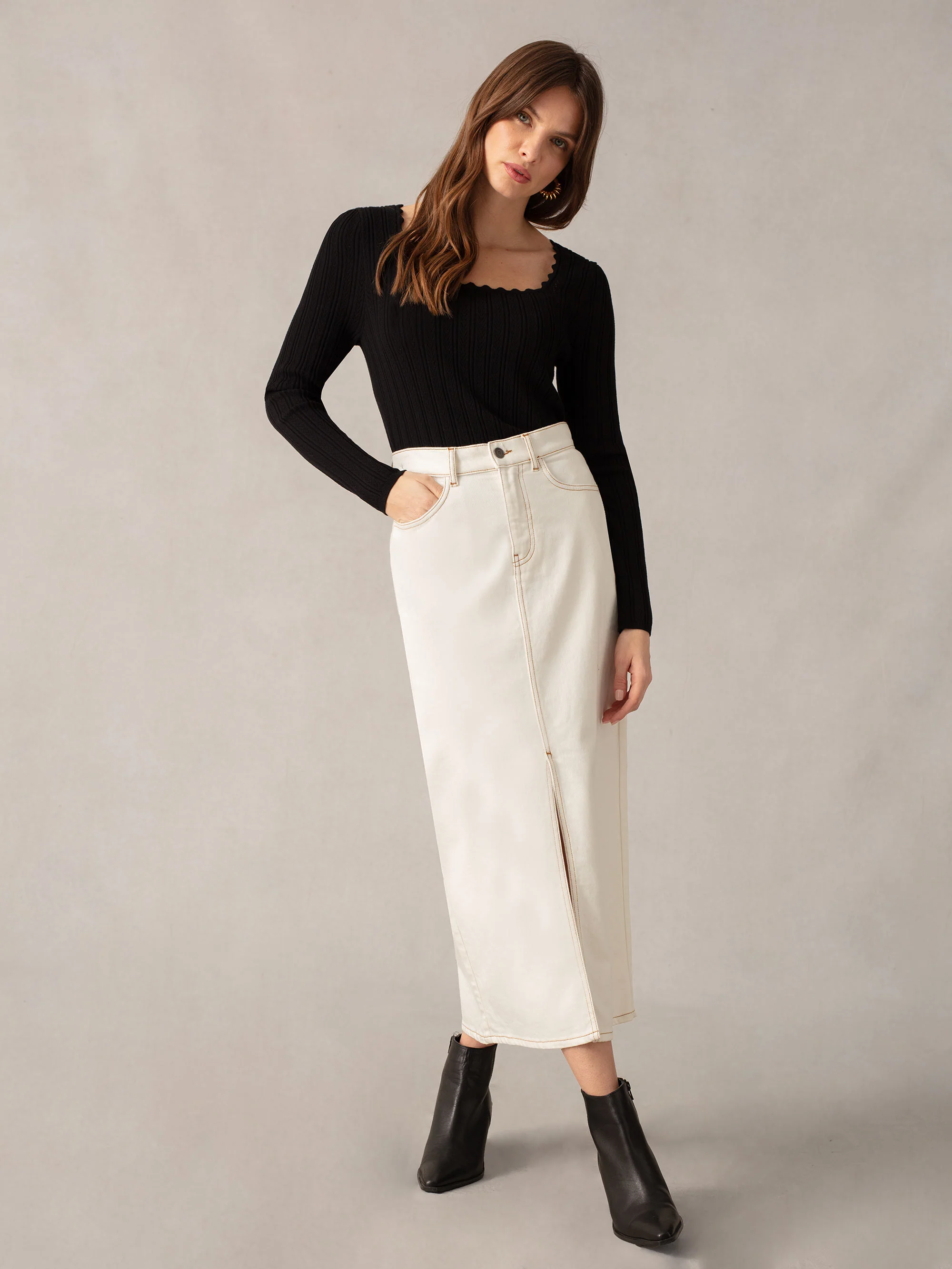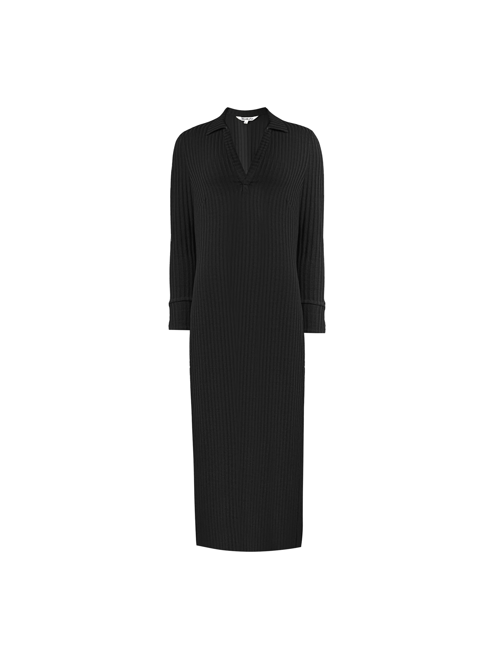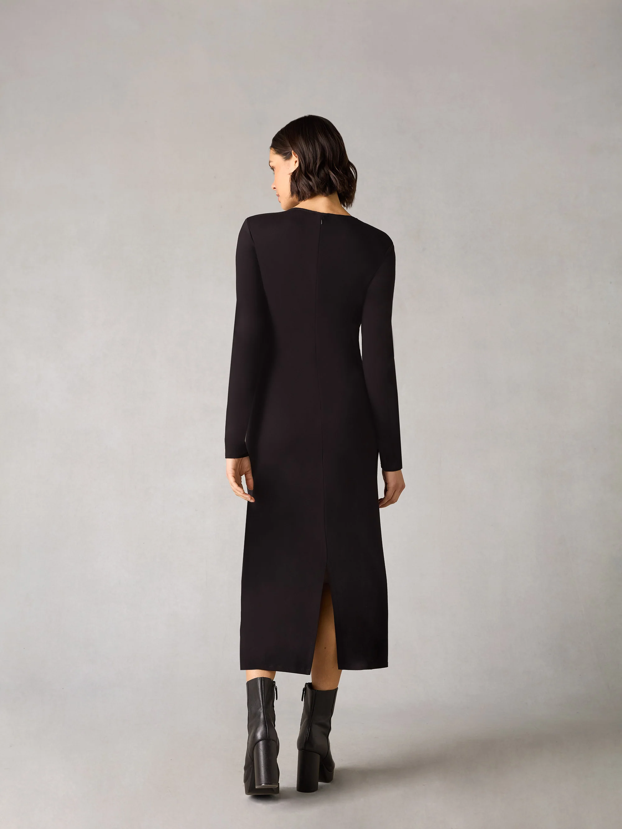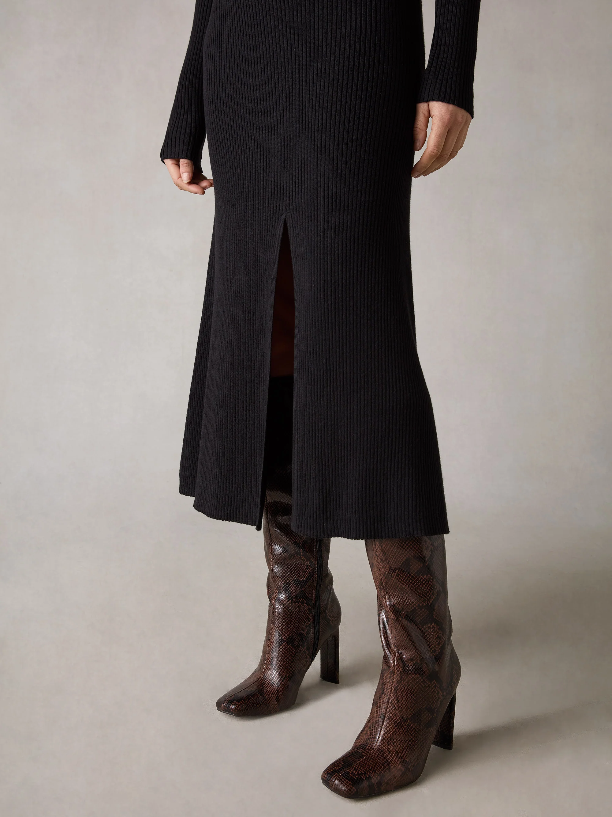 Petite Black Rib Knit Sweetheart Neckline Midi Dress