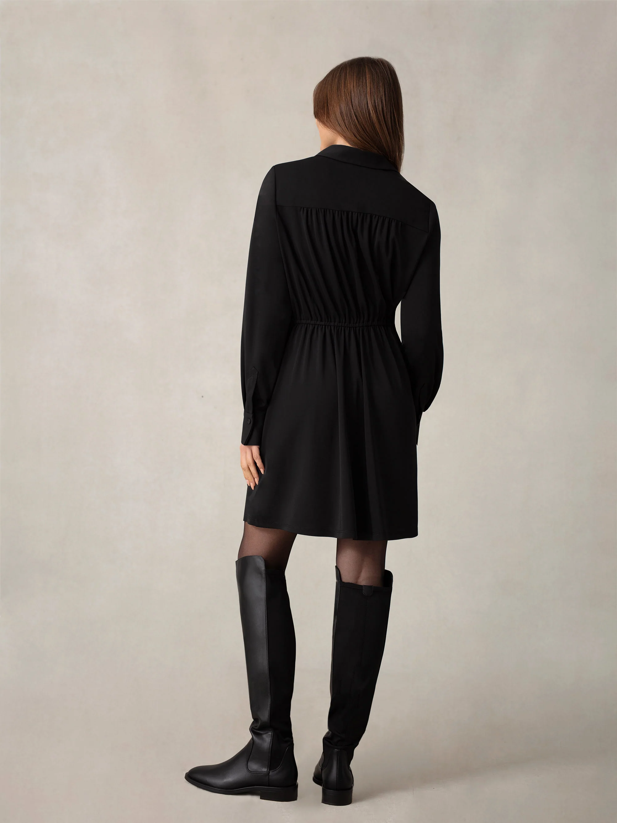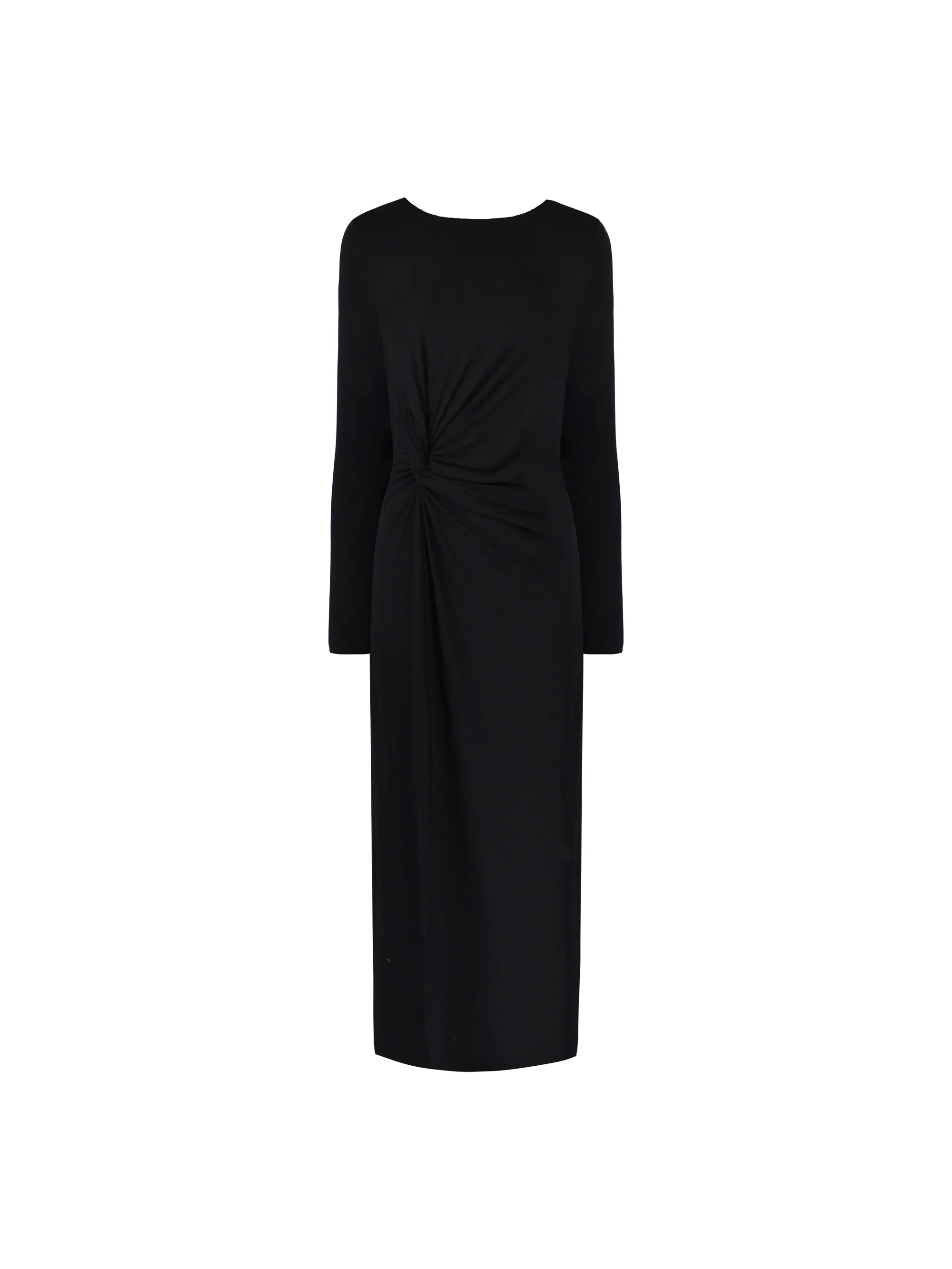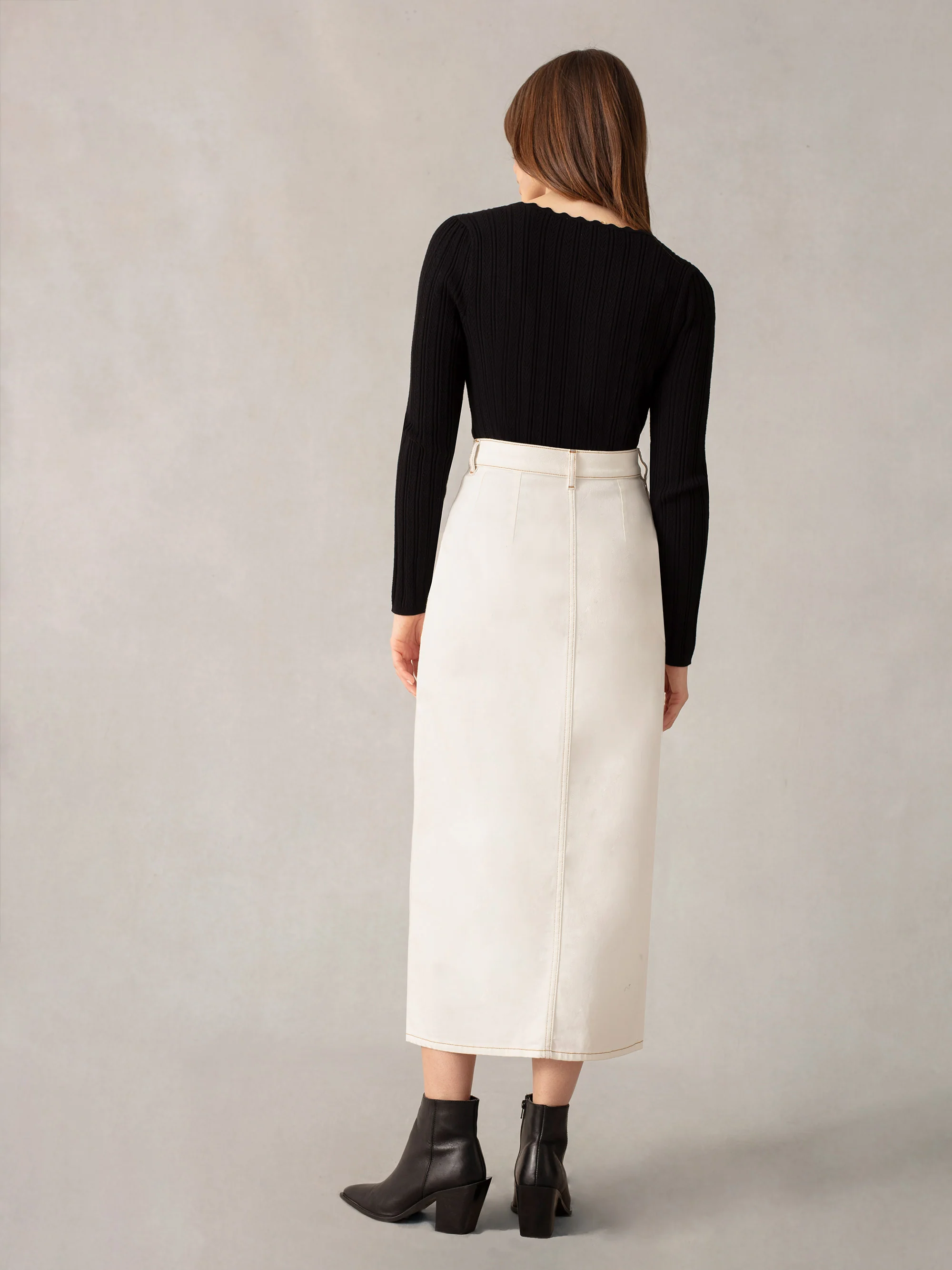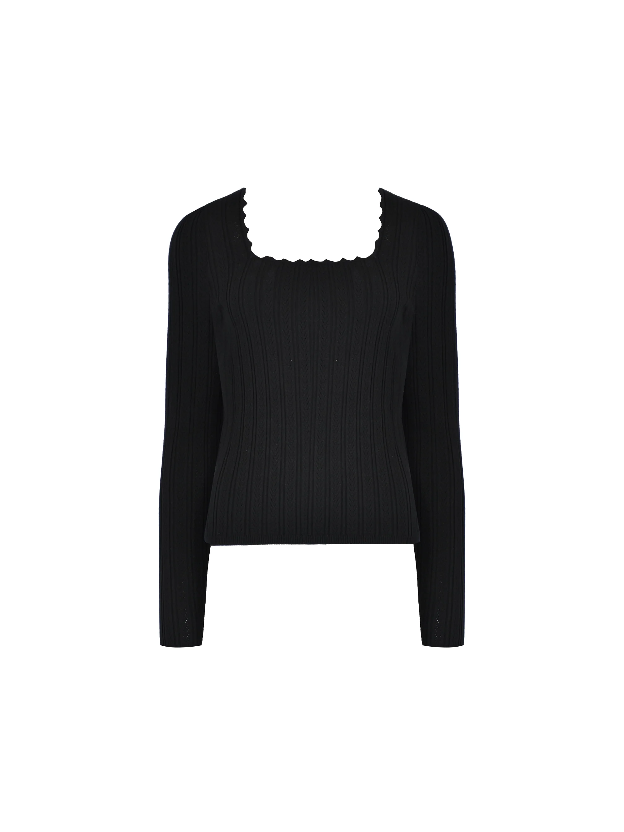 Petite Black Rib Knit Sweetheart Neckline Midi Dress