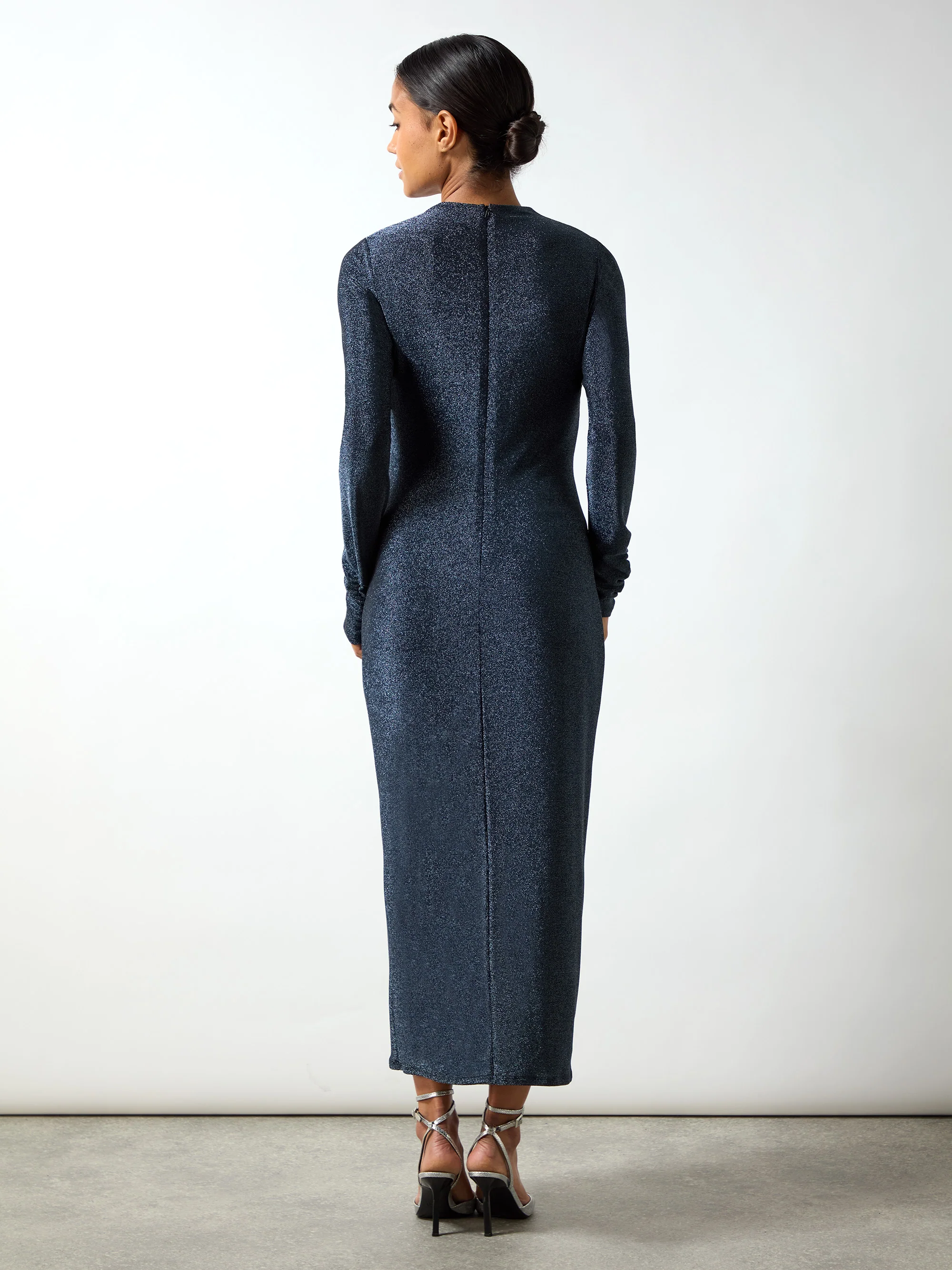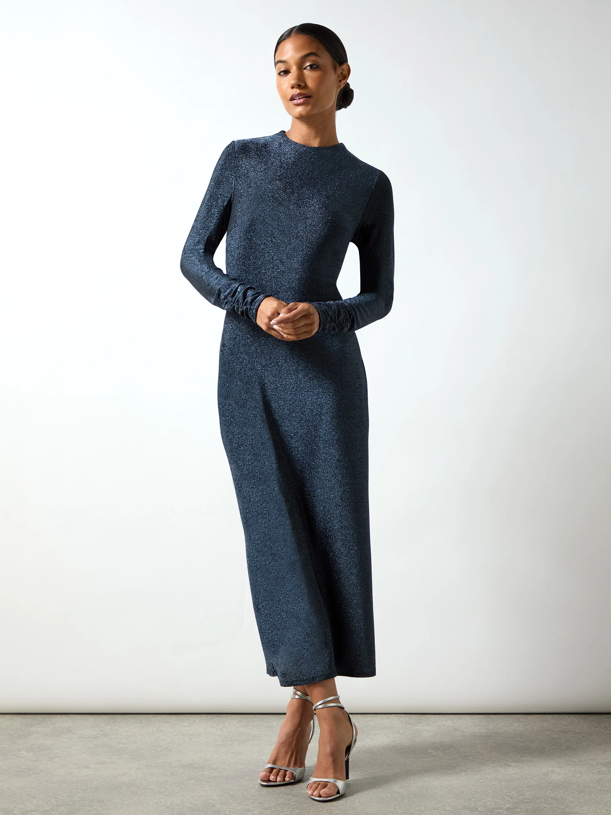 Delilah Navy Sparkle Jersey High Neck Midaxi Dress