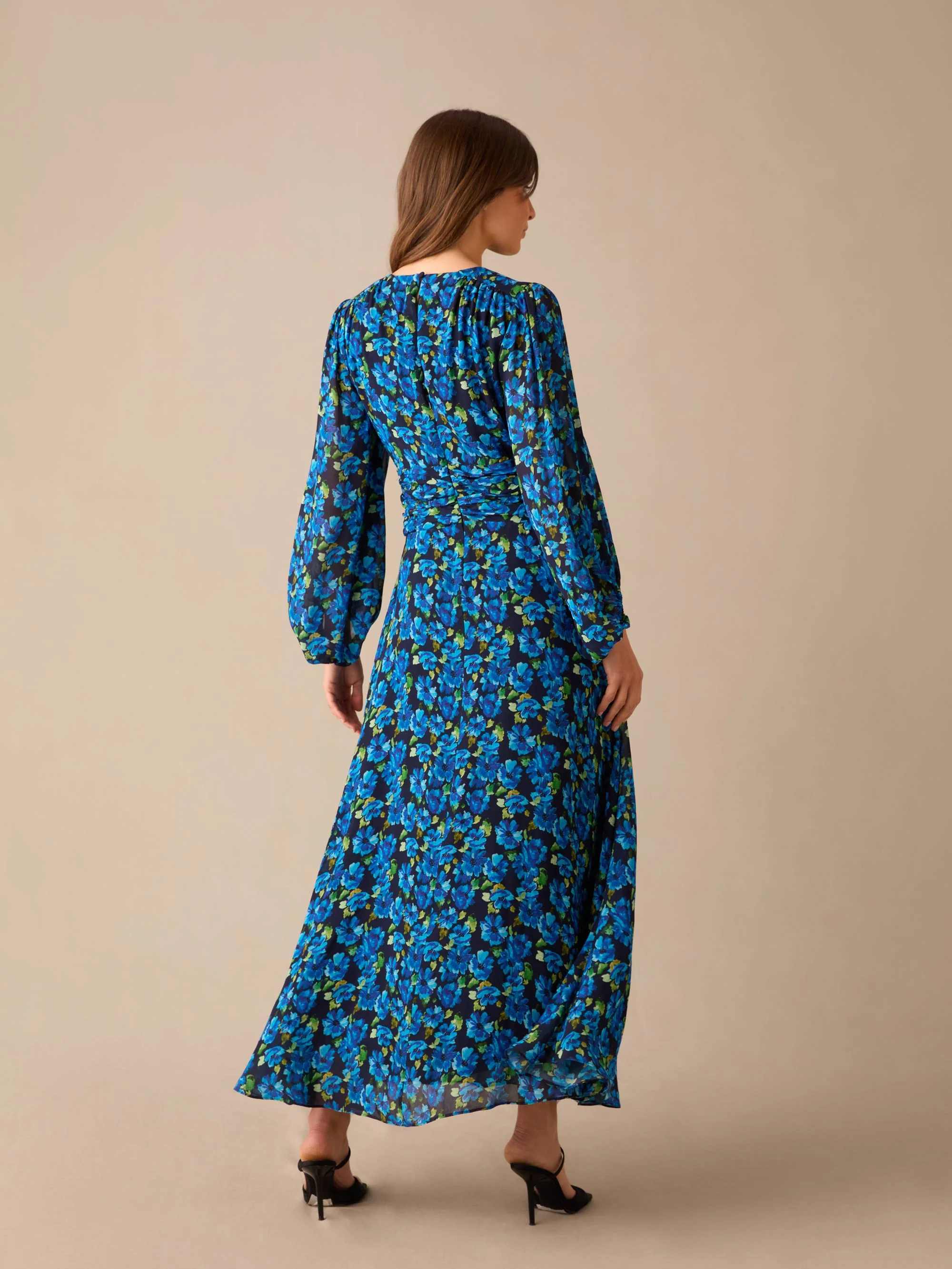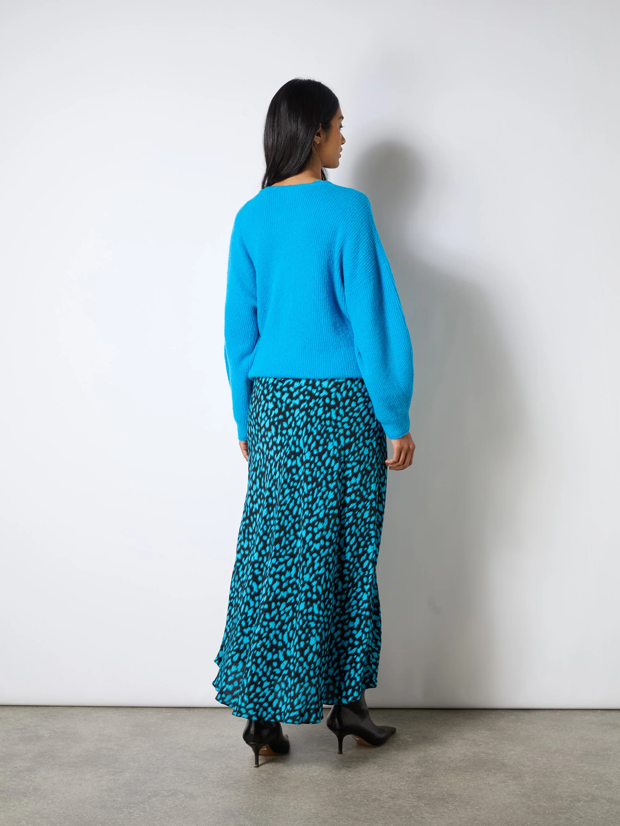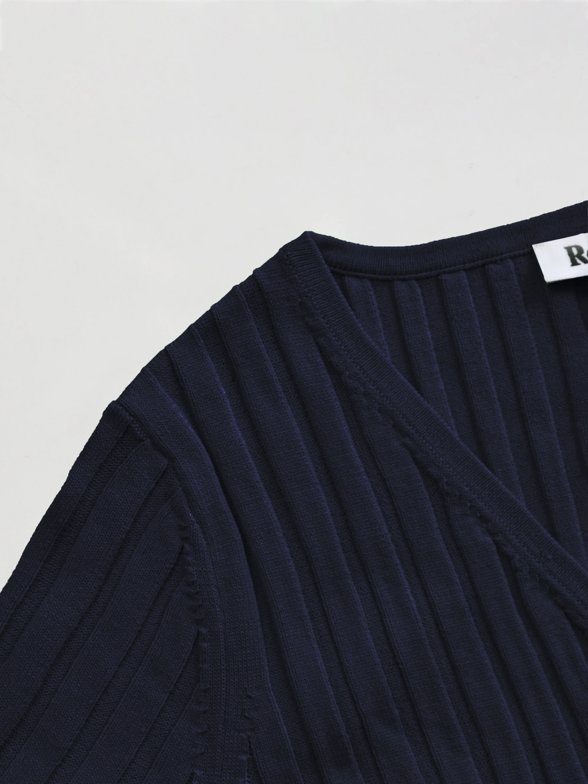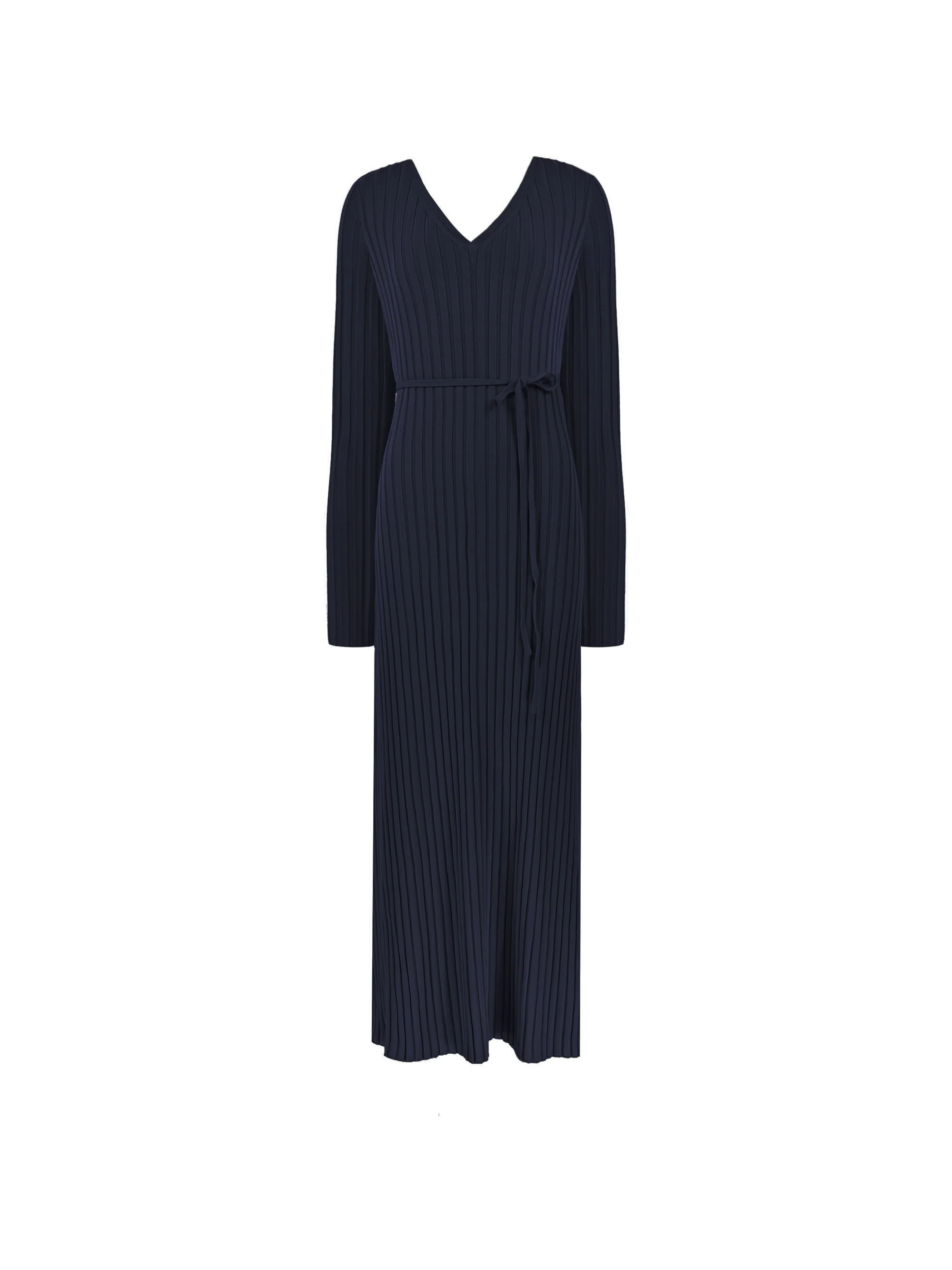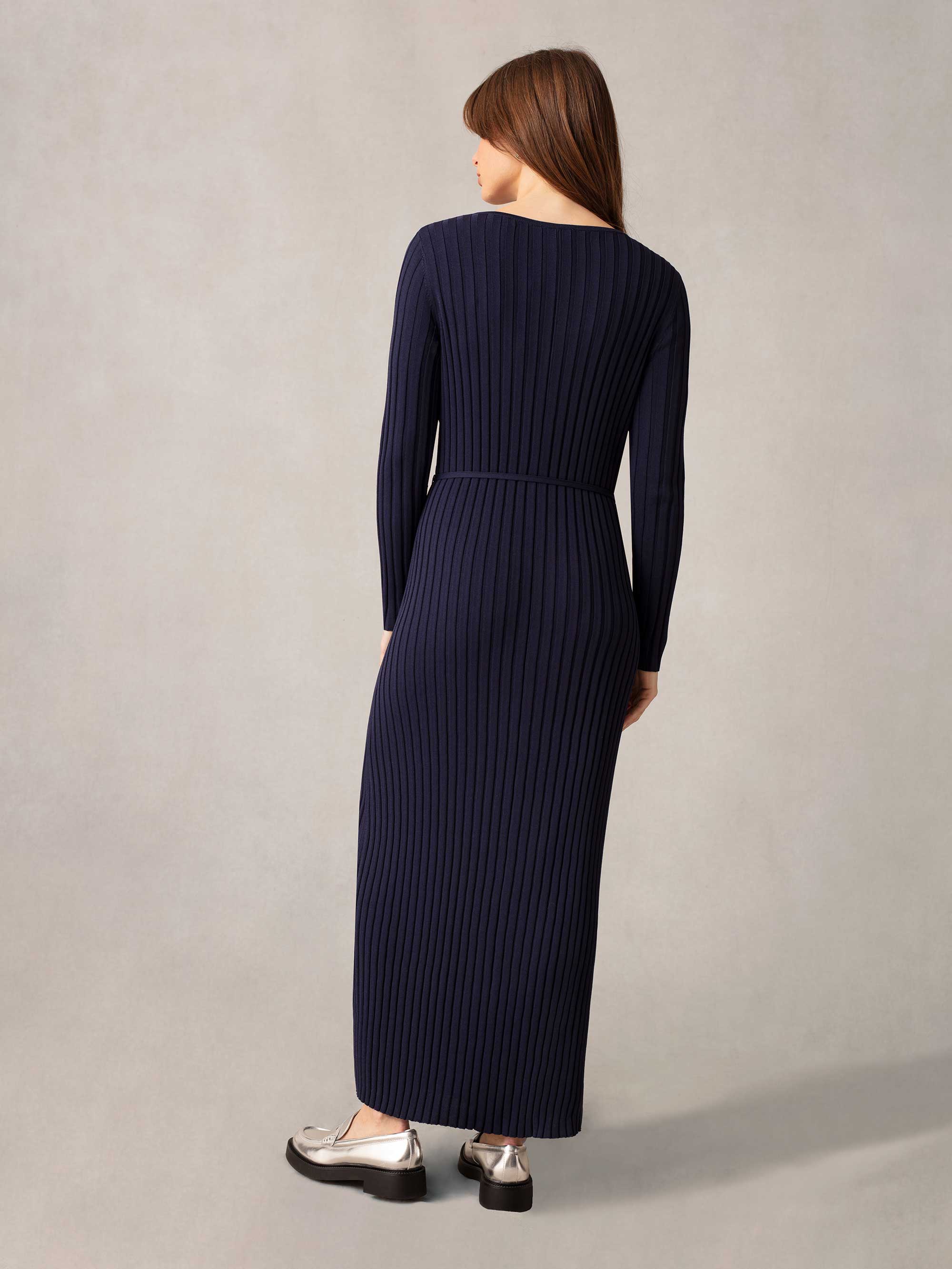 Navy Wide Rib Knit V-Neck Maxi Dress