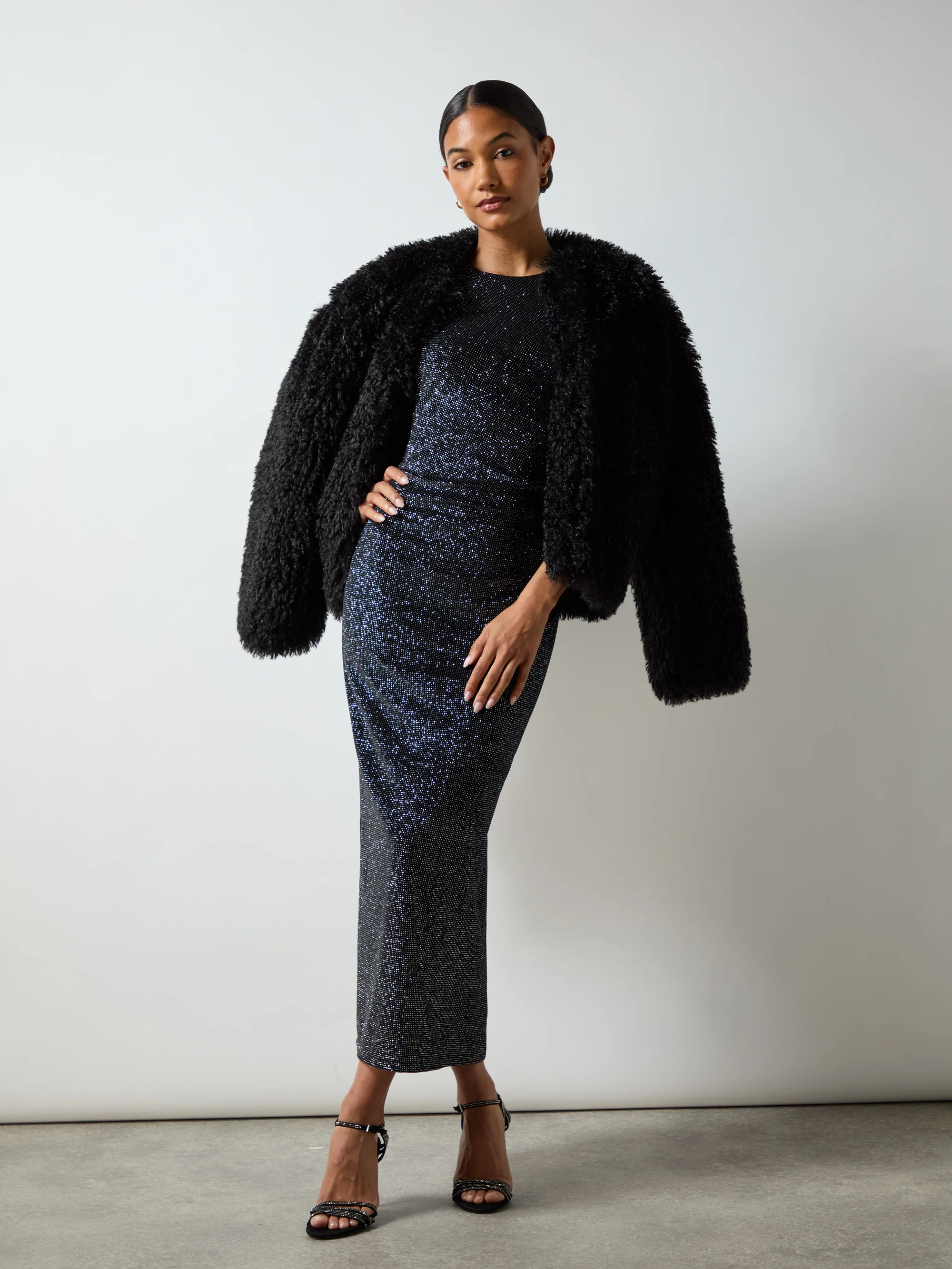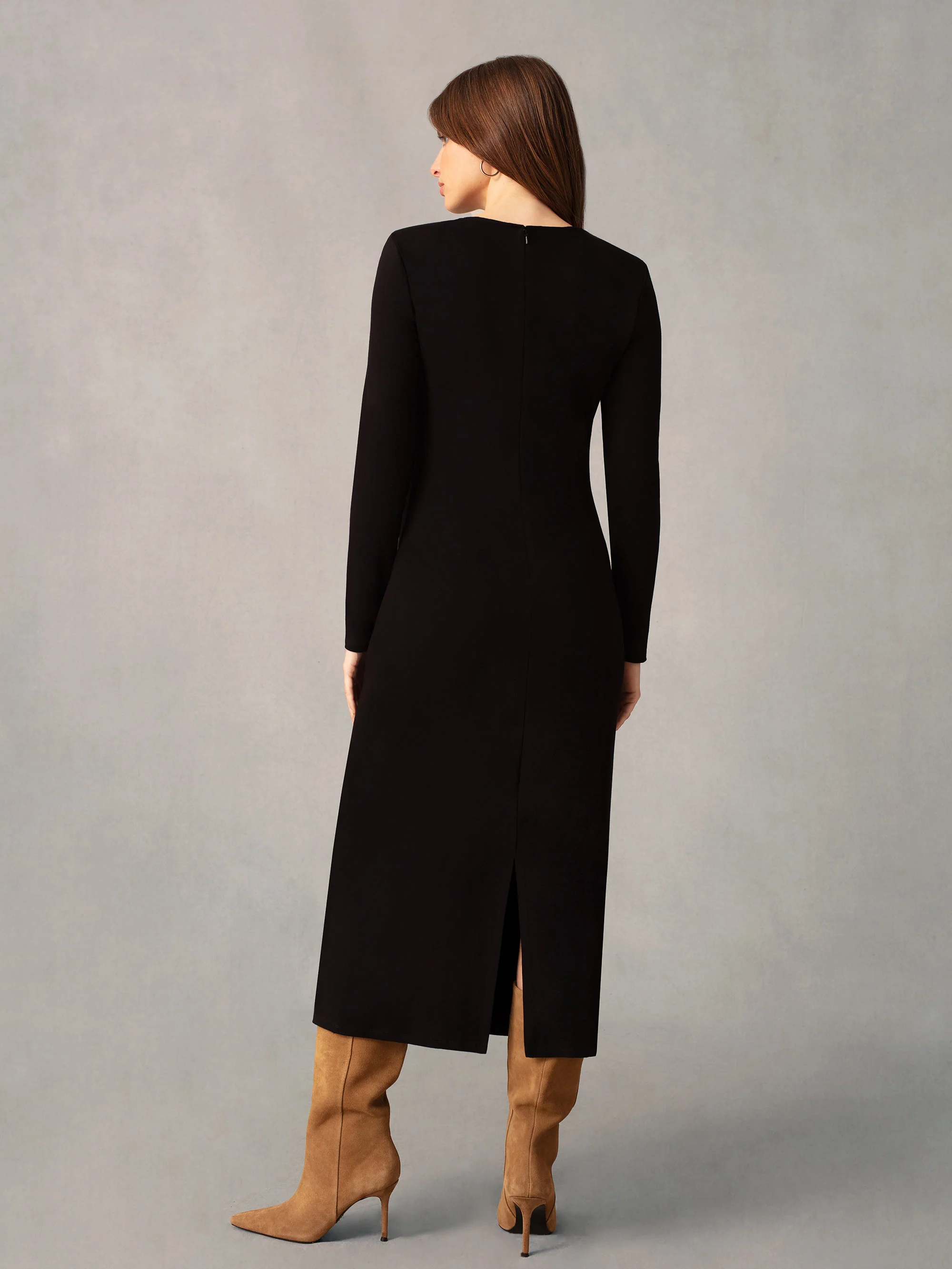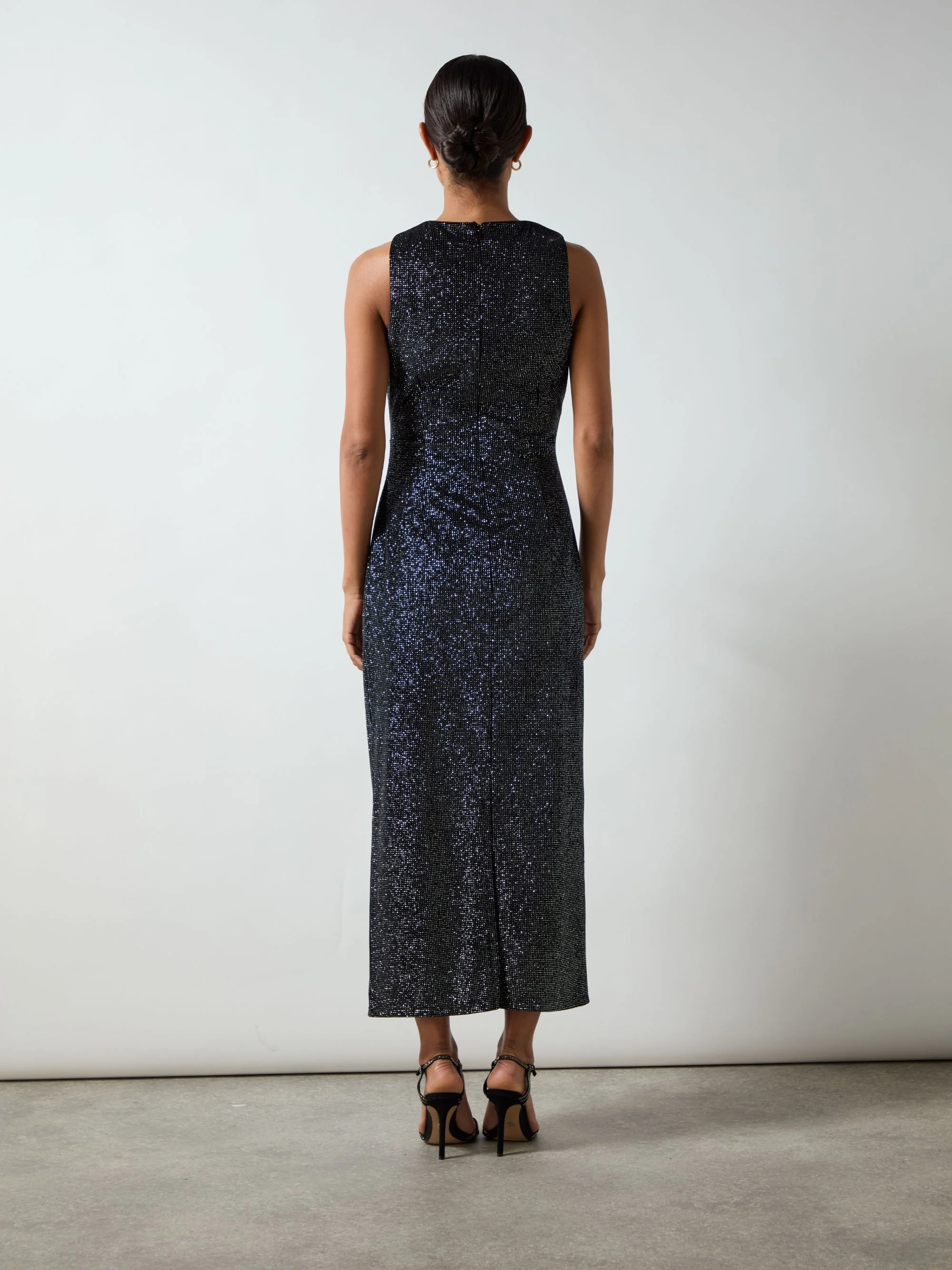 Gabriela Black Sparkle Velvet Column Midi Dress