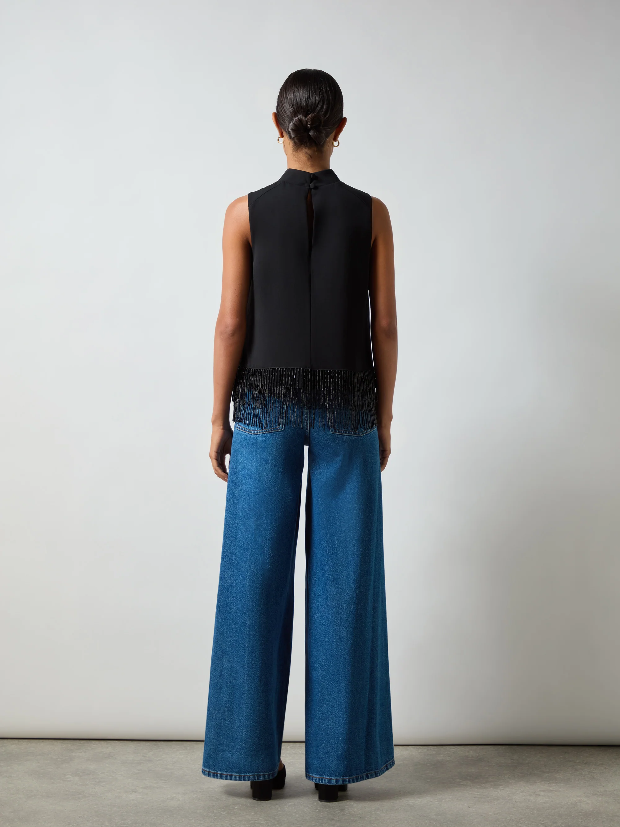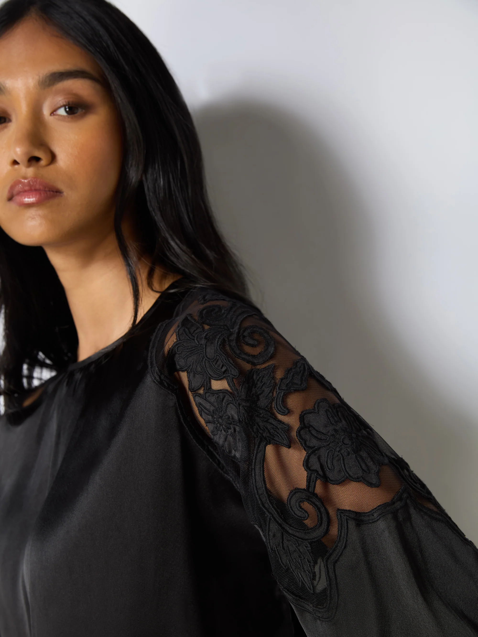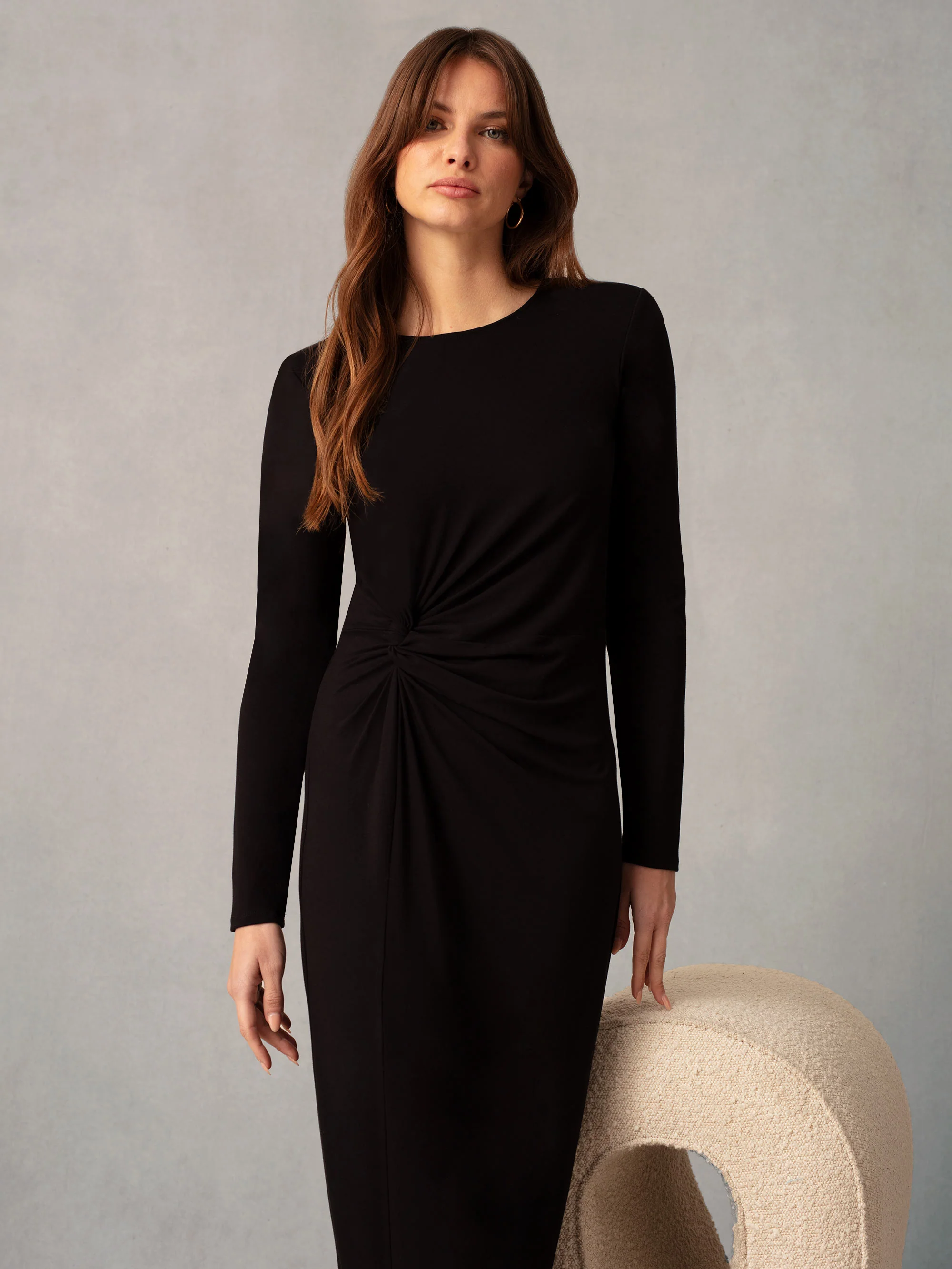 Gabriela Black Sparkle Velvet Column Midi Dress