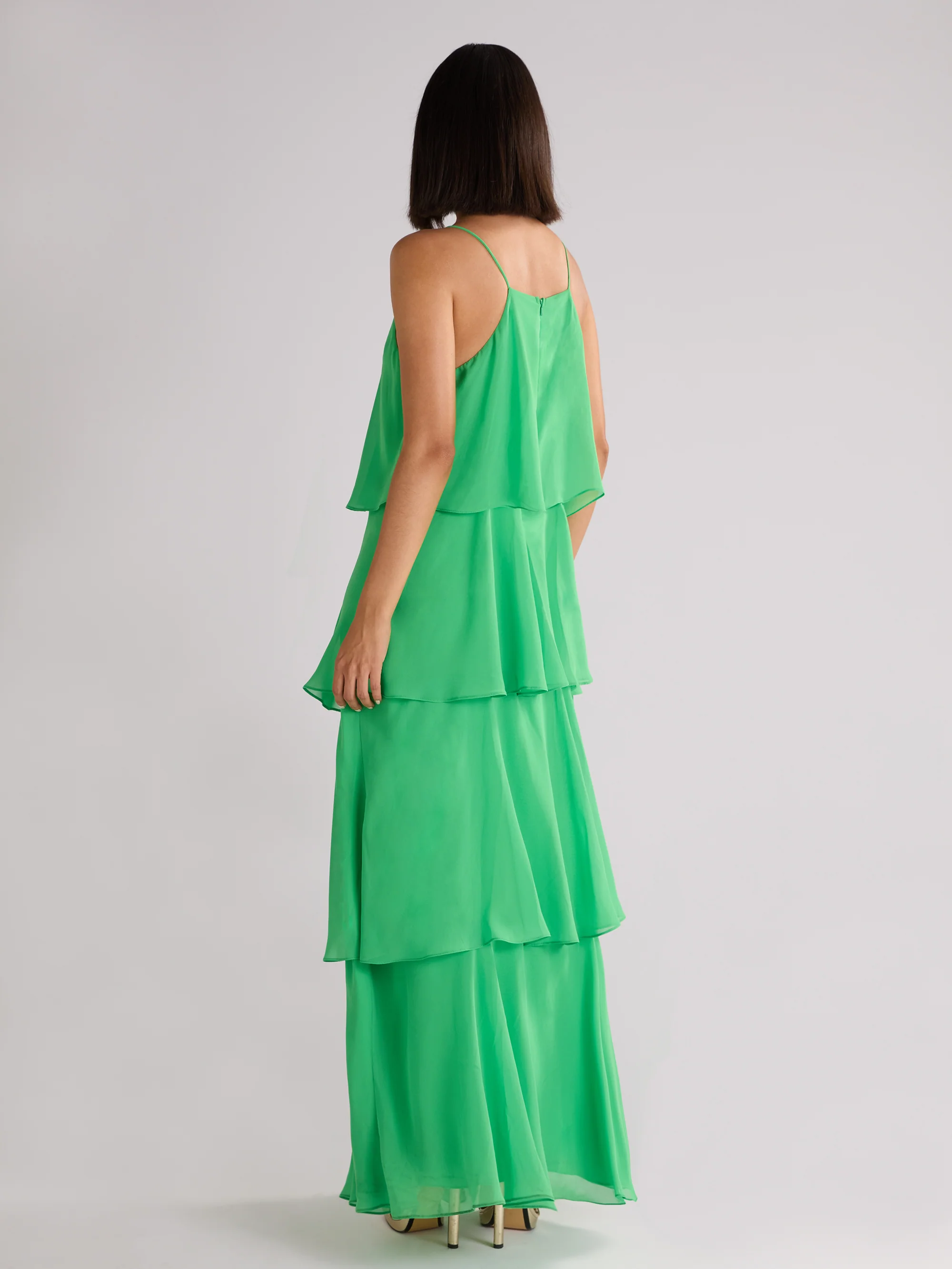 Petite Savannah Green Chiffon Tiered Maxi Dress
