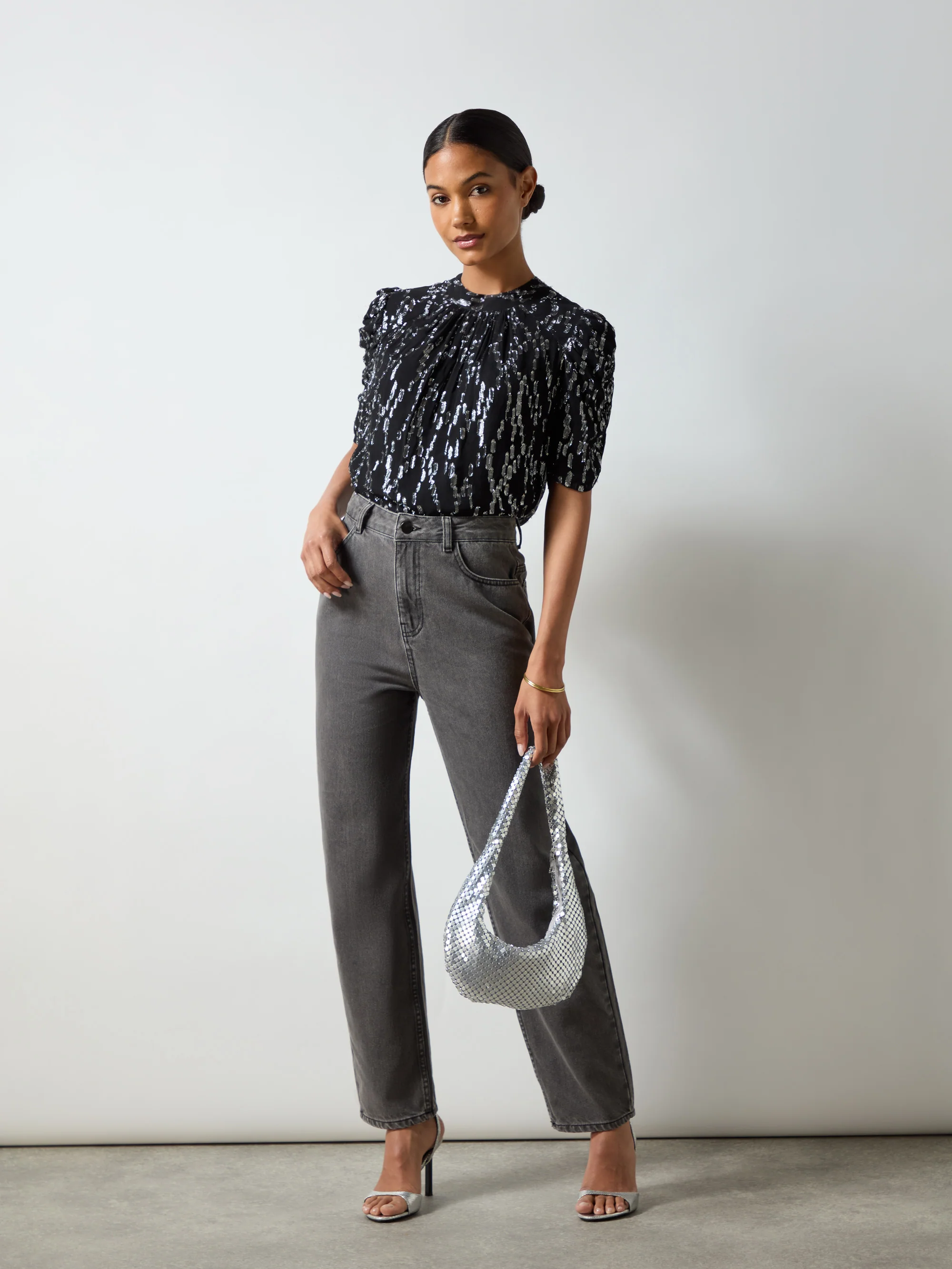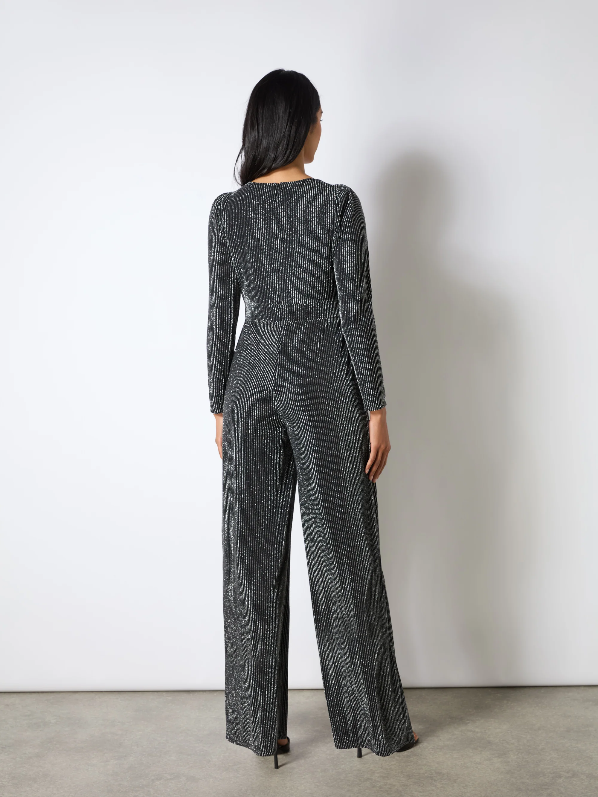 Eliza Silver Sparkle Jersey V-Neck Jumpsuit