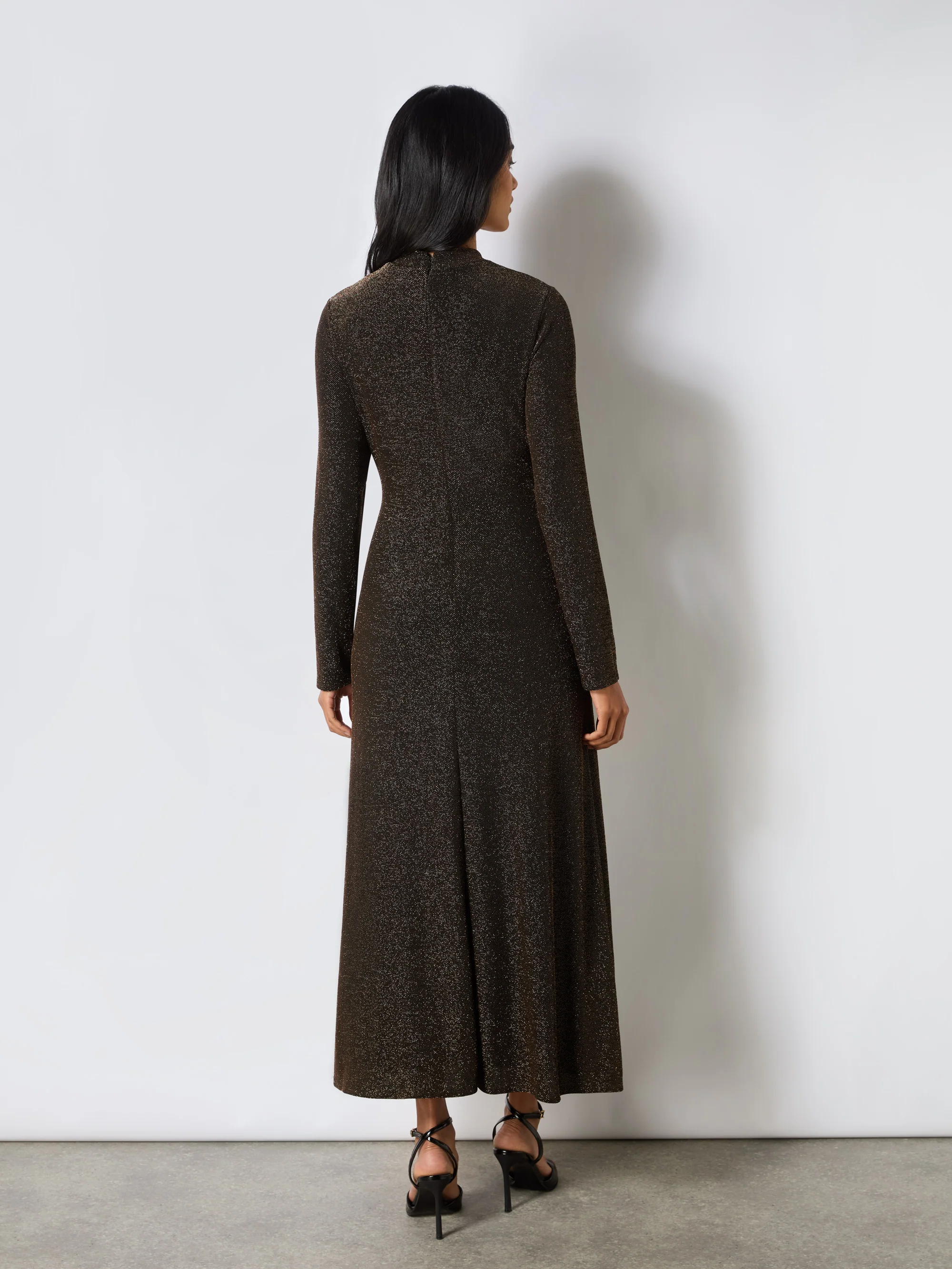 Petite Zara Gold Sparkle Jersey Keyhole Front Dress