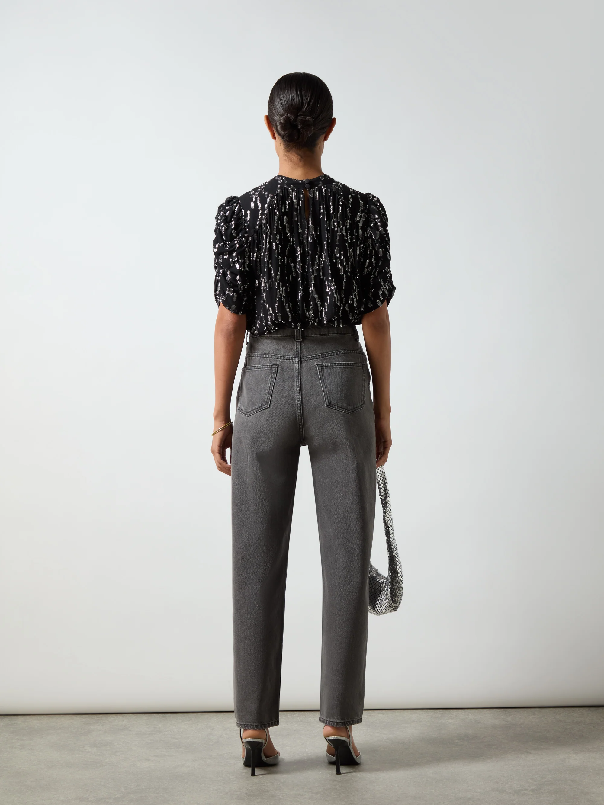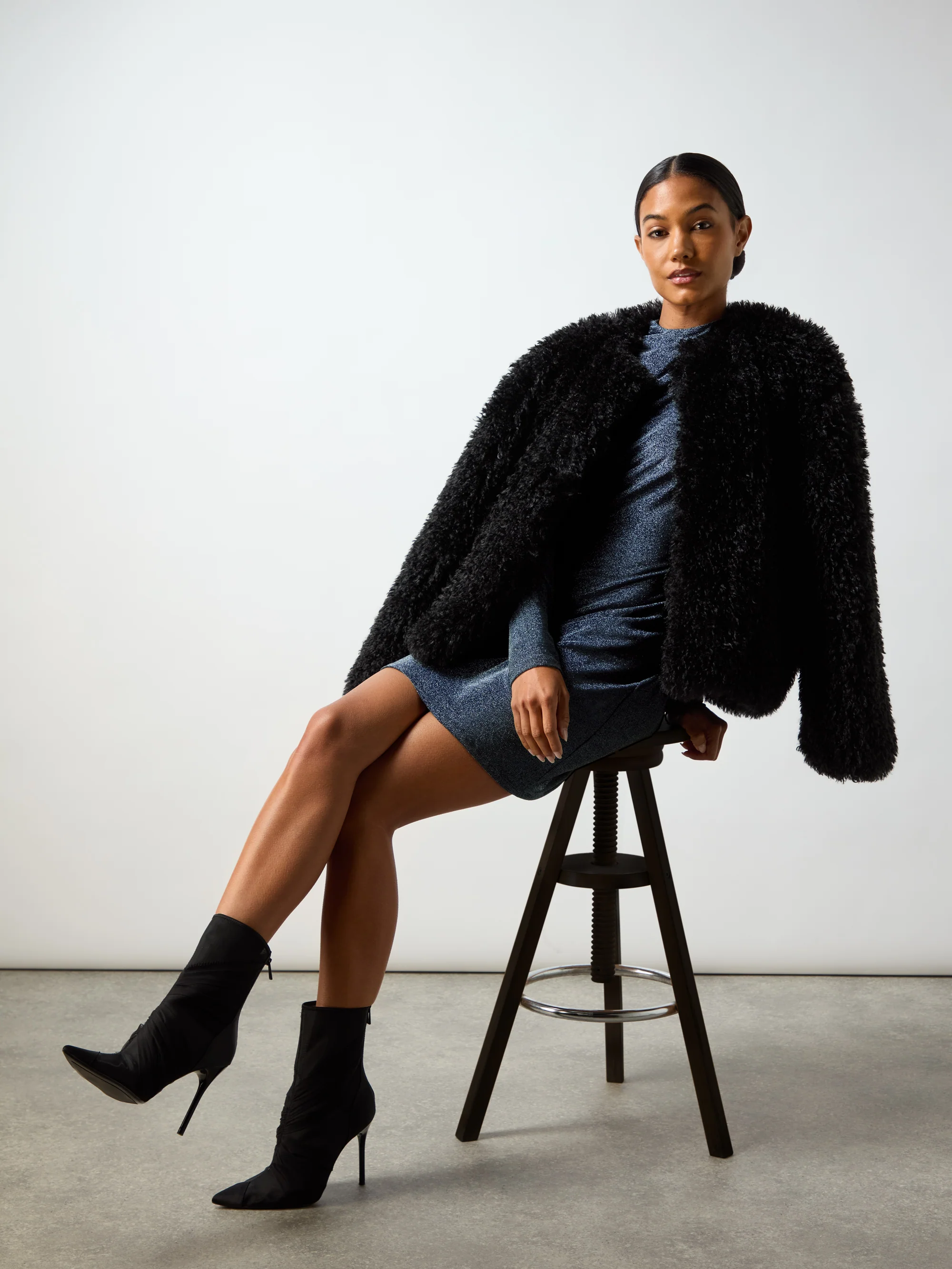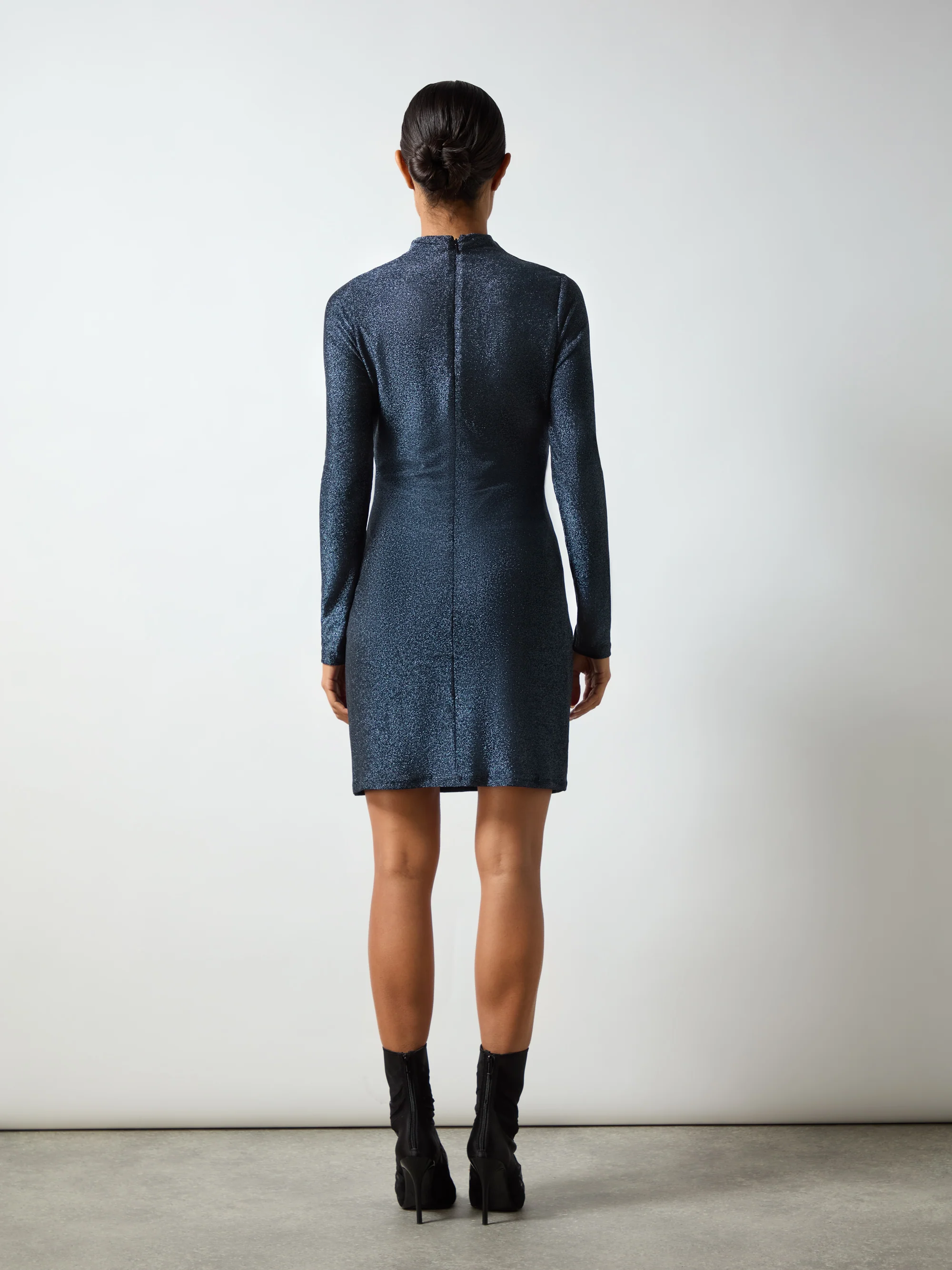 Petite Darcy Navy Sparkle Jersey High Neck Mini Dress