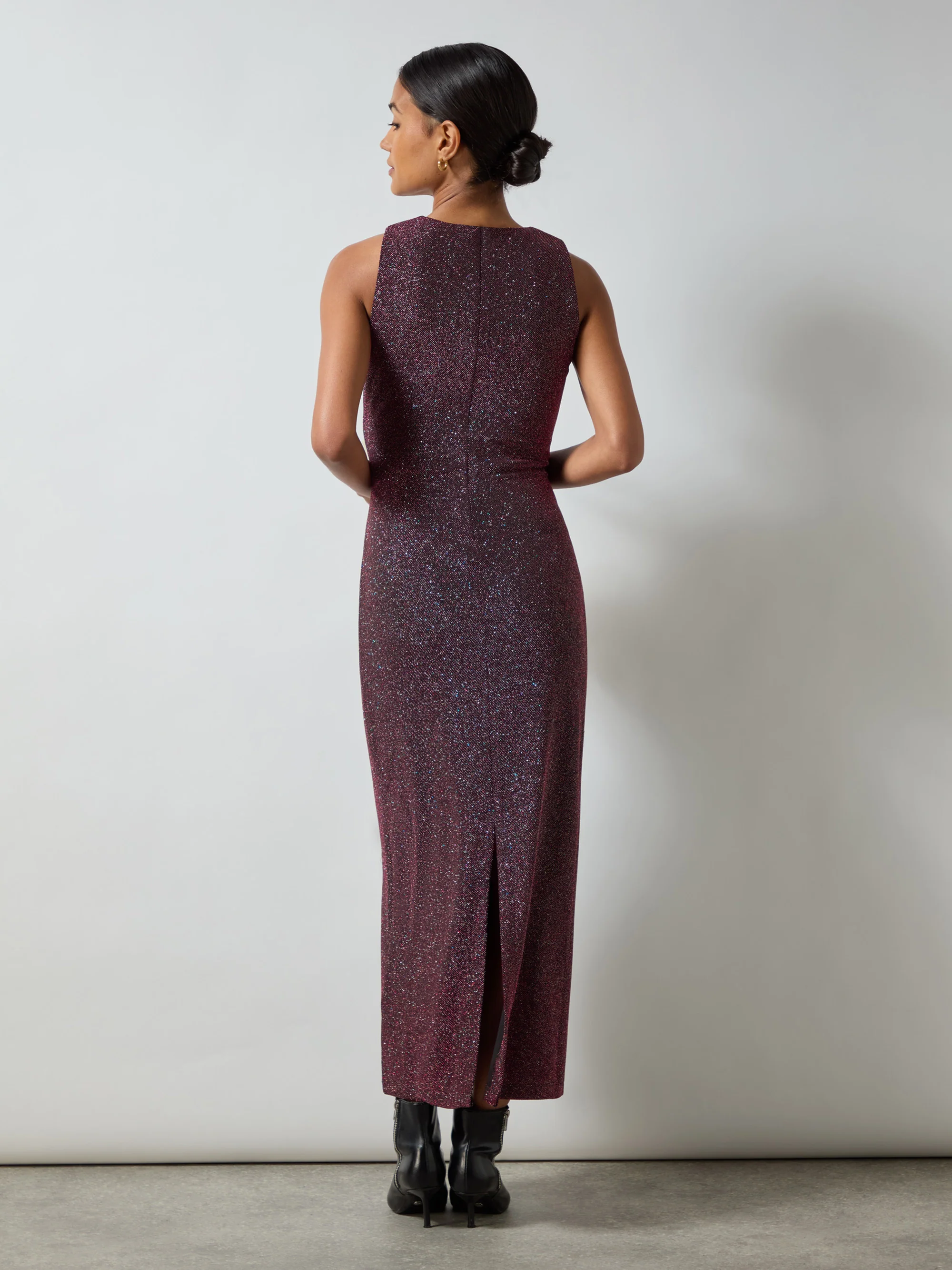 Gabriela Burgundy Super Sparkle Column Midi Dress