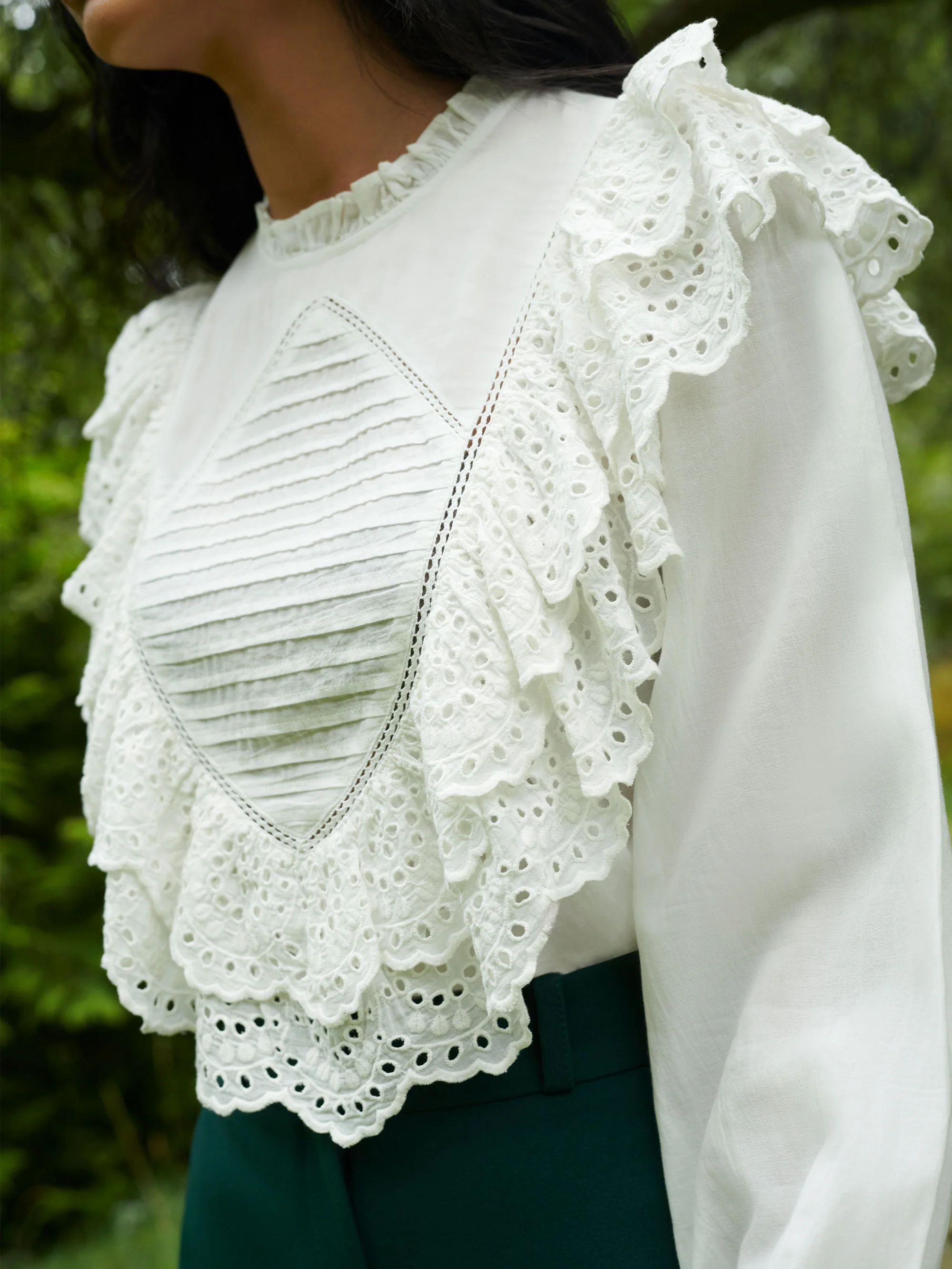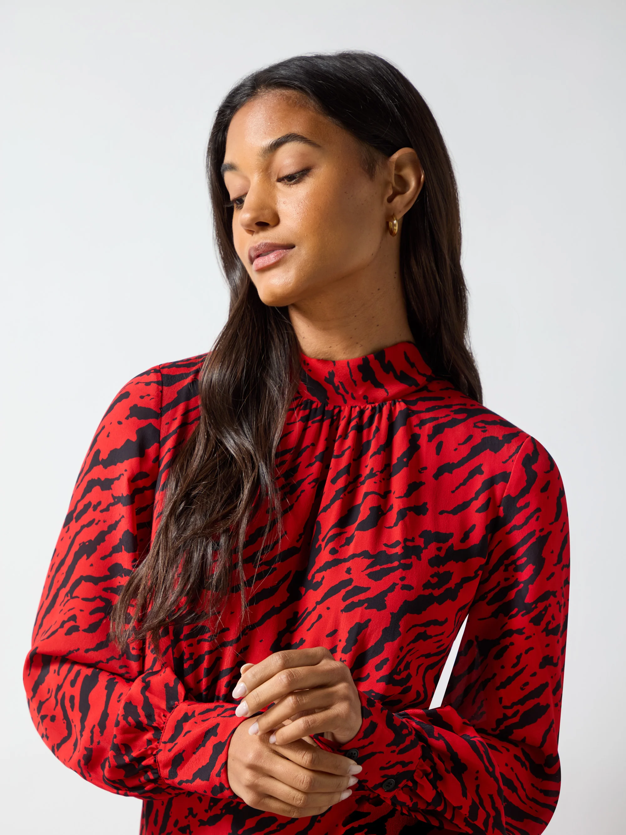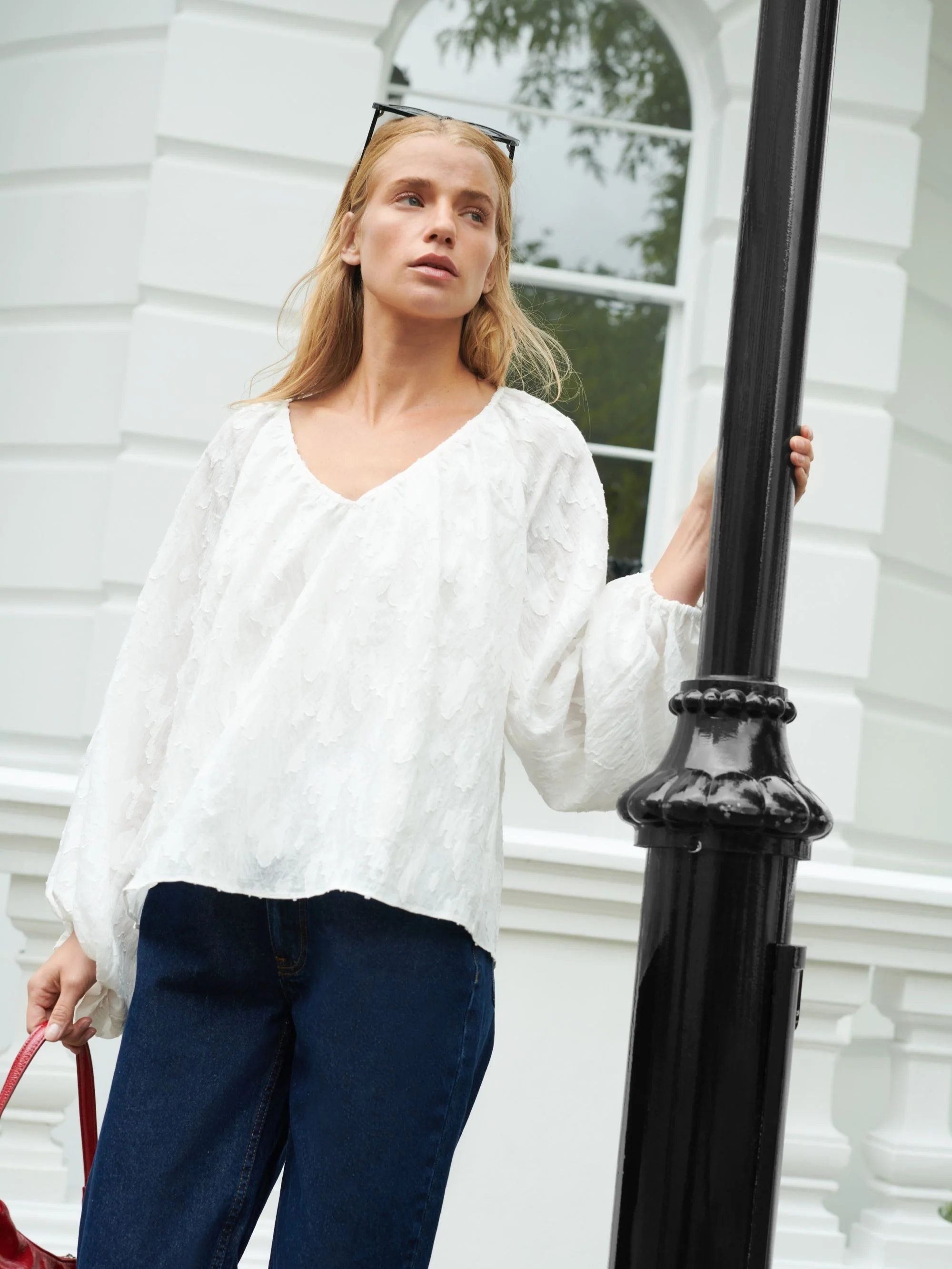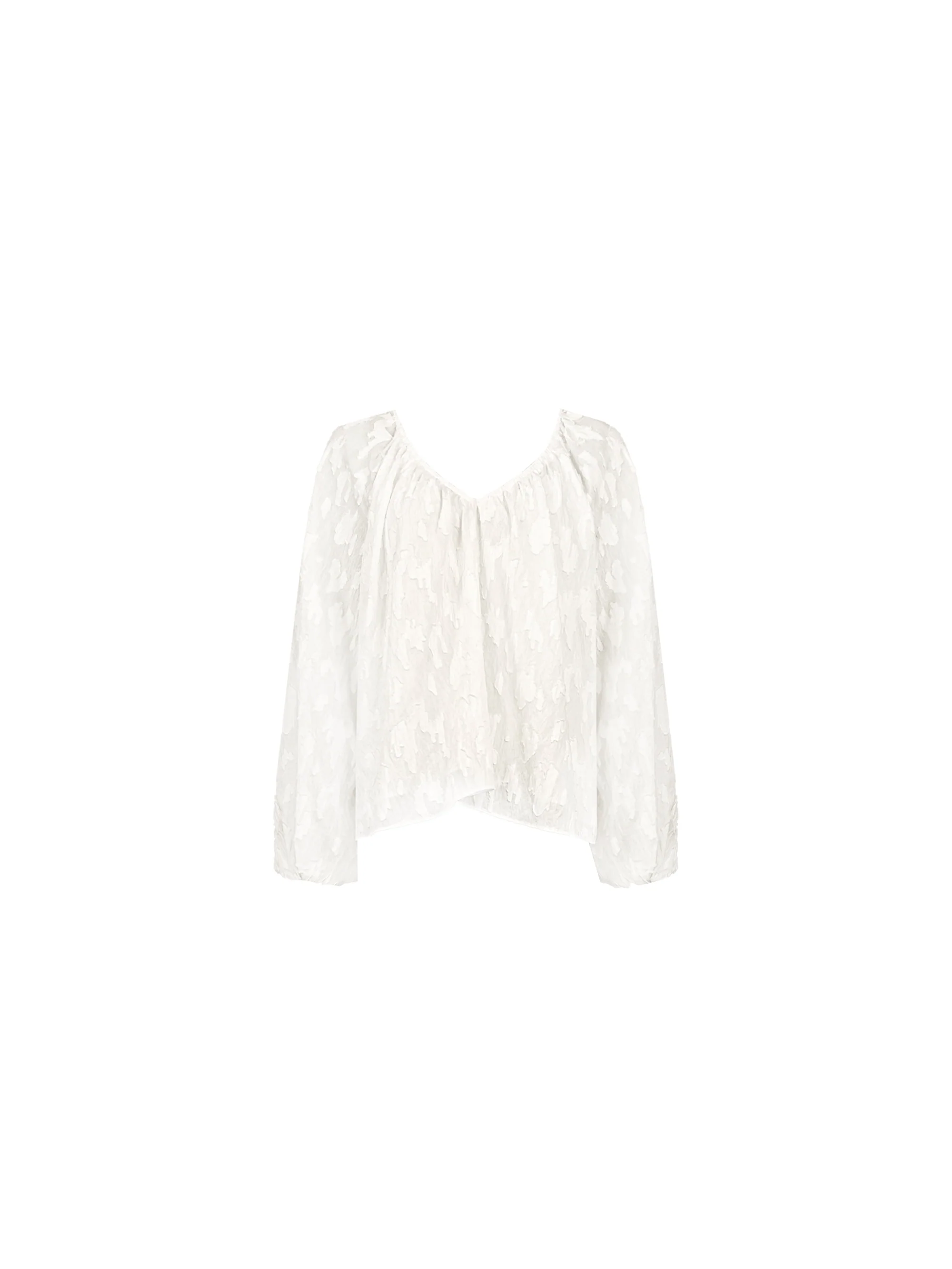 Ivory Leopard Jacquard Blouson Sleeve Blouse
