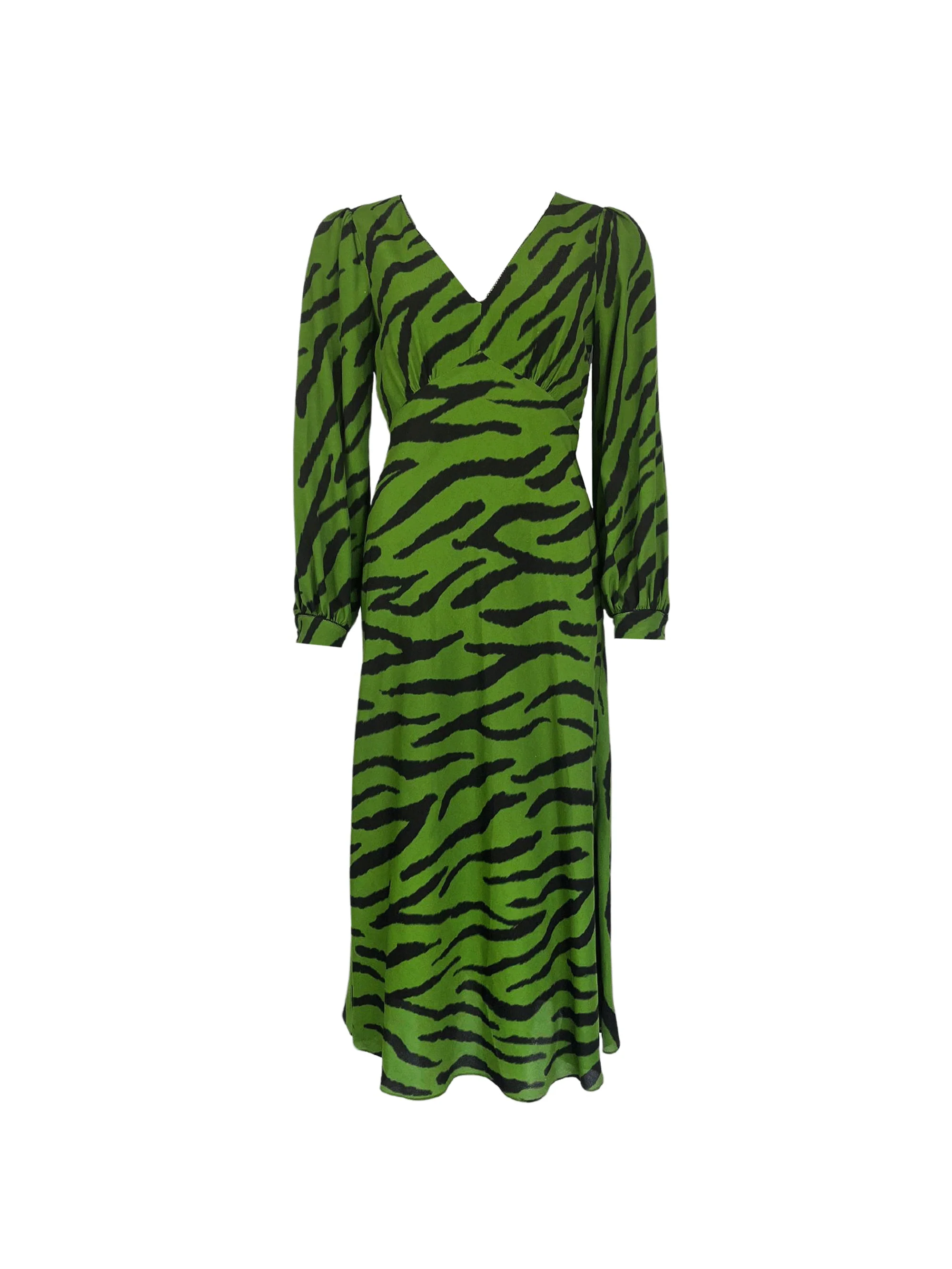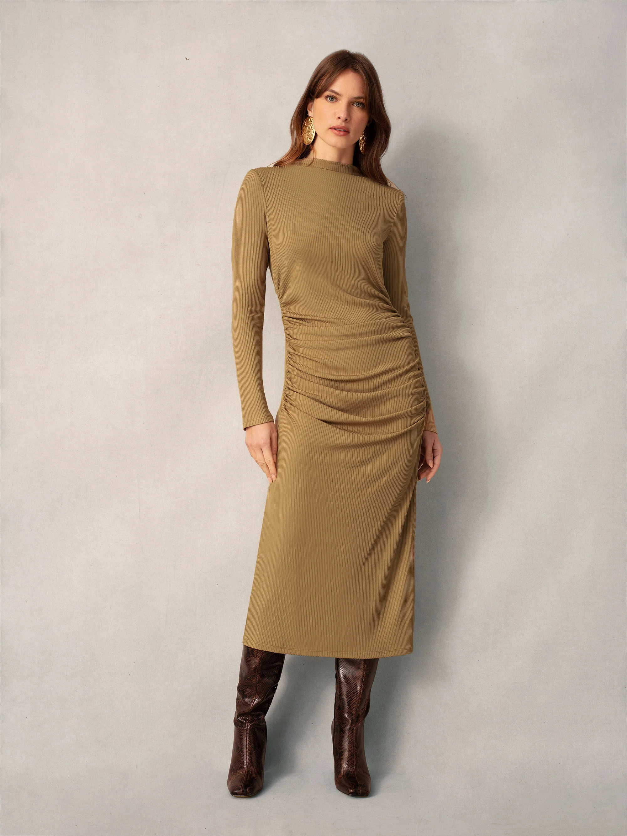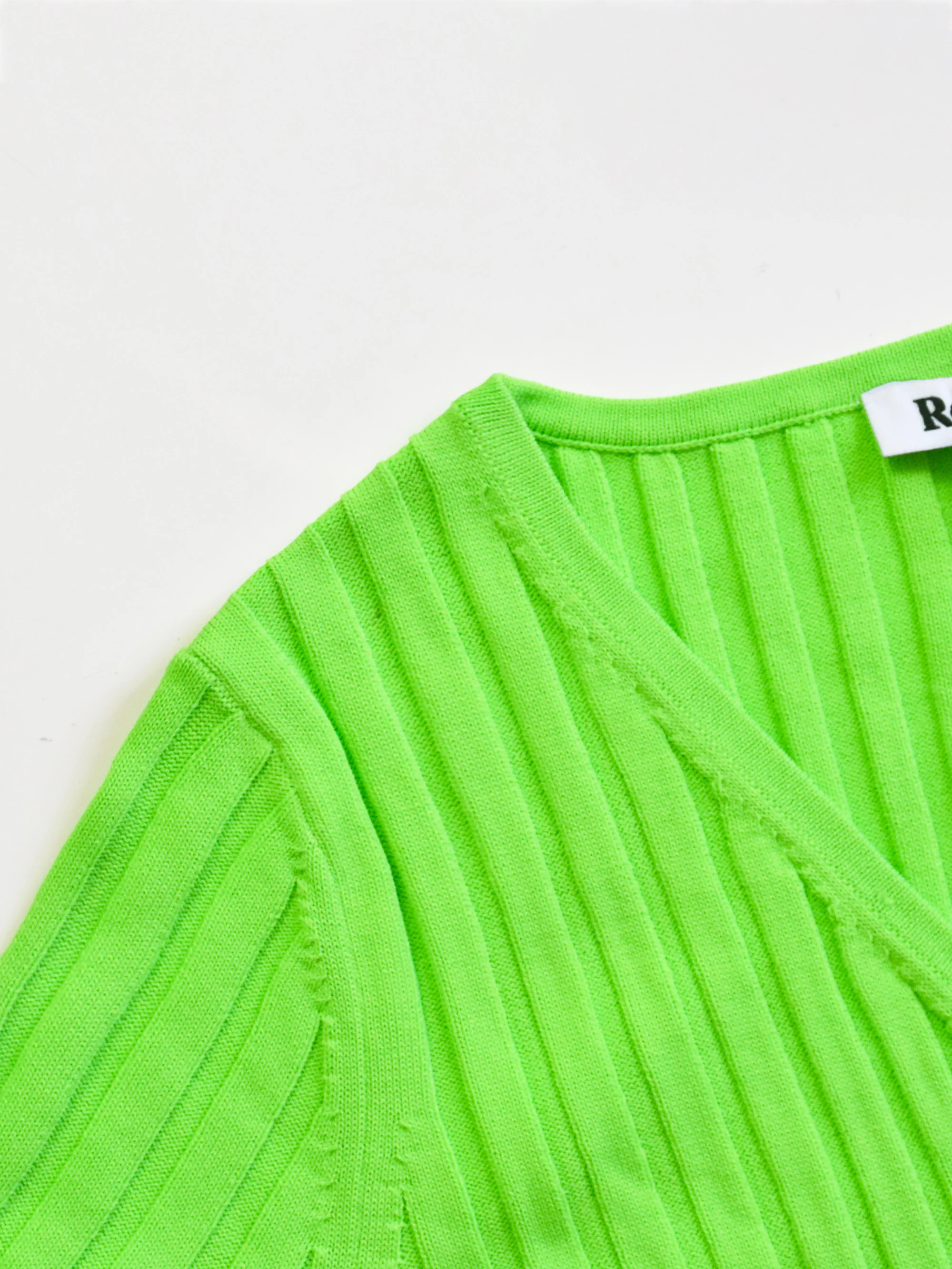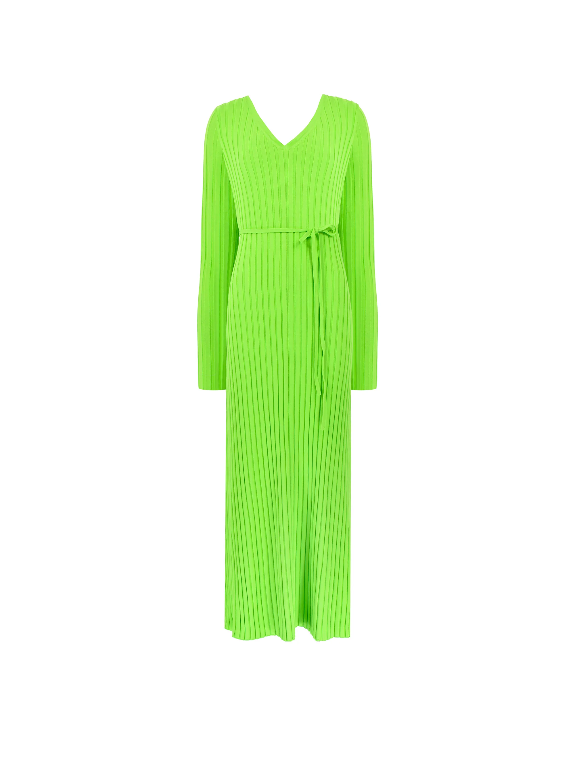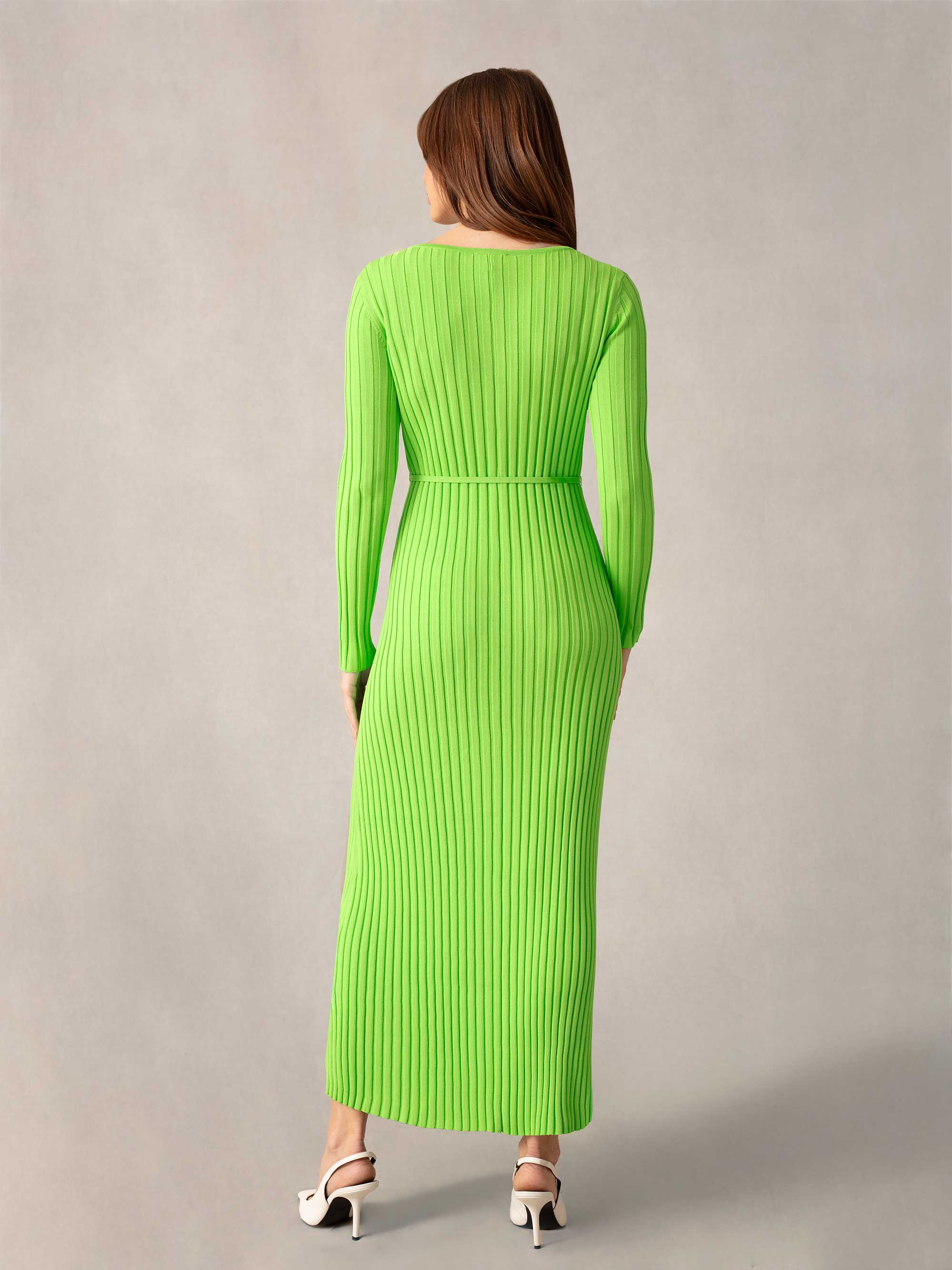 Lime Wide Rib Knit V-Neck Maxi Dress