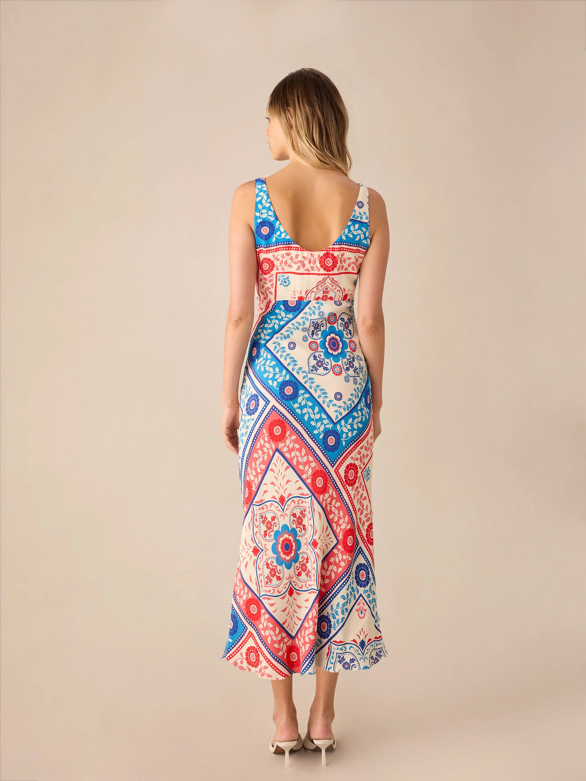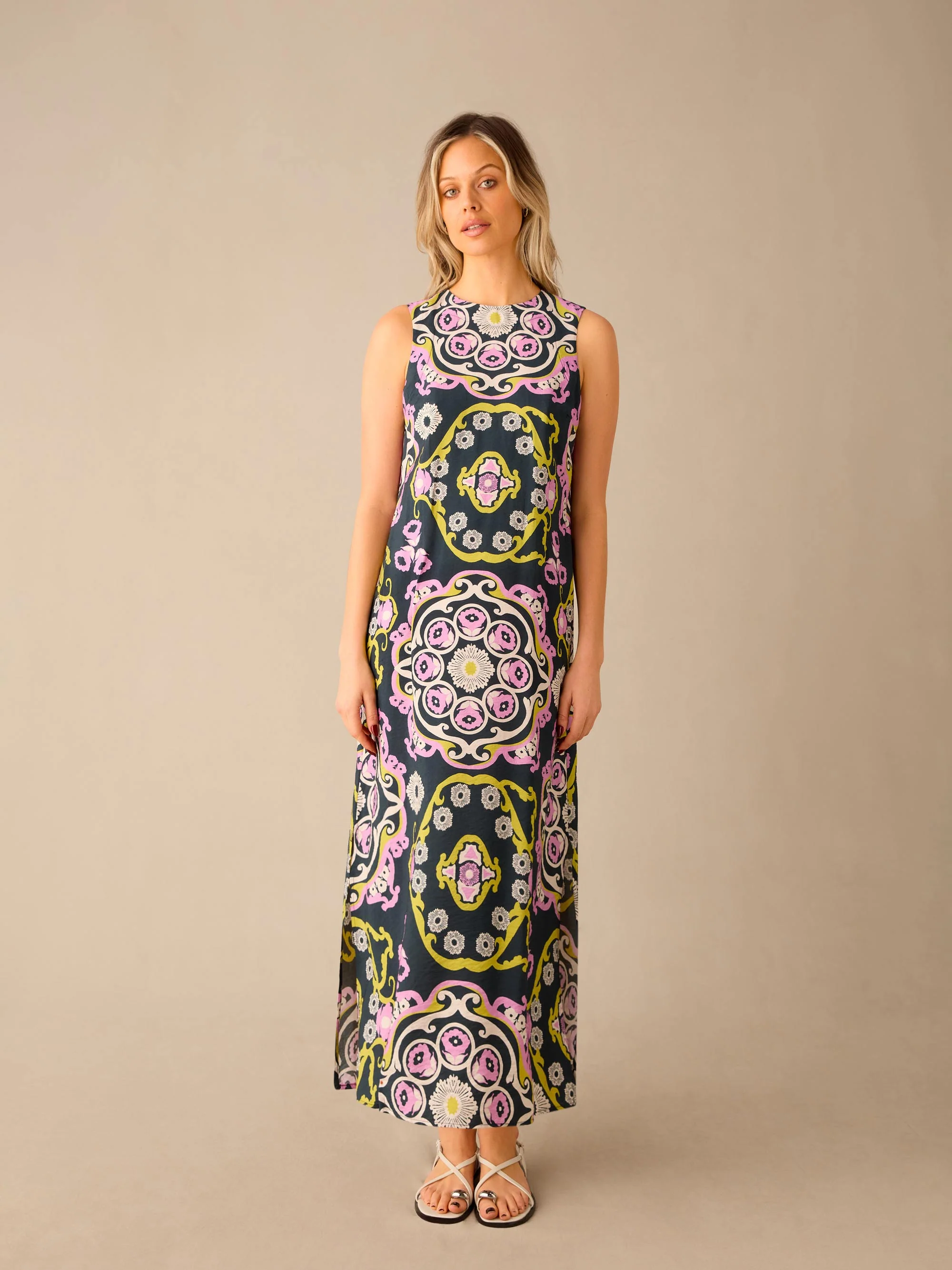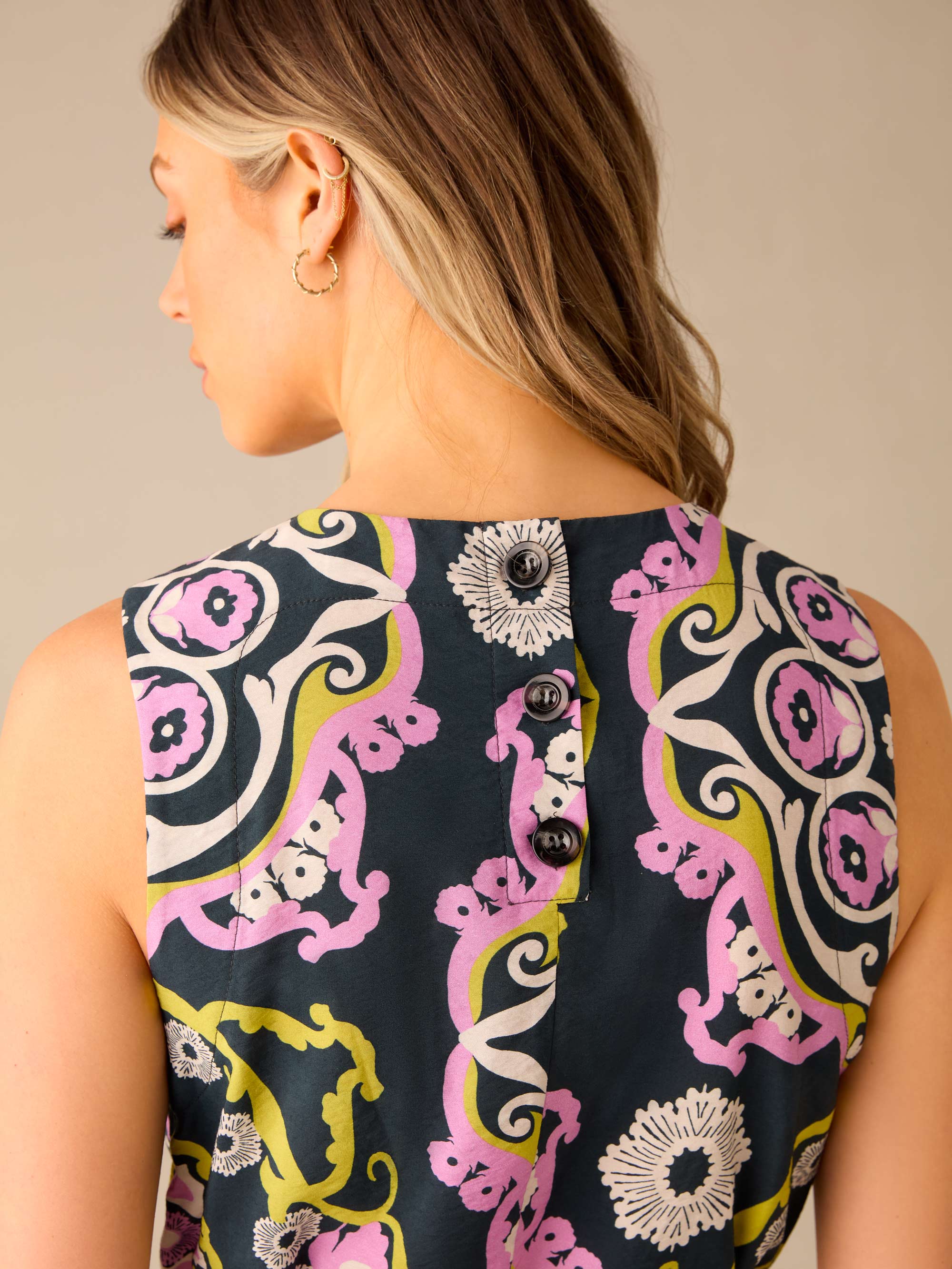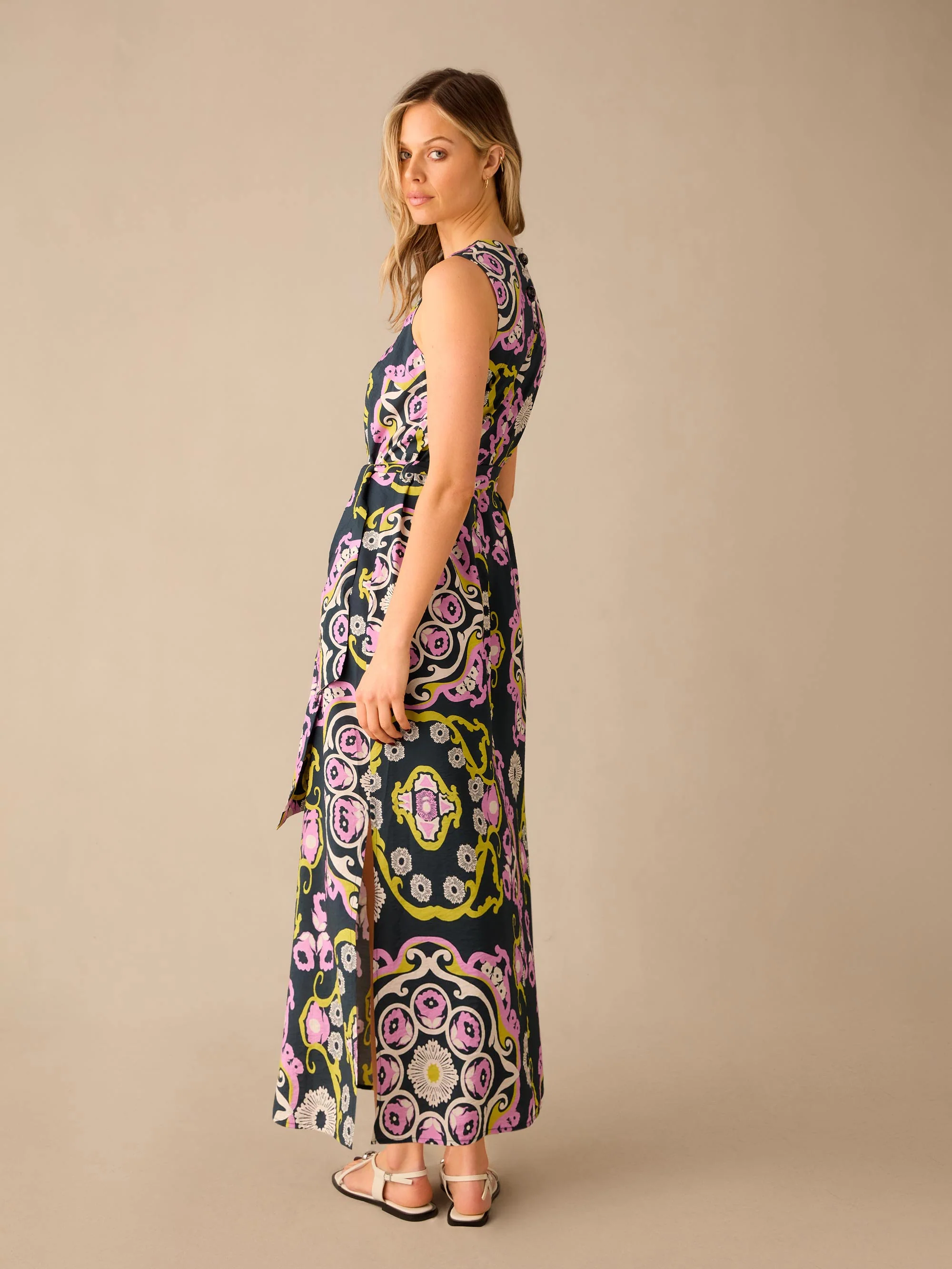 Green Botanical Floral Print Shirred Cuff Midi Dress