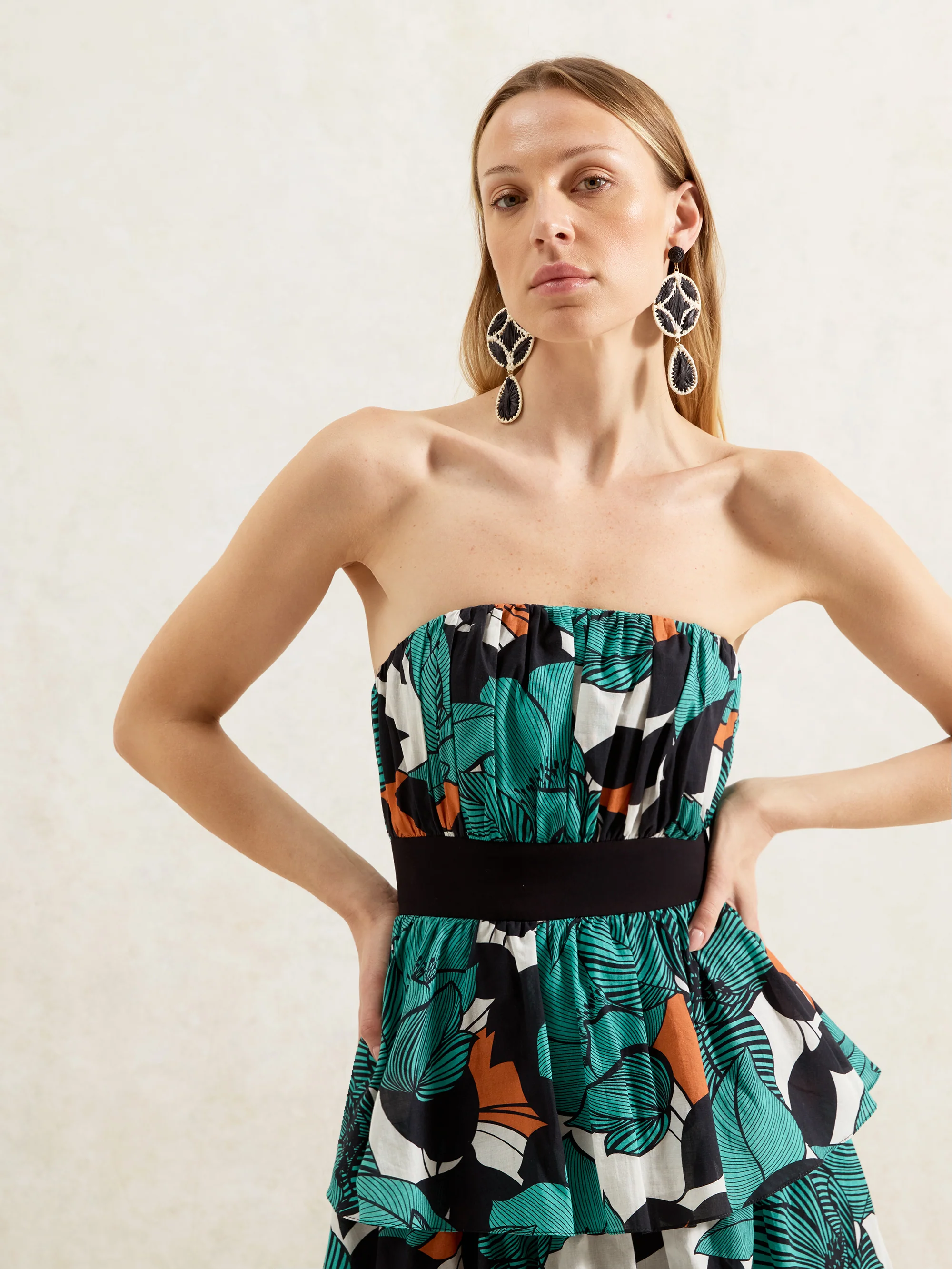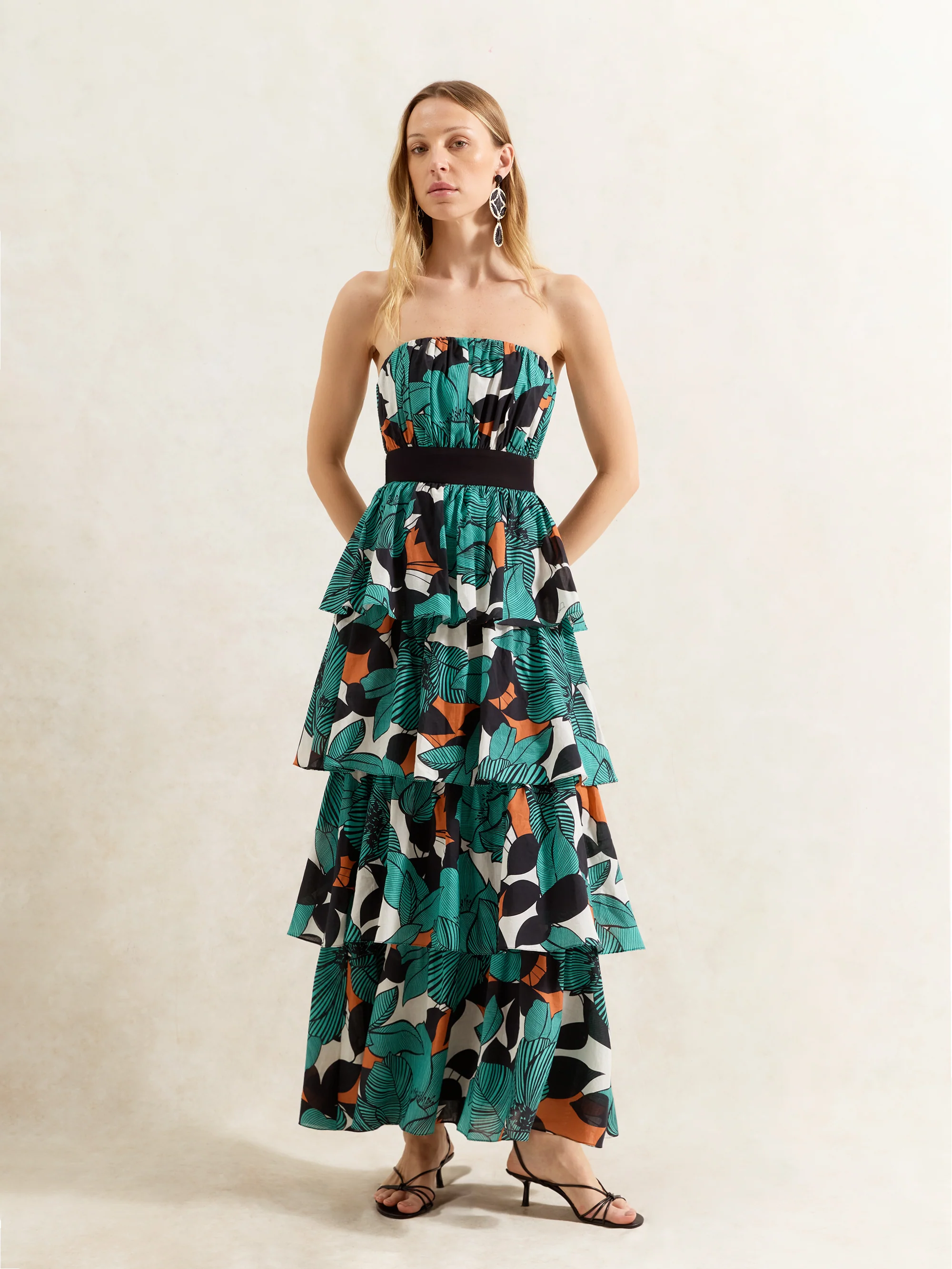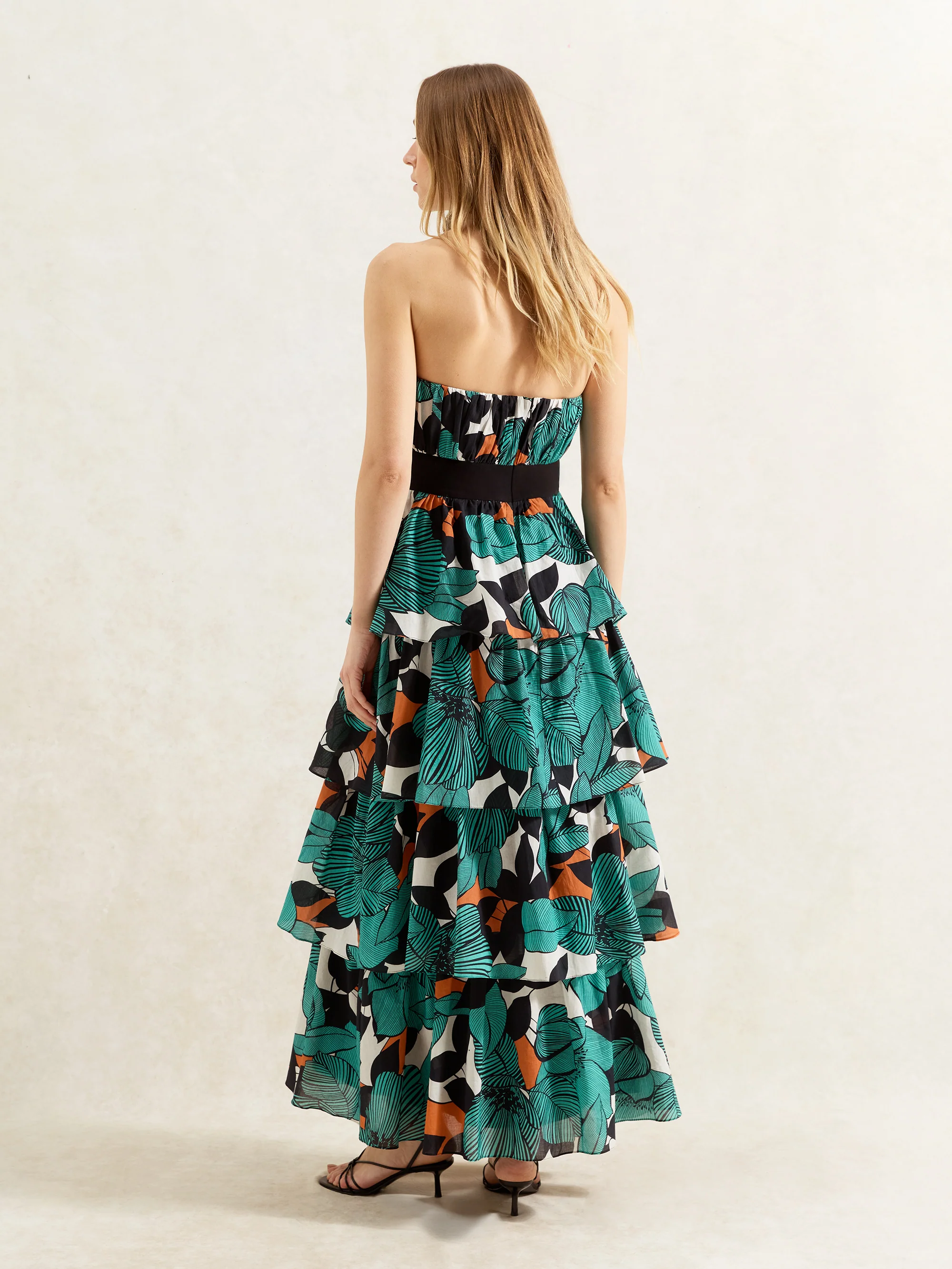Claudia Leaf Print Tiered Dress