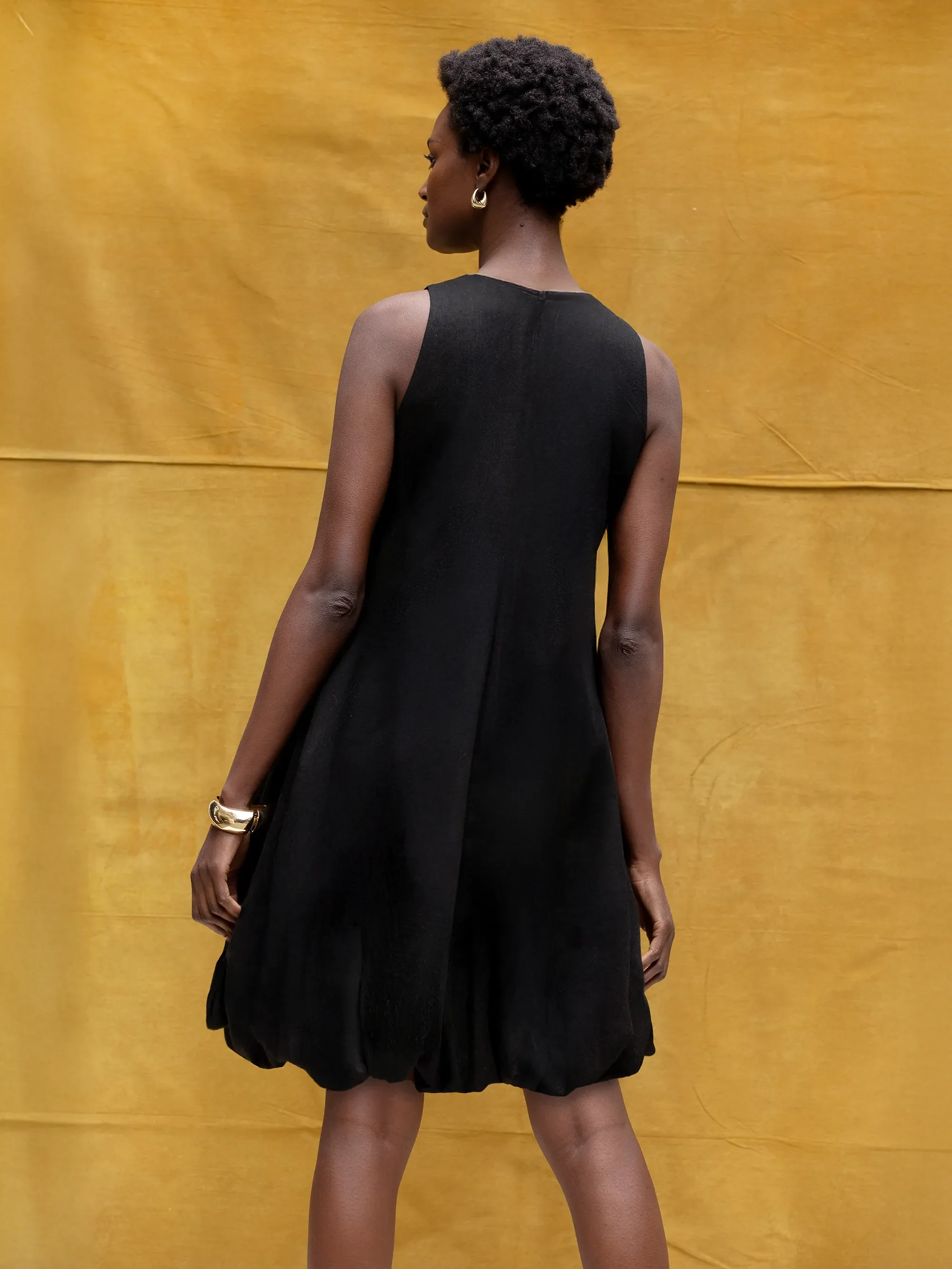 Black Puffball Linen Blend Dress