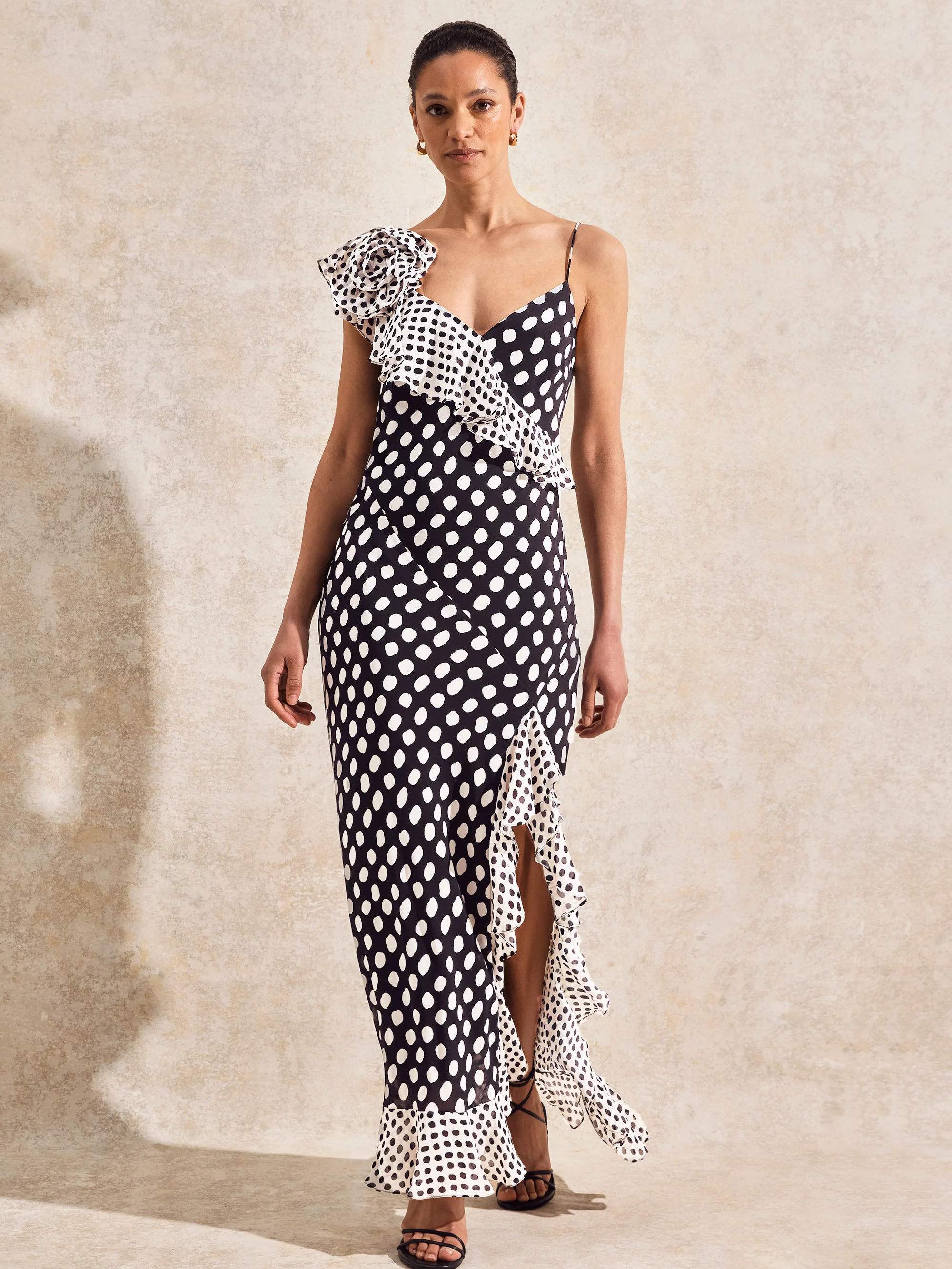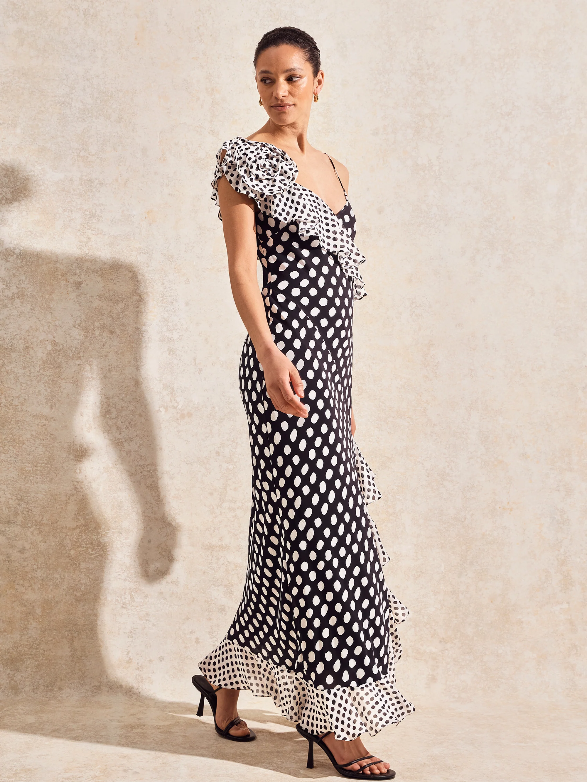 Celeste Corsage-Detail Polka-Dot Dress