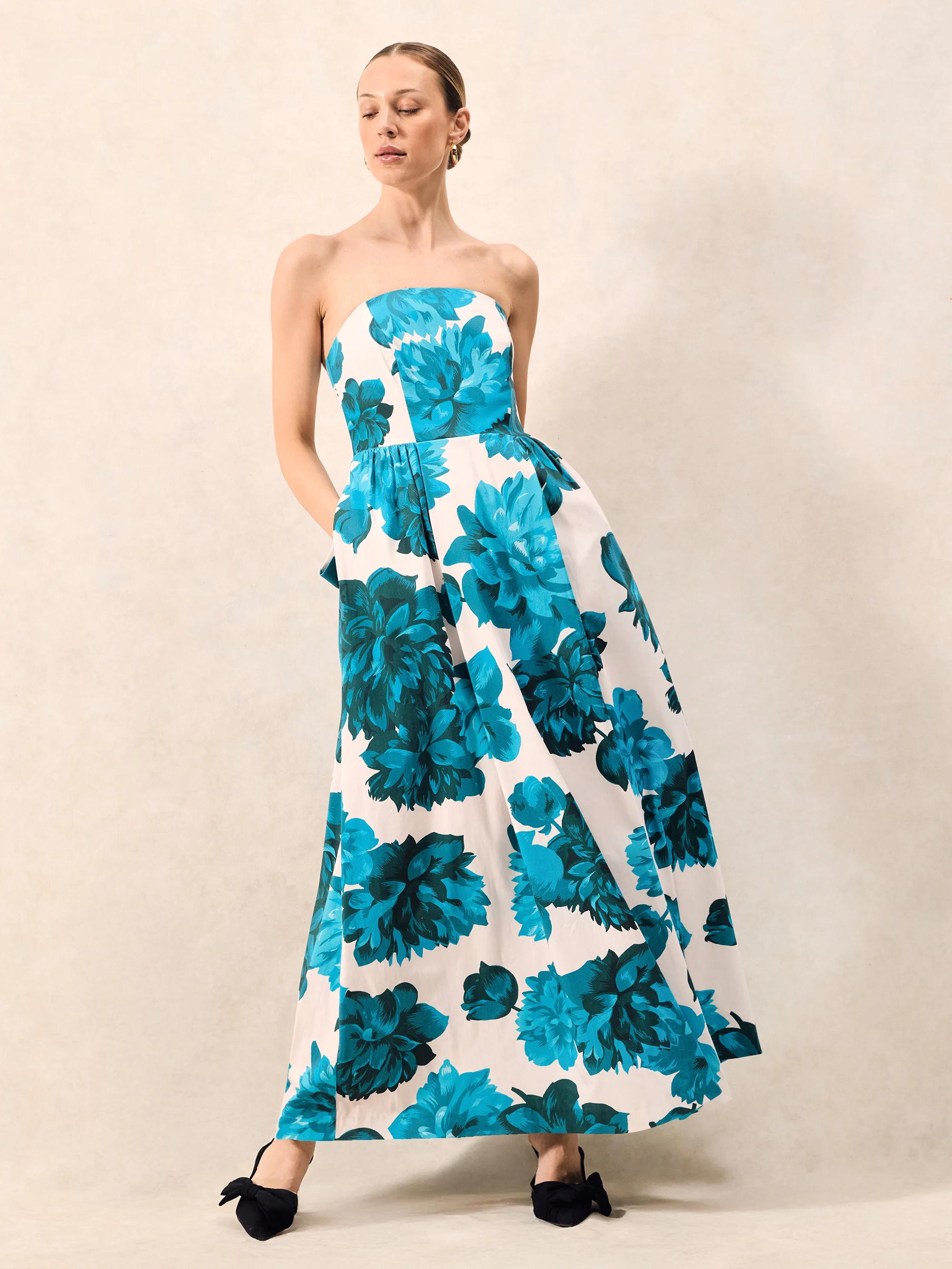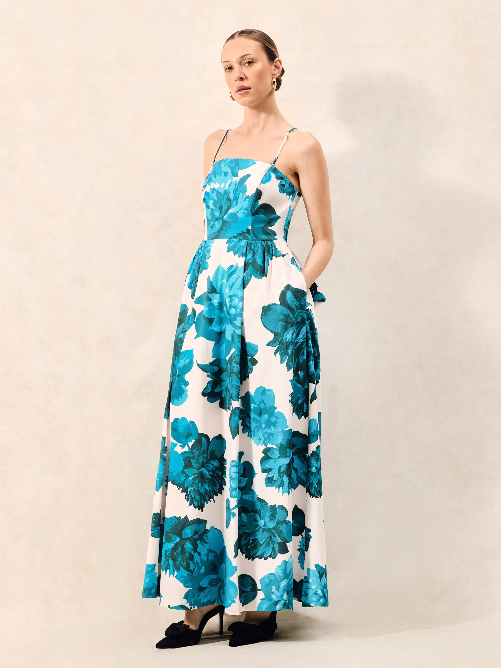 Annie Blue Floral-Print Bow-Detail Dress