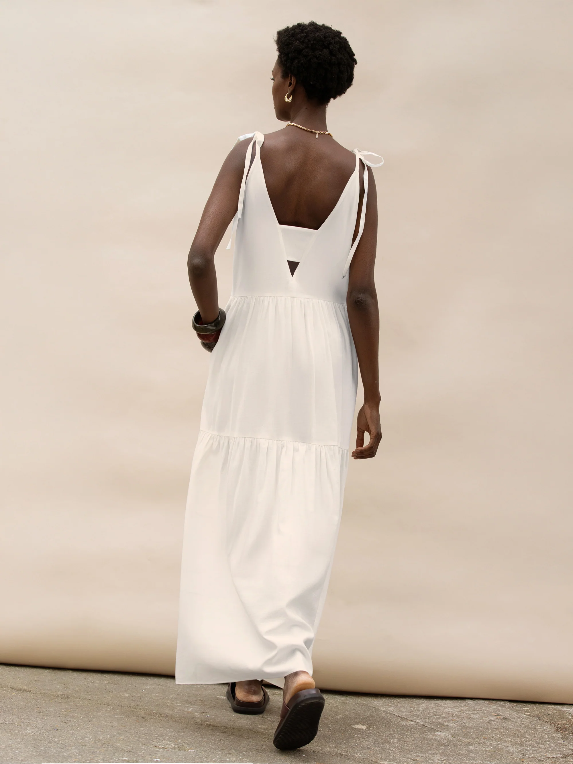Cream Linen Tie Strap Dress