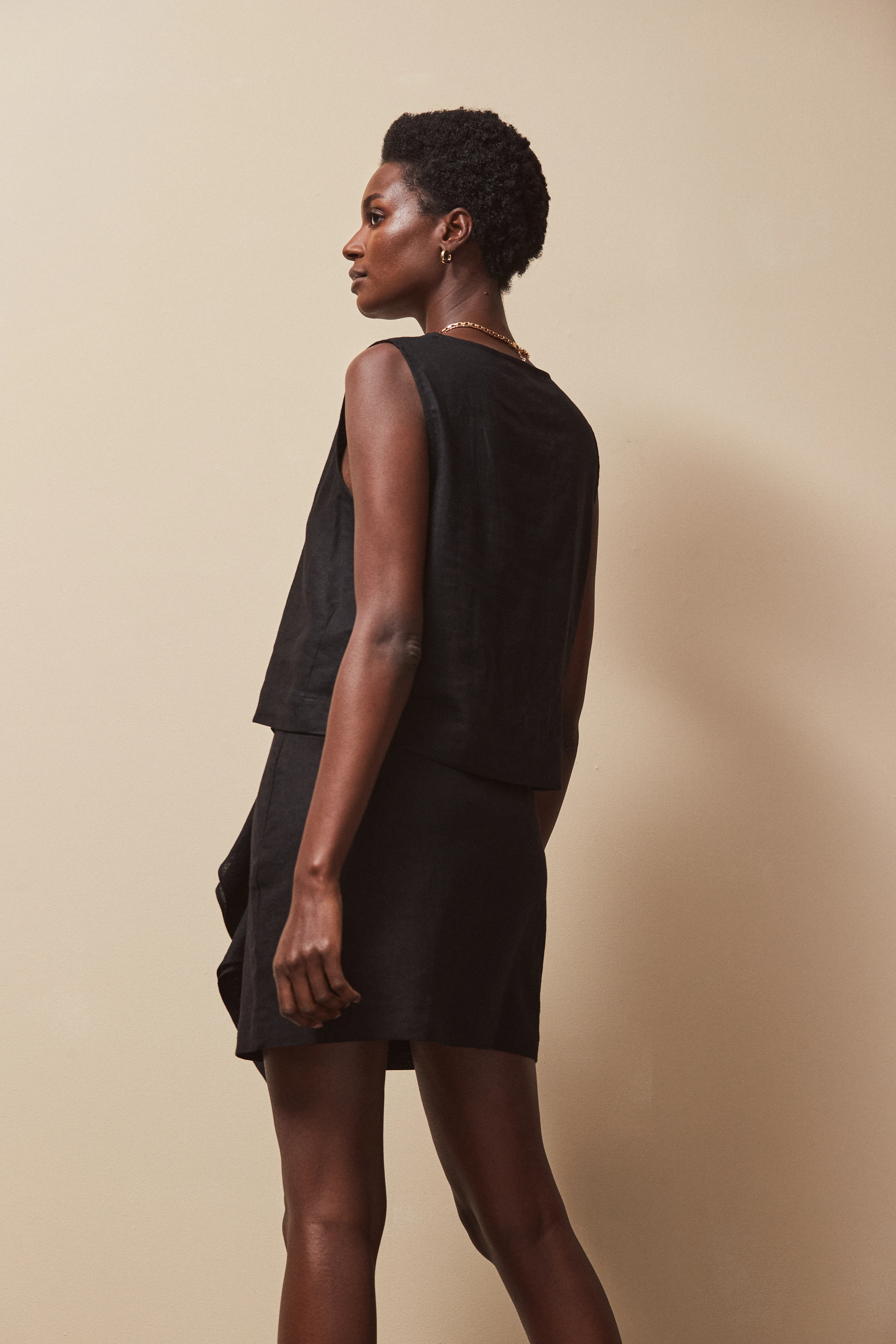 Black Frill Detail Linen Blend Skirt